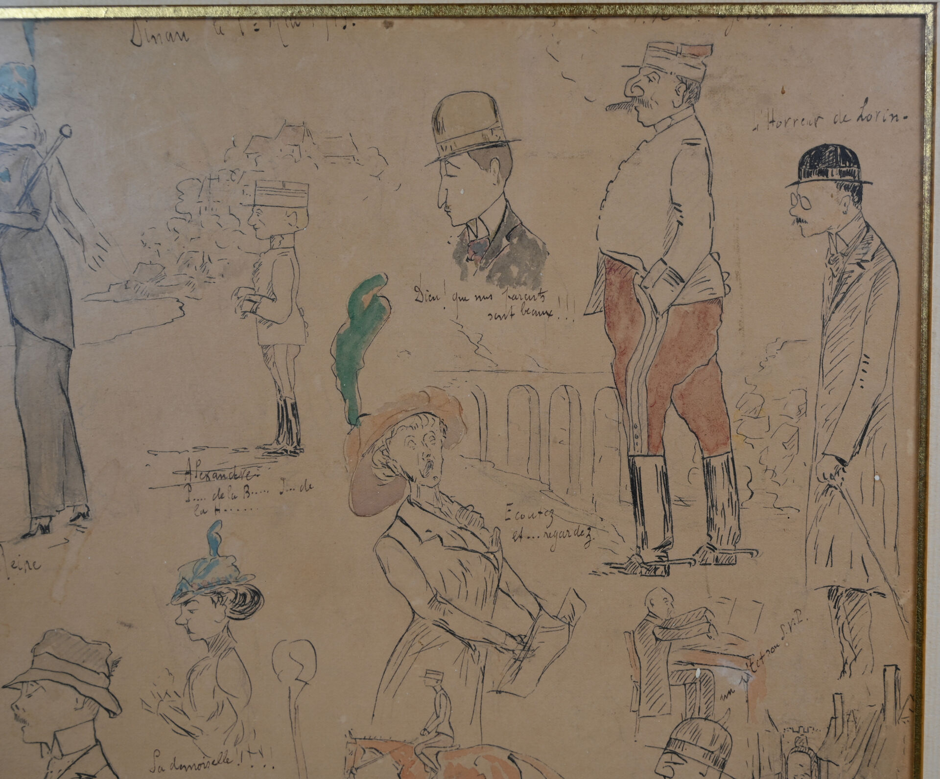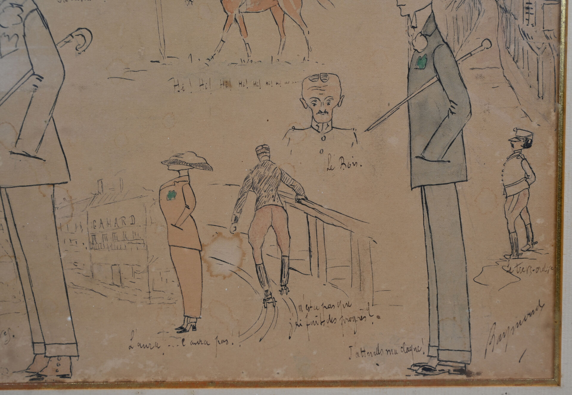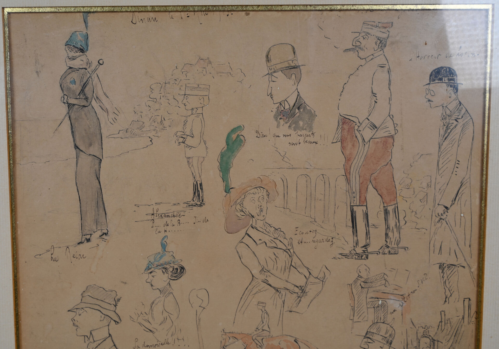 RAYMOND ? (XIXe – XXe siècle). Caricatures. Dessin à l’encre et rehauts d’aquarelle signé en bas à droite. 35 x 26,5 cm à vue.