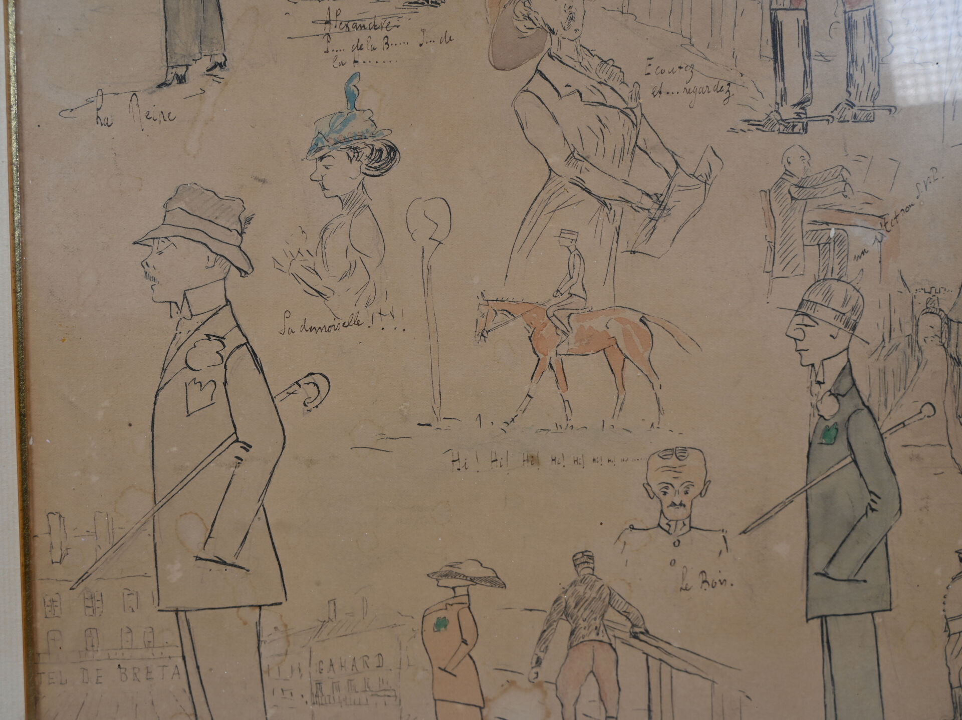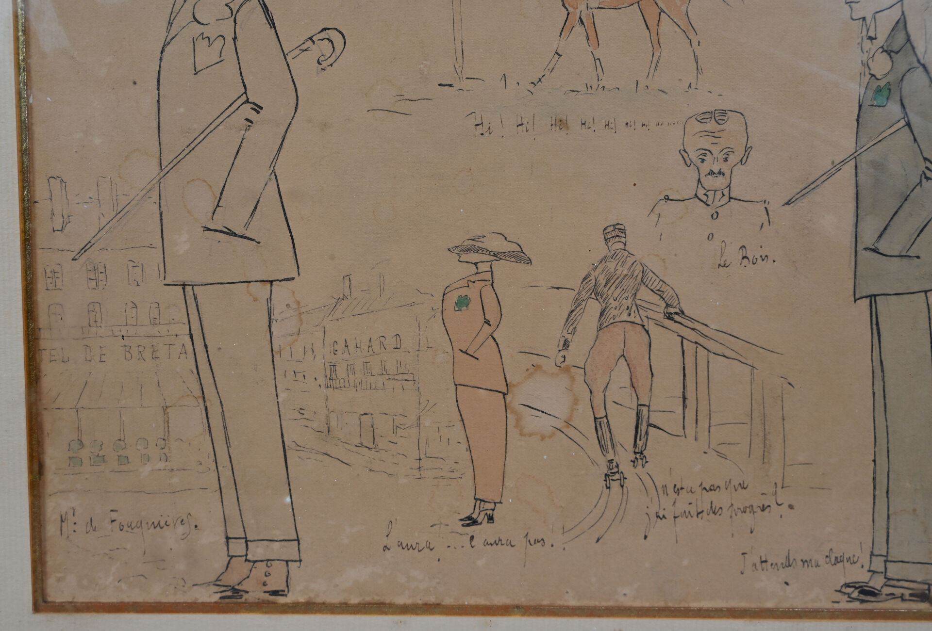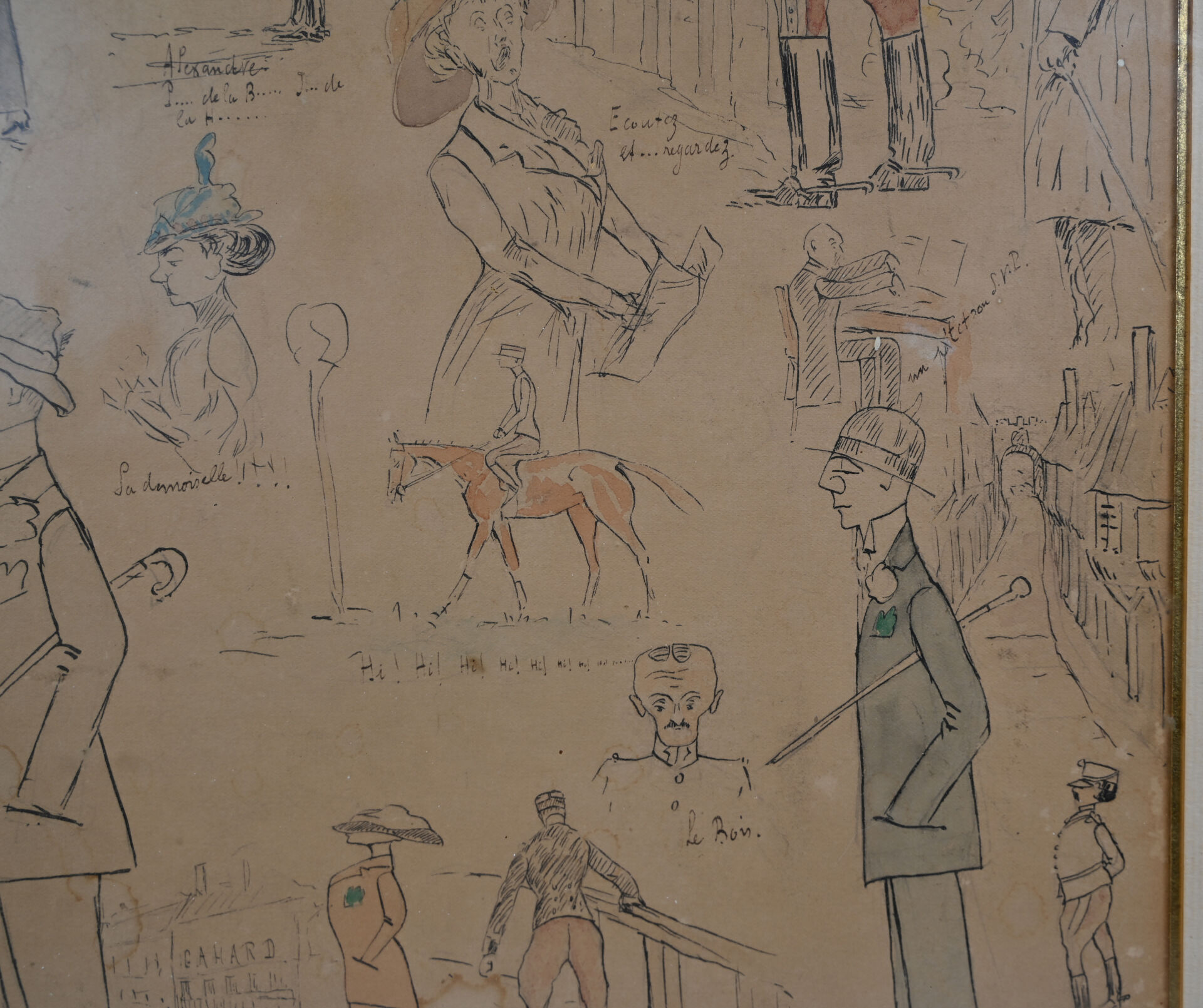 RAYMOND ? (XIXe – XXe siècle). Caricatures. Dessin à l’encre et rehauts d’aquarelle signé en bas à droite. 35 x 26,5 cm à vue.