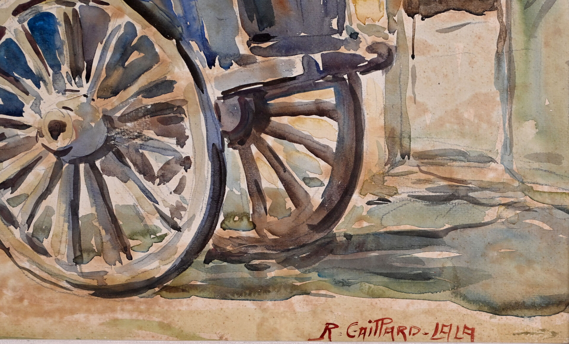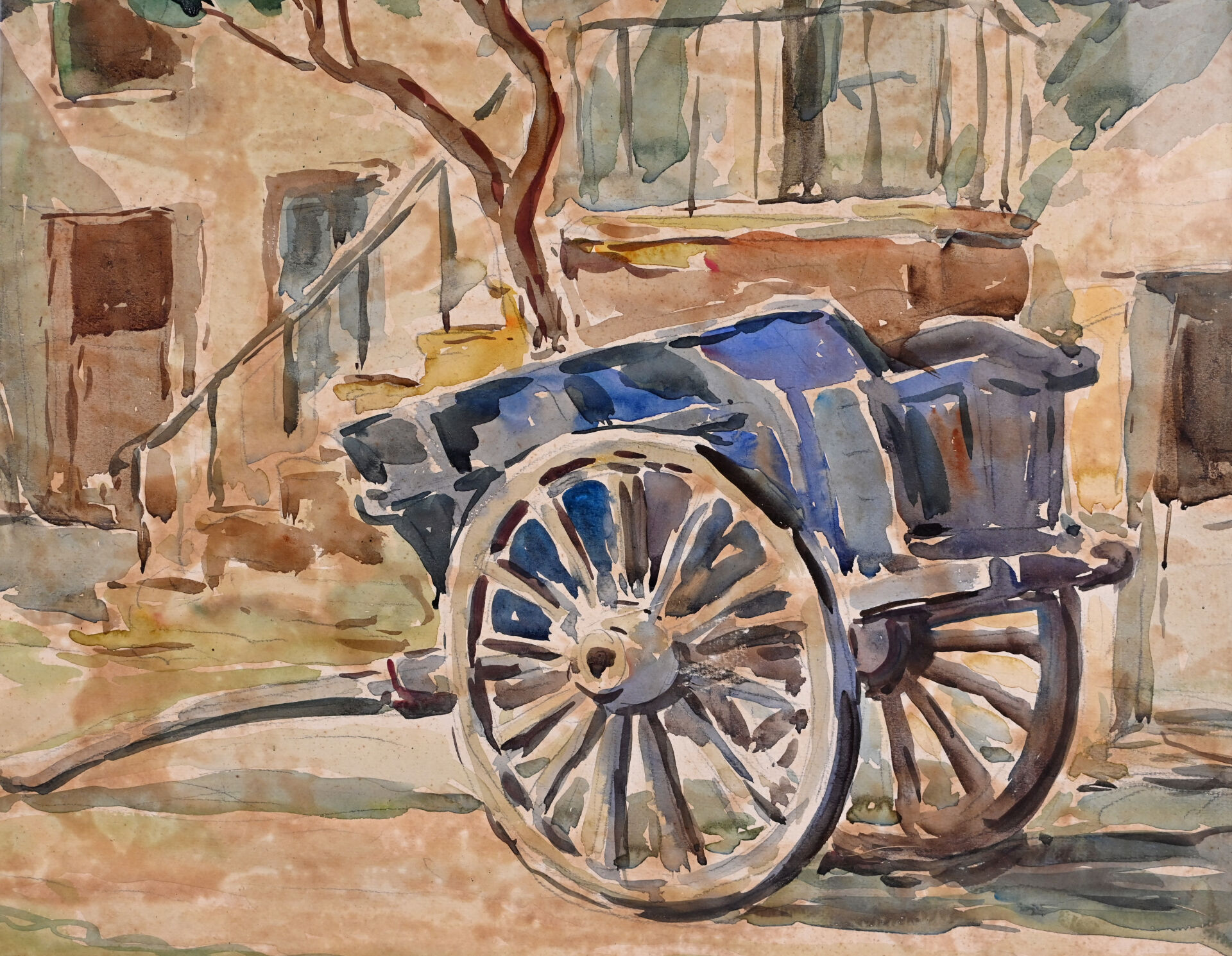 René GAILLARD-LALA (1893-1974). La charrette bleue. Aquarelle signée en bas à droite. 47 x 60 cm (à vue)