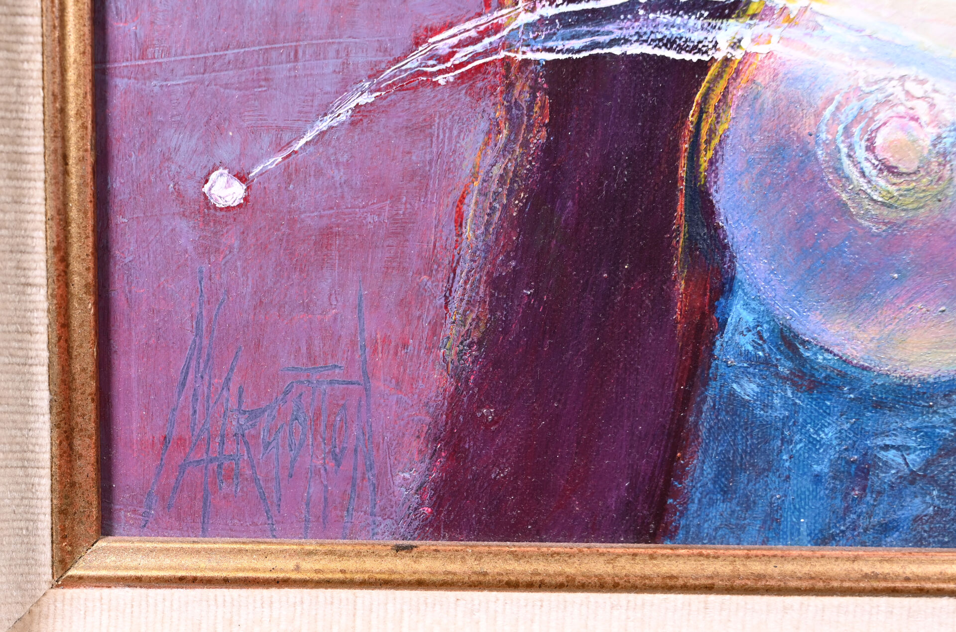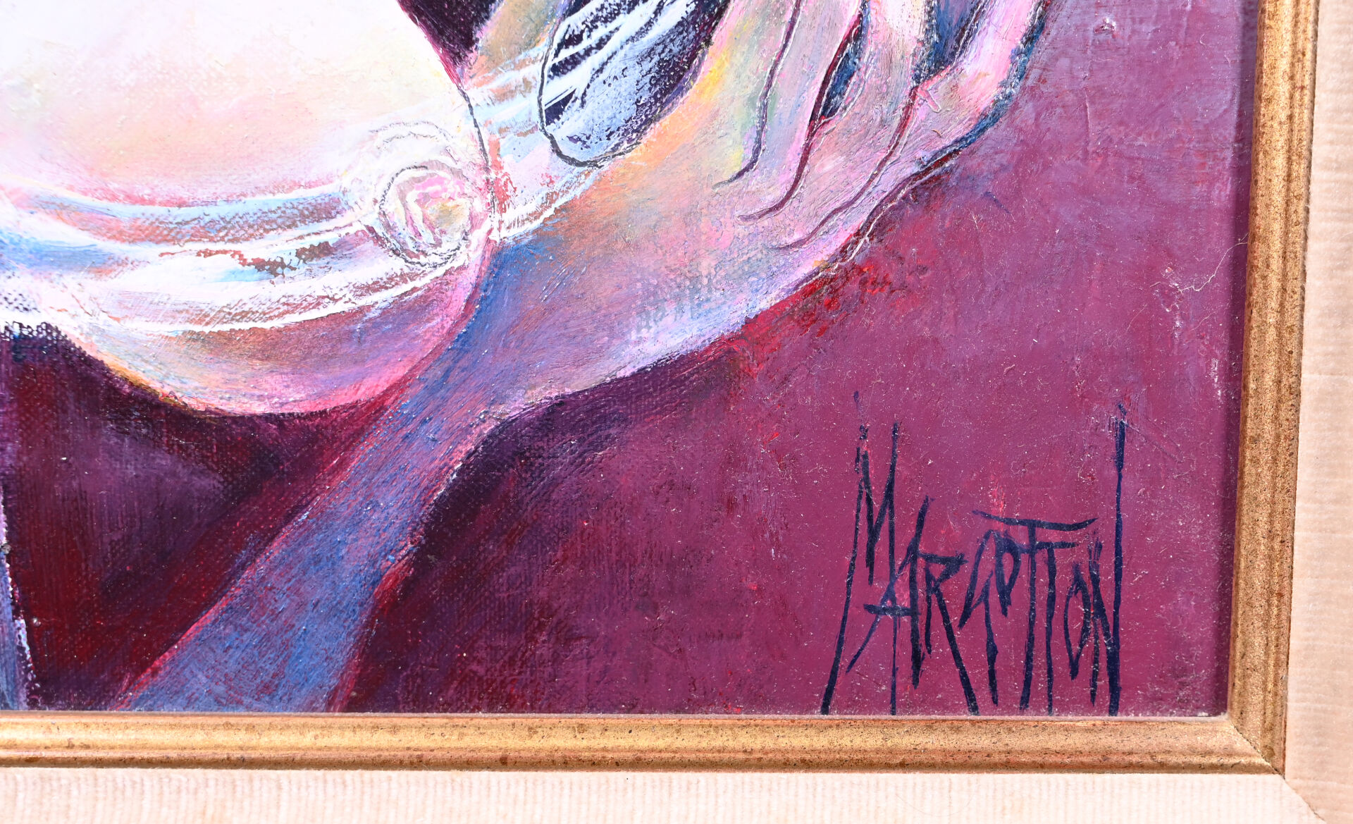 Huile sur toile signée en bas à droite et en bas à gauche (un petit éclat restauré).