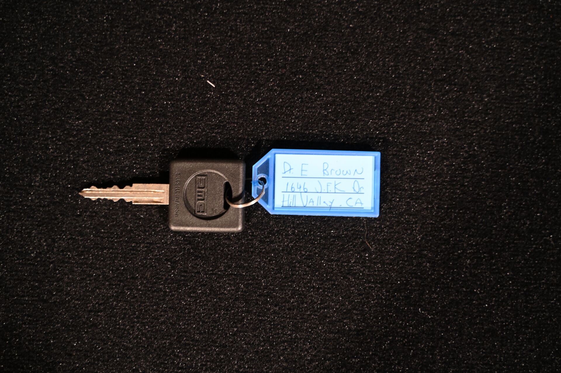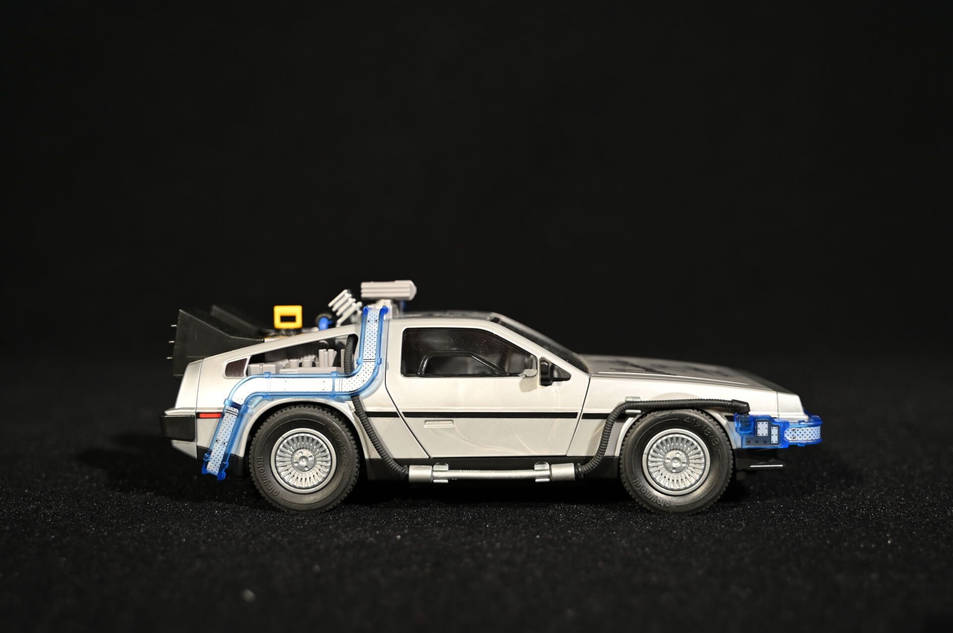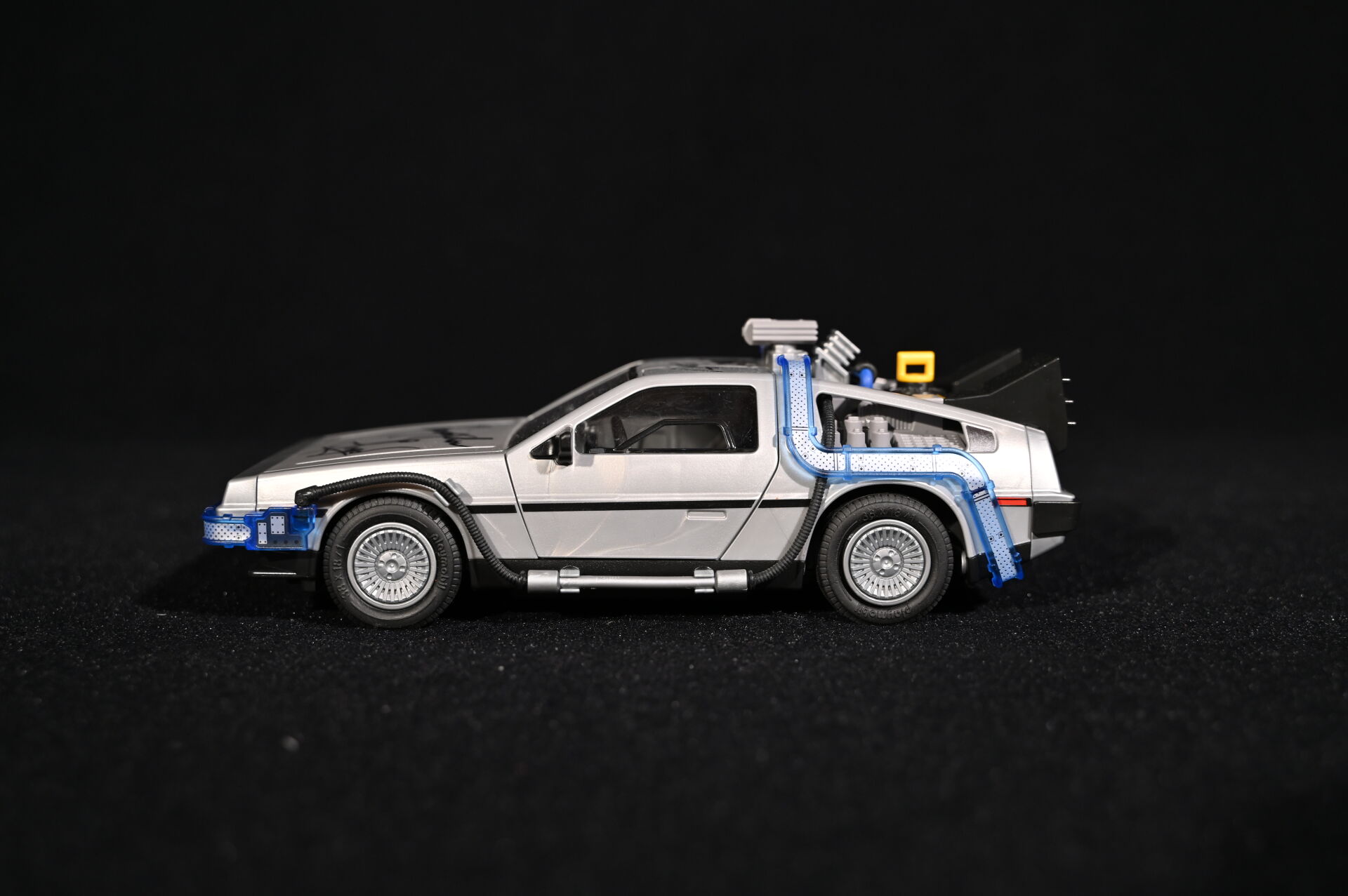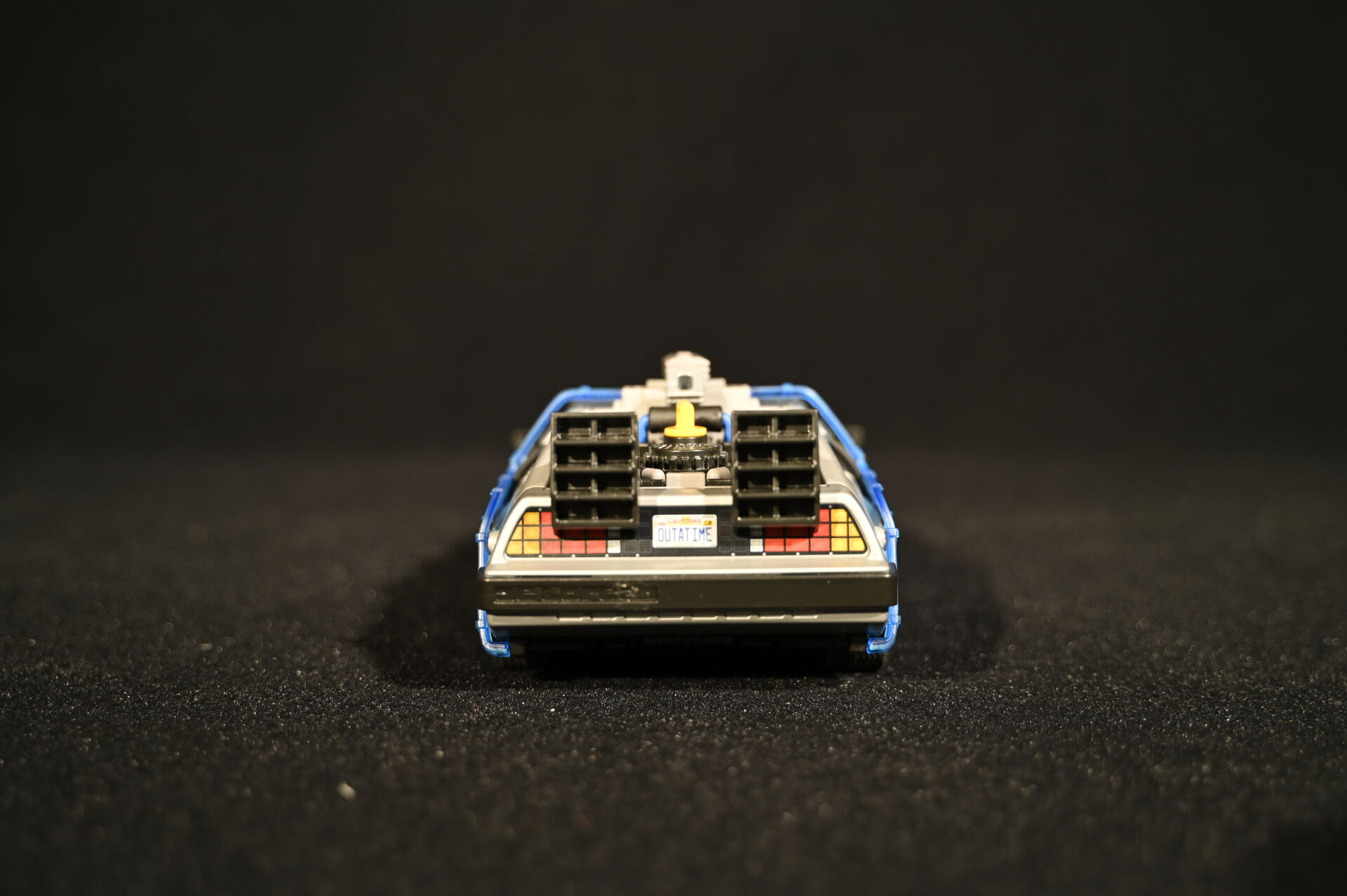 RETOUR VERS LE FUTUR – BACK TO THE FUTURE – PLAYMOBIL. Voiture modèle Delorean signée par l’acteur Christopher Lloyd et dédicacée « Great Scott ! ». Électrifiée. Référence 70317. 2020. Dim. de la vitrine en plexiglas : 15 x 35,5 x 16,5 cm. Dim. de la voiture Haut. : 8,5 cm – Long. : 25 cm – Prof. : 11,5 cm. On joint sa boîte, des accessoires Playmobil, et une réplique des clefs de la Delorean. Aucune garantie de complétude du set (ouvert).