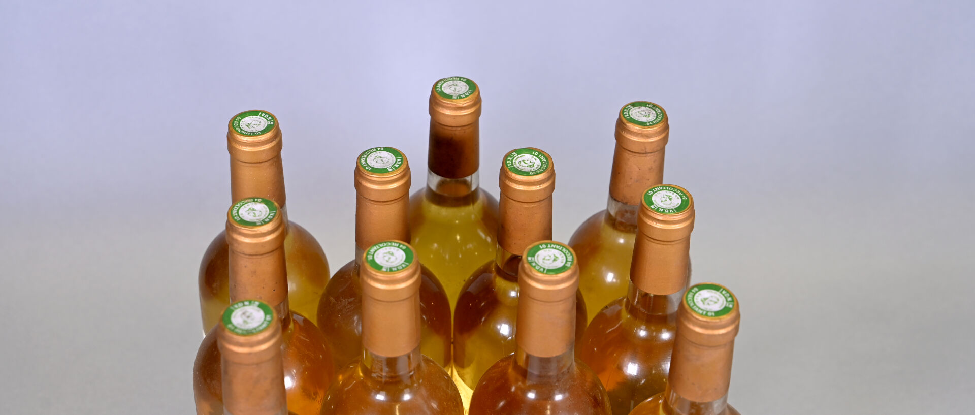 RHÔNE – 11 bouteilles, Muscat de Beaumes-de-Venise, Domaine de Durban, 2004. Capsules et étiquettes légèrement sales à sales.