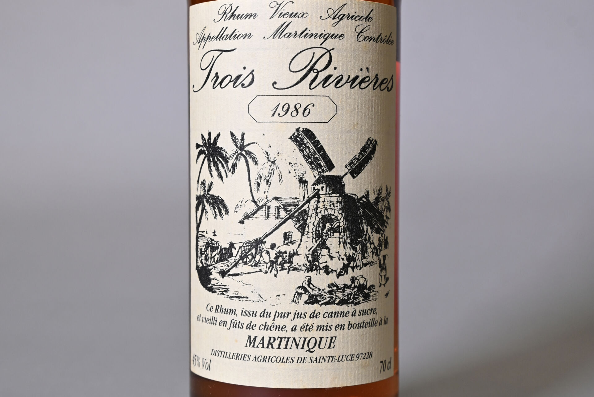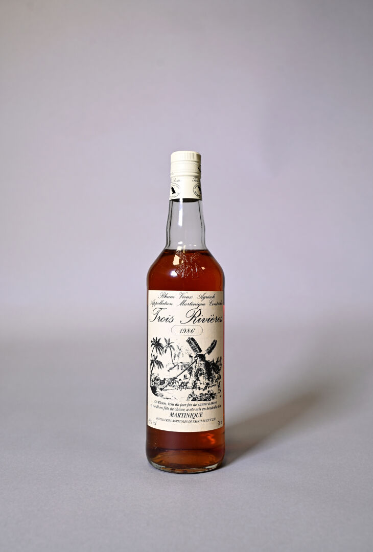 RHUM – 1 bouteille, Rhum Vieux Agricole Martinique, Trois Rivières, 1986. En étui d’origine. Niveau légèrement bas. Étiquette et contre-étiquette avec quelques très légères traces.