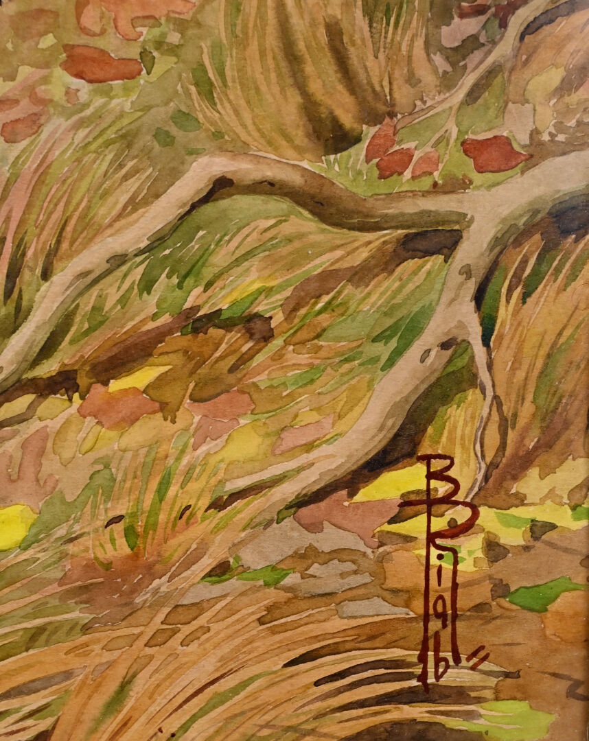 Dessin à l’aquarelle signé en bas à droite.