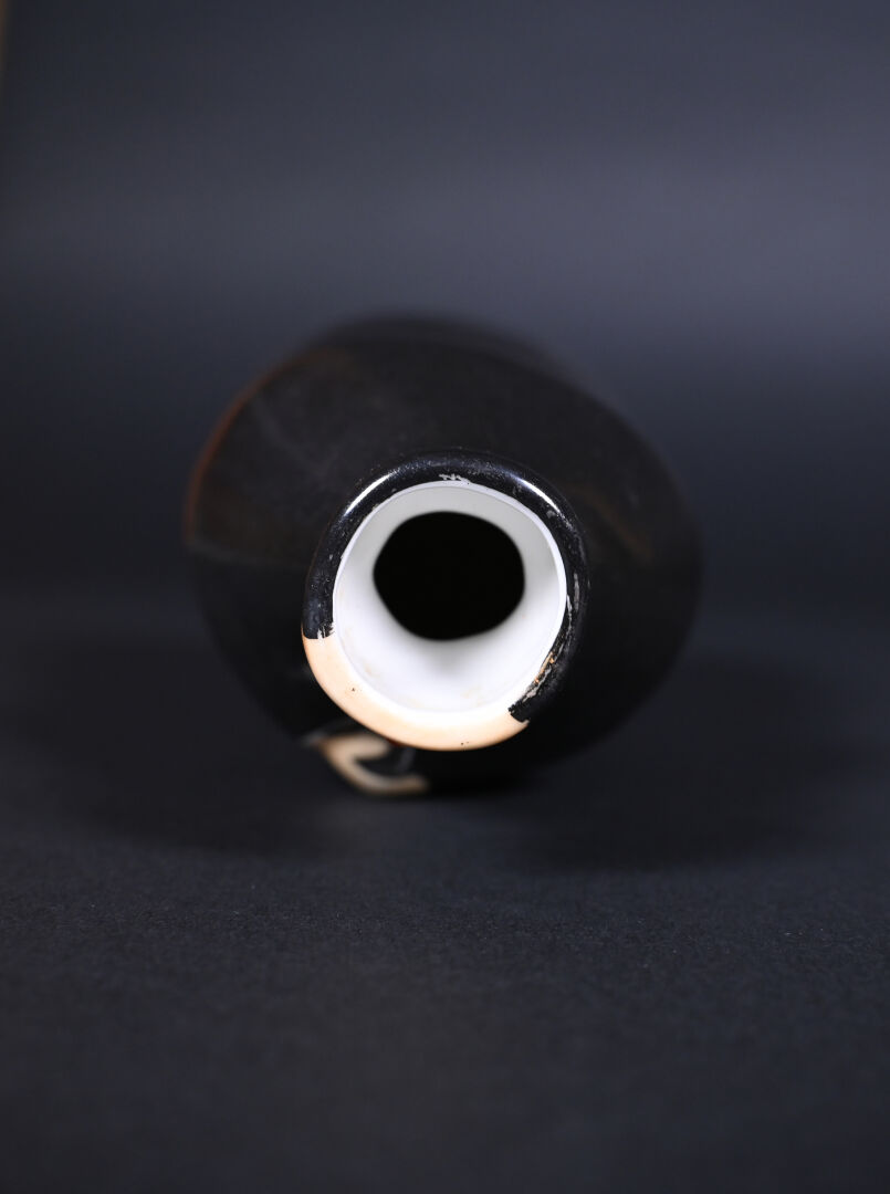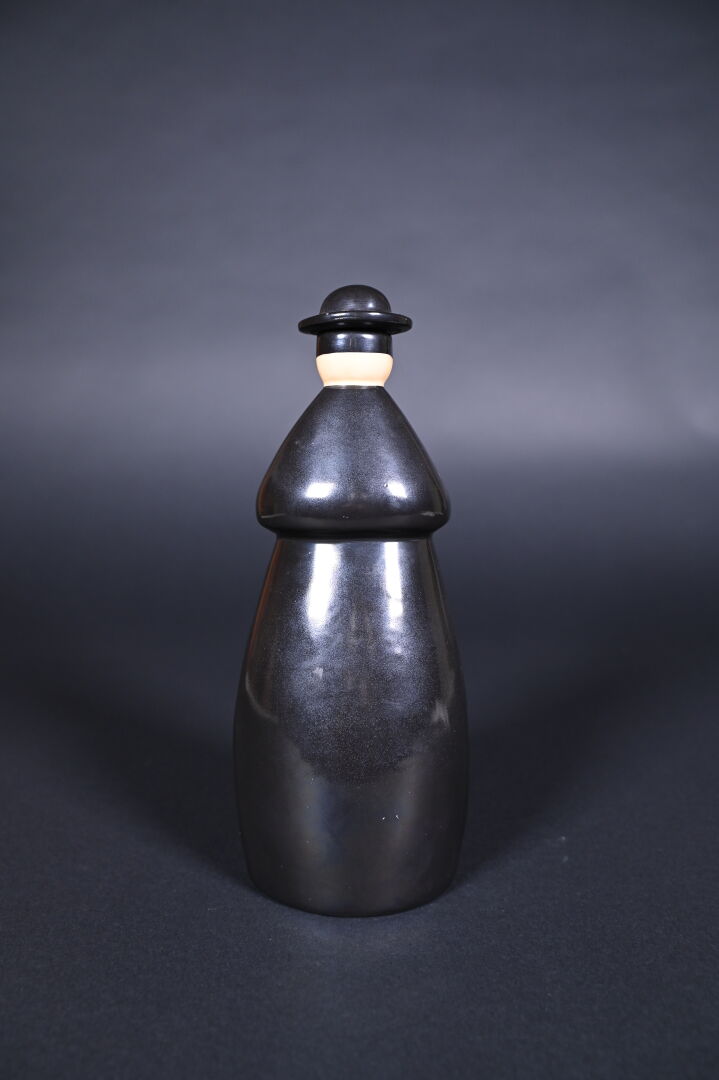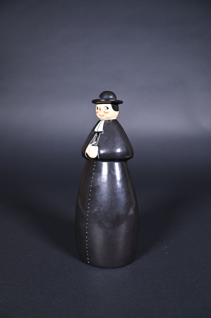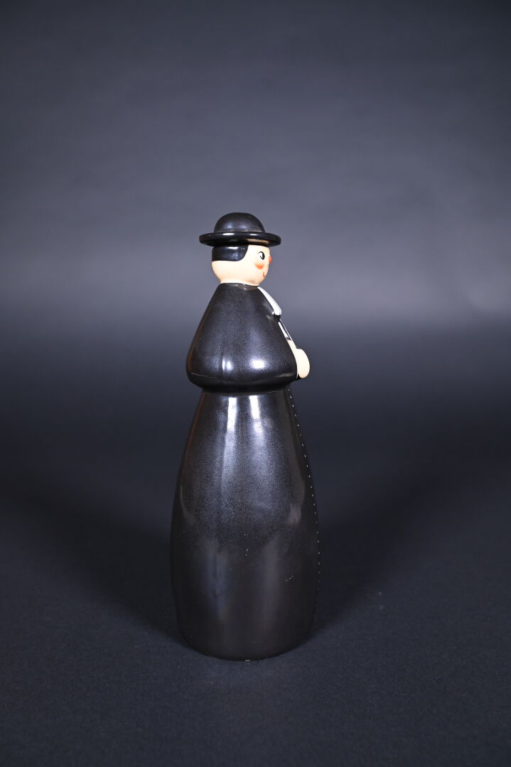ROBJ. Bouteille à liqueur en porcelaine représentant un prêtre. Marquée au dessous. Haut. : 26,5 cm.