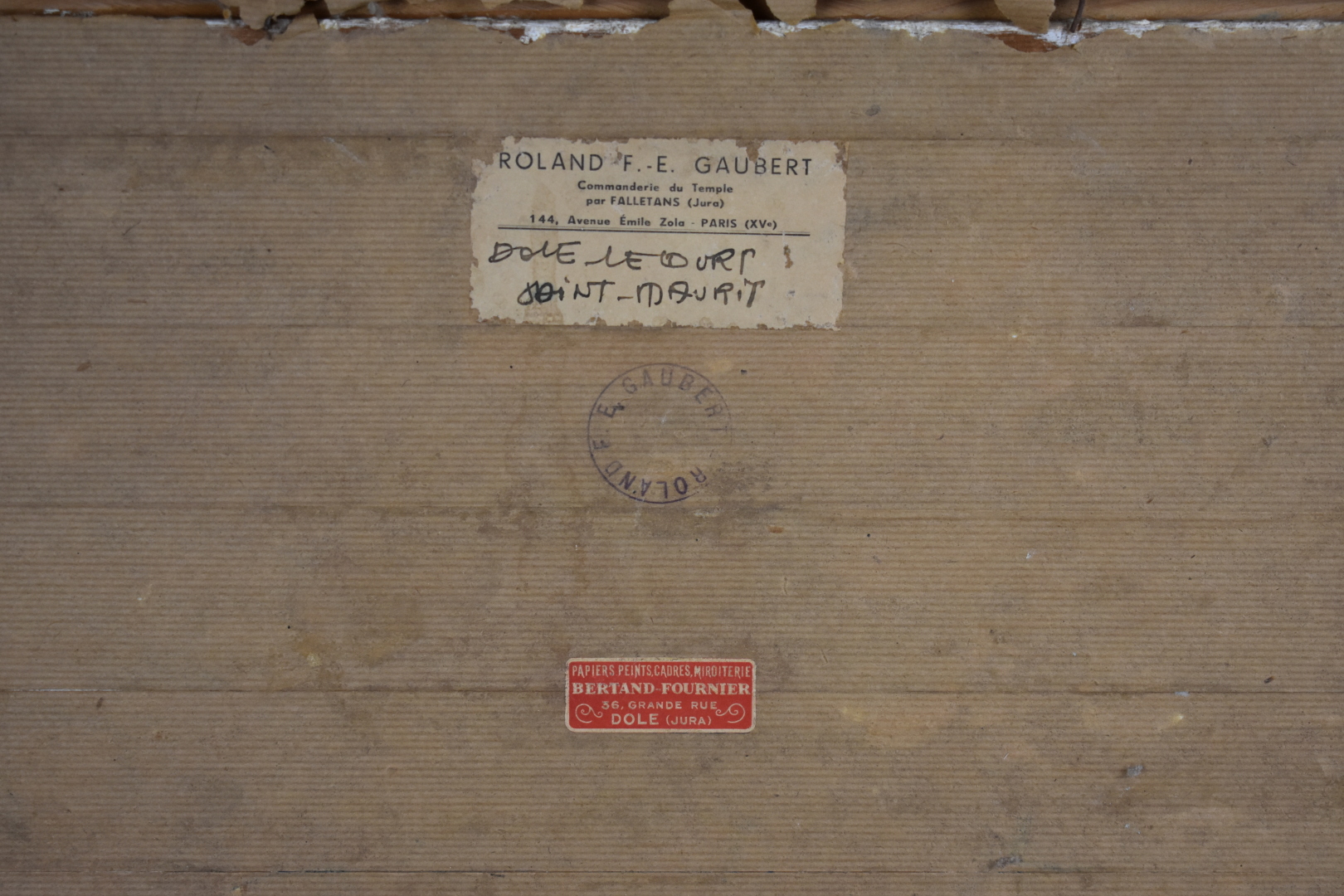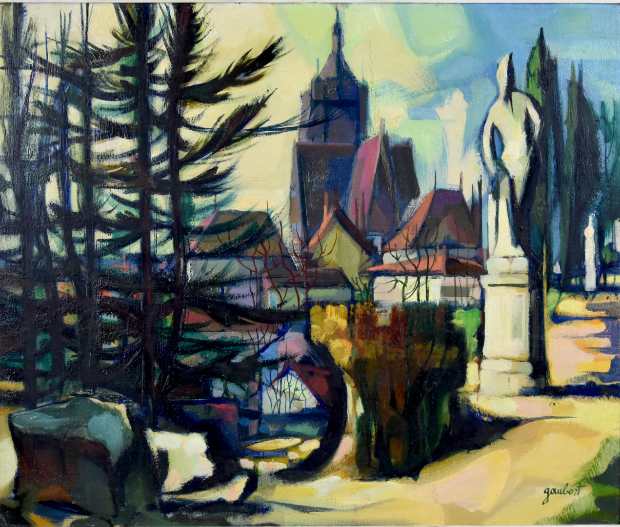 Roland GAUBERT (1914 – 1997). «Dole, le court Saint-Maury». Huile sur panneau signée en bas à droite. Tampon et située au dos. 47,5 x 54 cm.
