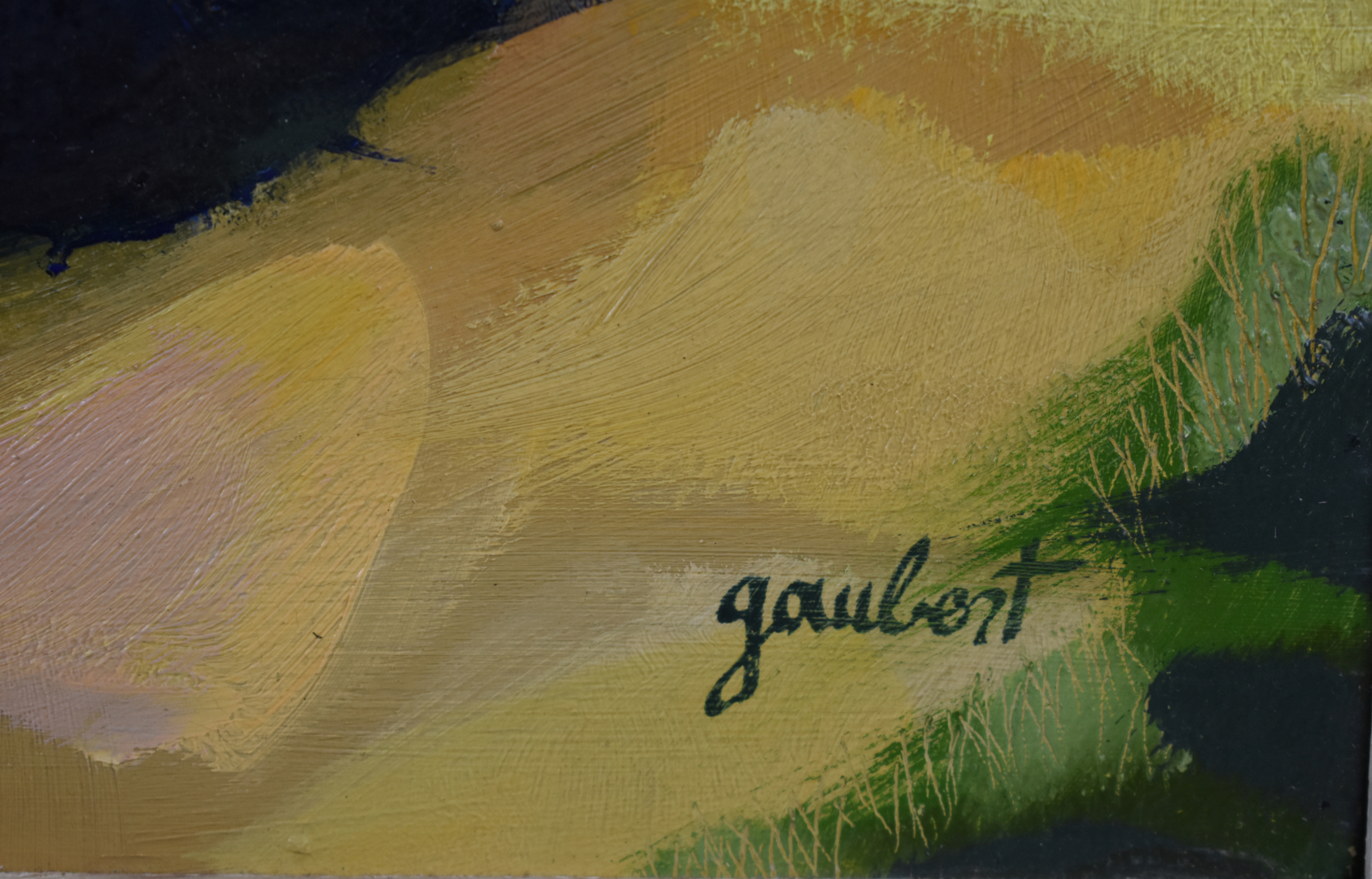 Huile sur panneau signée en bas à droite. Tampon et située au dos.