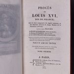 [ROYALISME]. PROCÈS DE LOUIS XVI, roi de France. P., Lerouge, Égron, 1814. Deux volumes in-8 demi-chagrin rouge, dos à nerfs orné, initiales « P. C. » dorées en queue (Reliure de l’époque). TROISIÈME ÉDITION, revue et corrigée, ornée de 6 portraits et 3 figures hors-texte. JOINT, en reliure identique : PROCÈS DES DERNIERS MINISTRES DE CHARLES X. Recueillis par des sténographes. P., Audot, 1830. ÉDITION ORIGINALE.