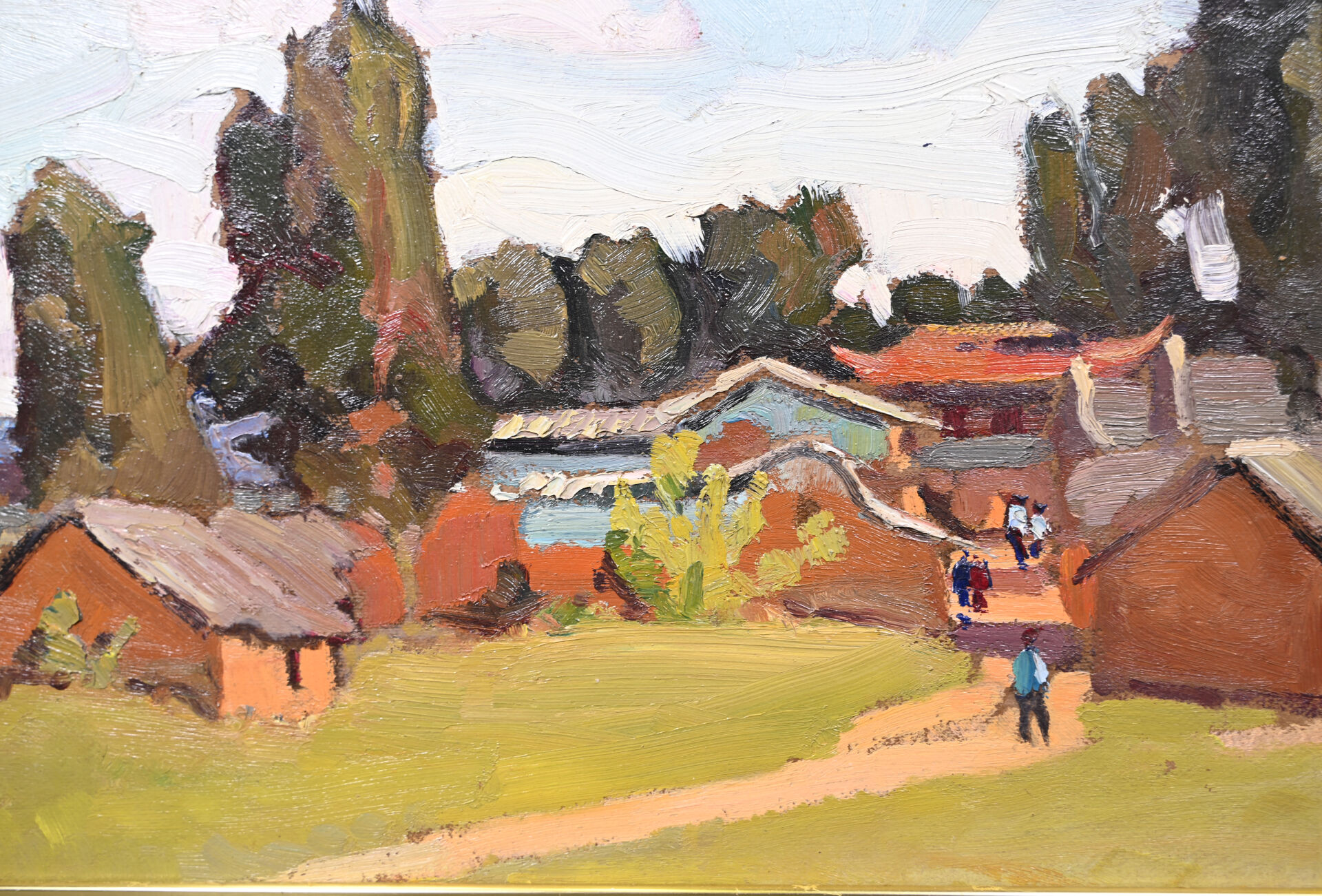 S. GRANIER (XIXe-XXe siècle). Vue de village – Indochine. Huile sur carton signée en bas à gauche. 26,5 x 45,5 cm.