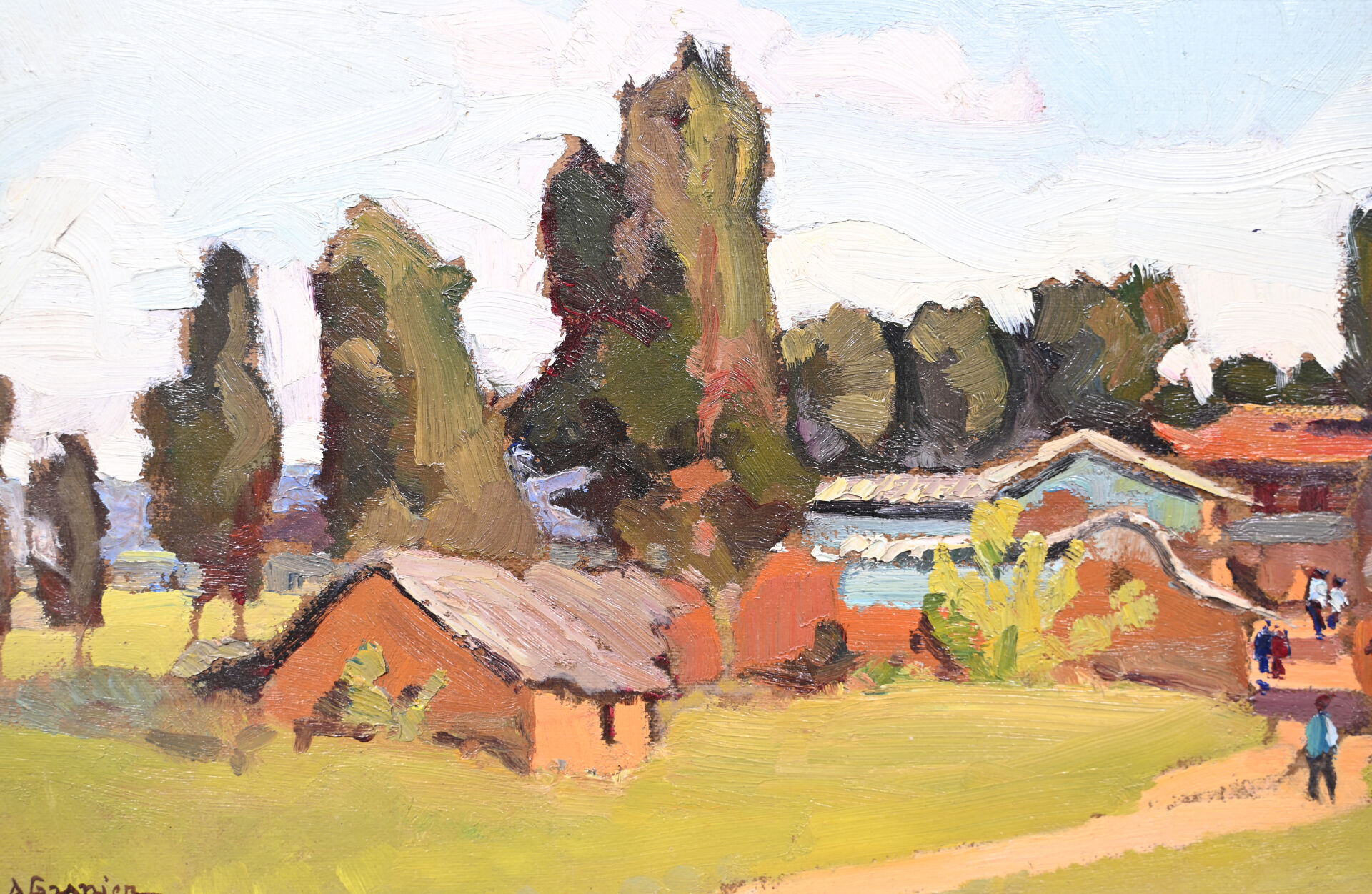 Huile sur carton signée en bas à gauche.