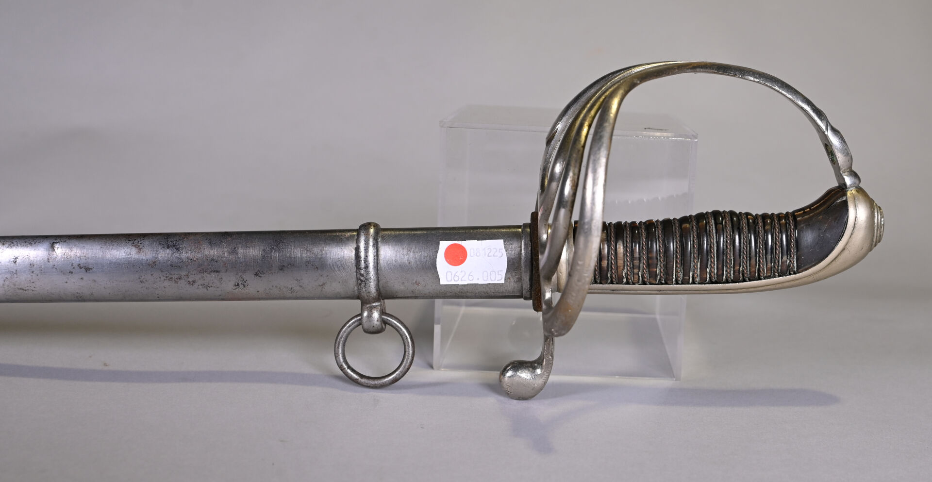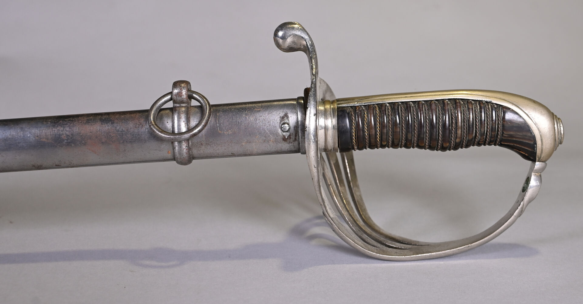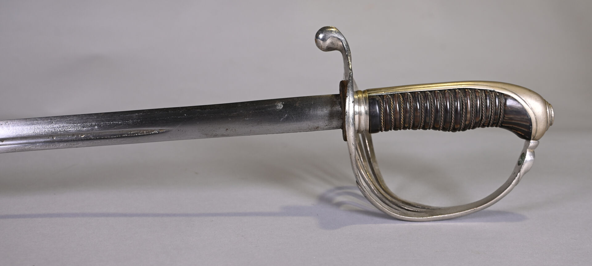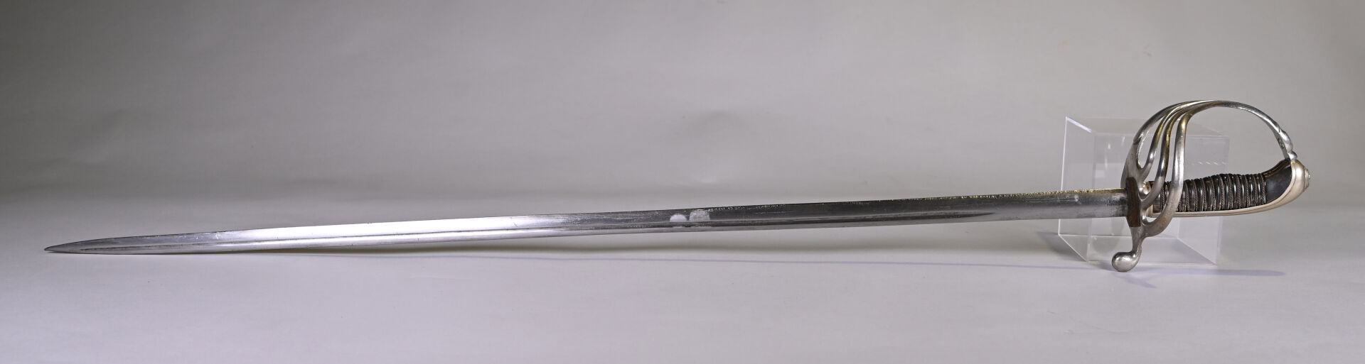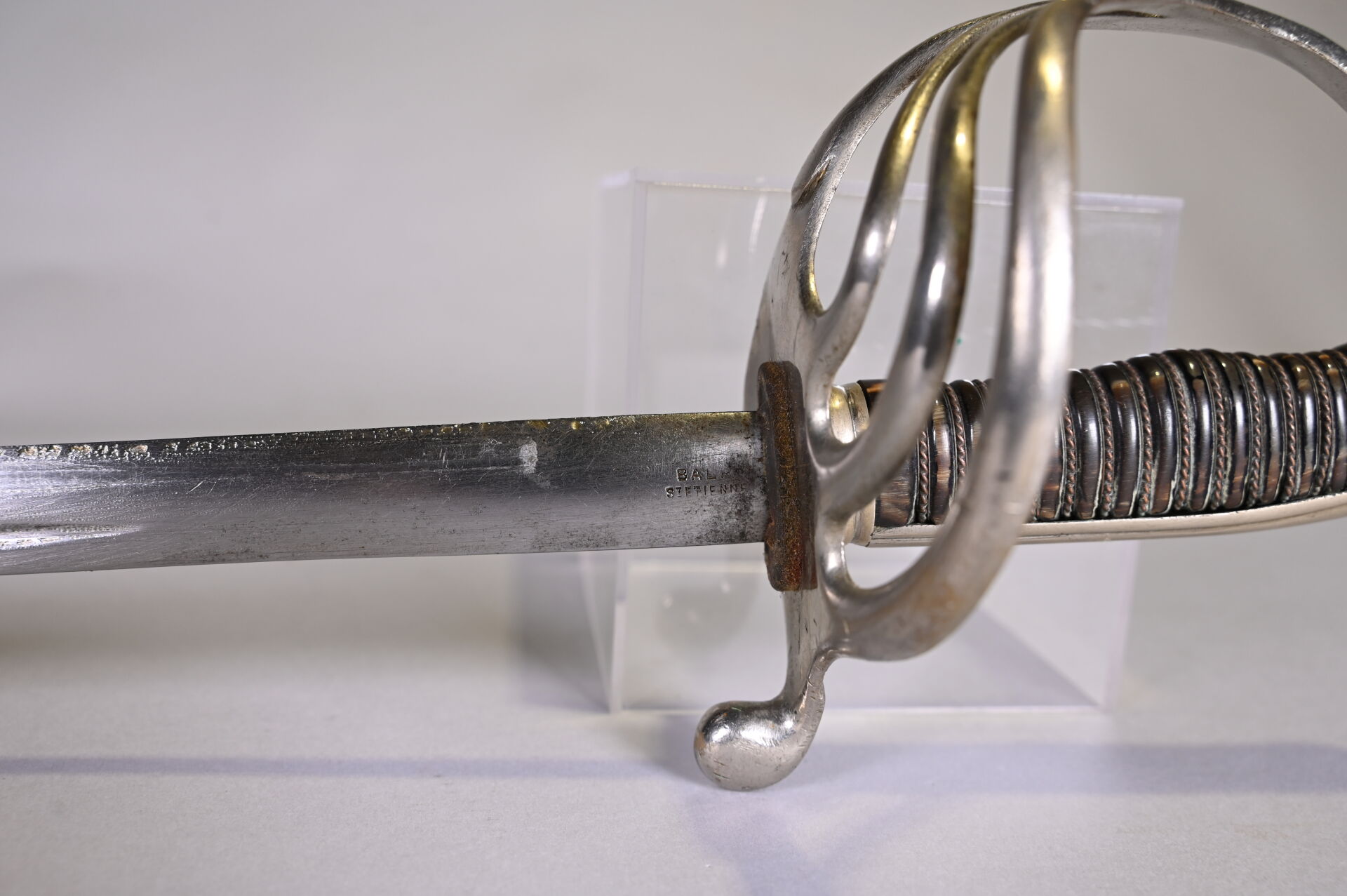 Sabre briquet avec son fourreau. Lame manufacture de St Etienne. Long. : 103 cm.