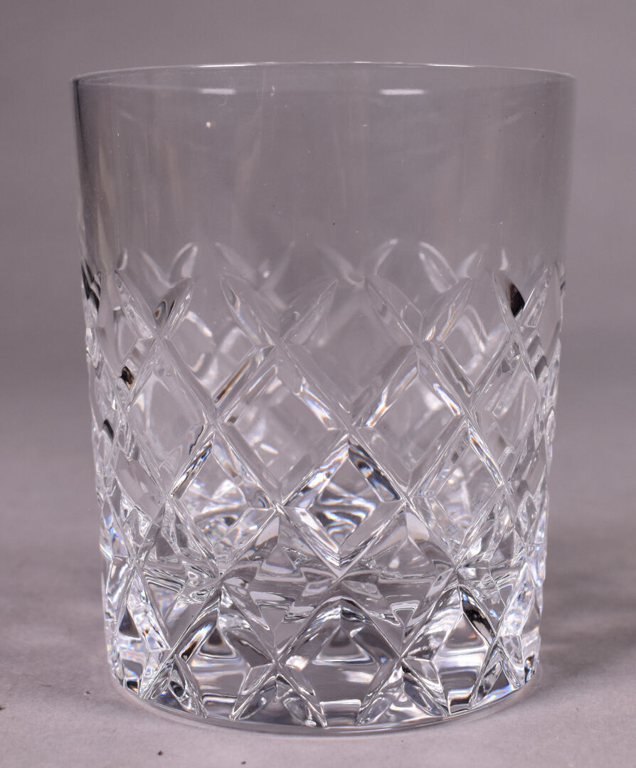 On joint deux verres à whisky d’une autre manufacture en cristal taillé.