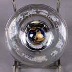 SAINT-LOUIS. Presse-papier sulfure en deux demi-sphères abritant un globe terrestre miniature et entourage gravé des signes du zodiaque. Numéroté 90/125. Haut. : 8,5 cm. Écrin, contre boîte et certificat.