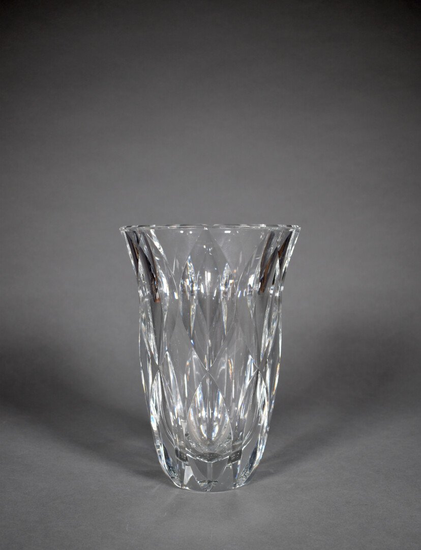 SAINT LOUIS. Vase cornet en cristal moulé à décor de navettes. Marqué sous la base. Haut. : 28 cm.
