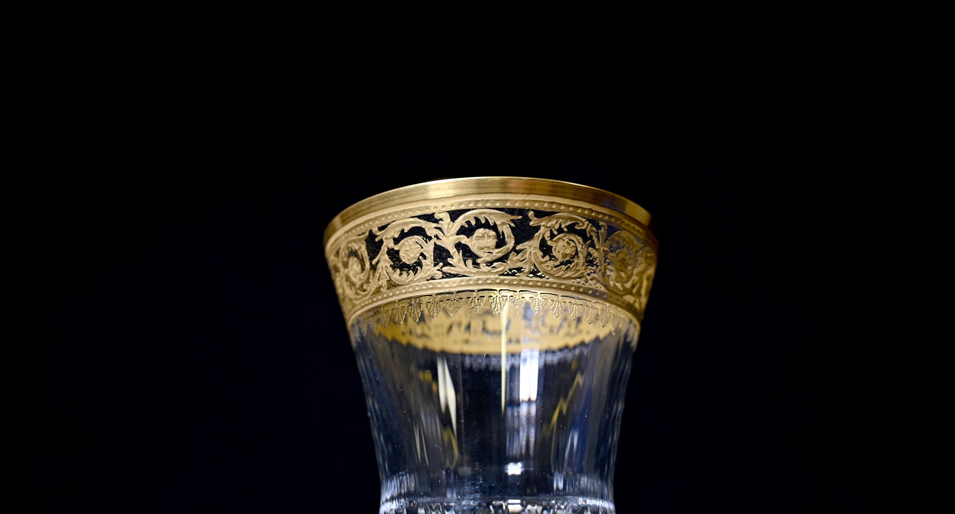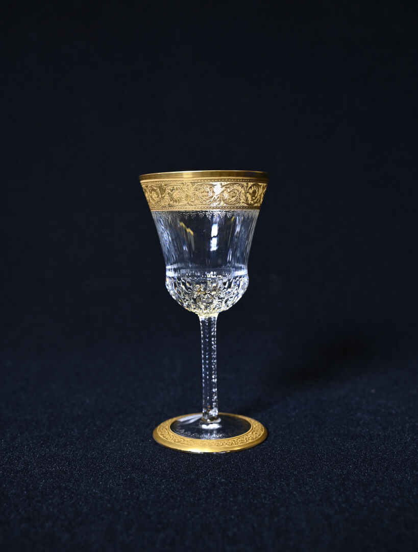 SAINT-LOUIS. Verre à pied en cristal à décor en dorure modèle « Thistle ». Haut. : 18 cm. Avec boite.