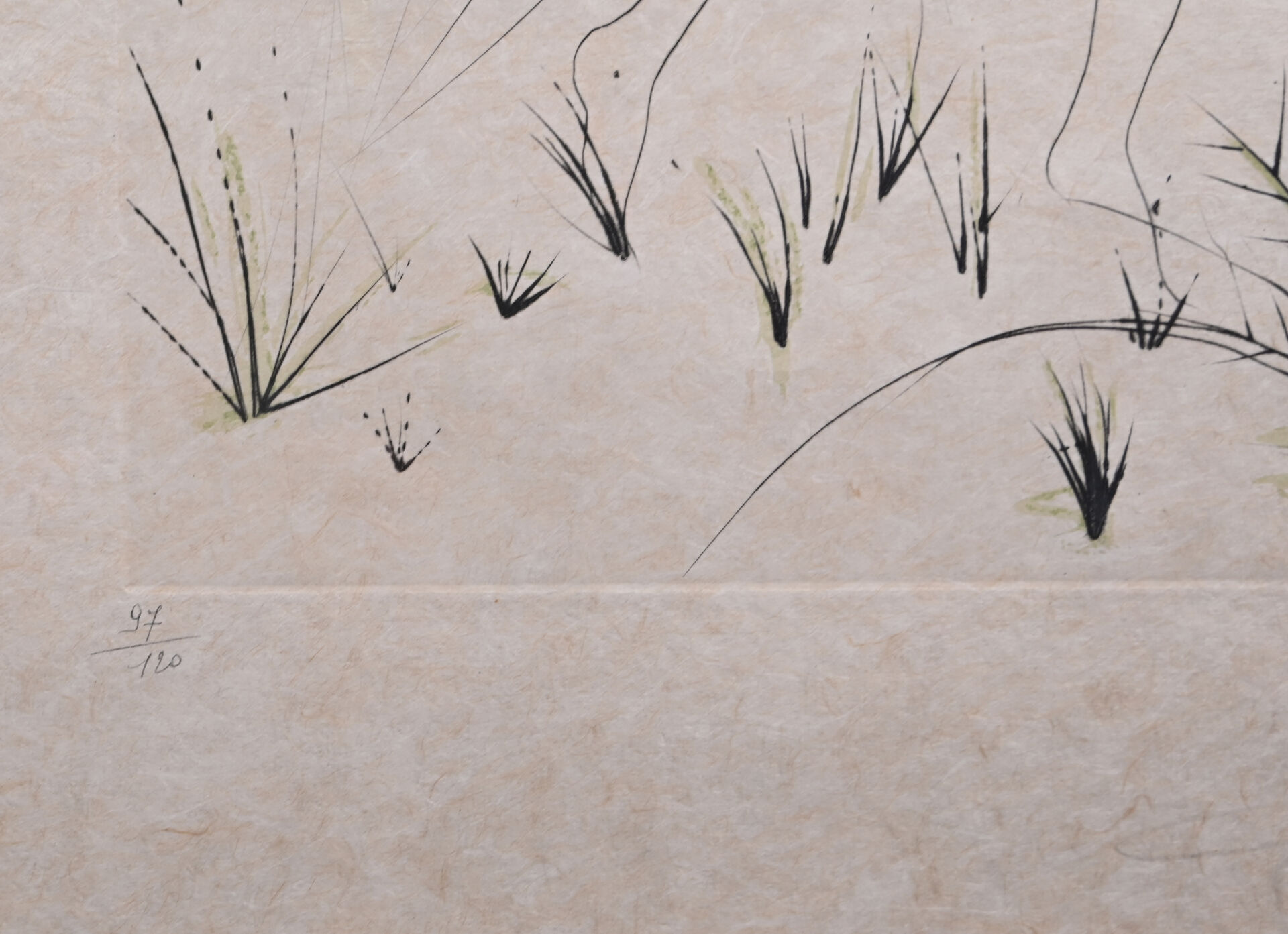 Pointe sèche réhaussée en couleurs sur papier japon, signée en b&as à droite au crayon, numérotée 97/120 en bas à gauche. 68 x47 cm (à vue).