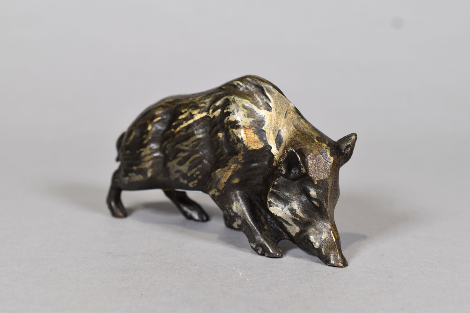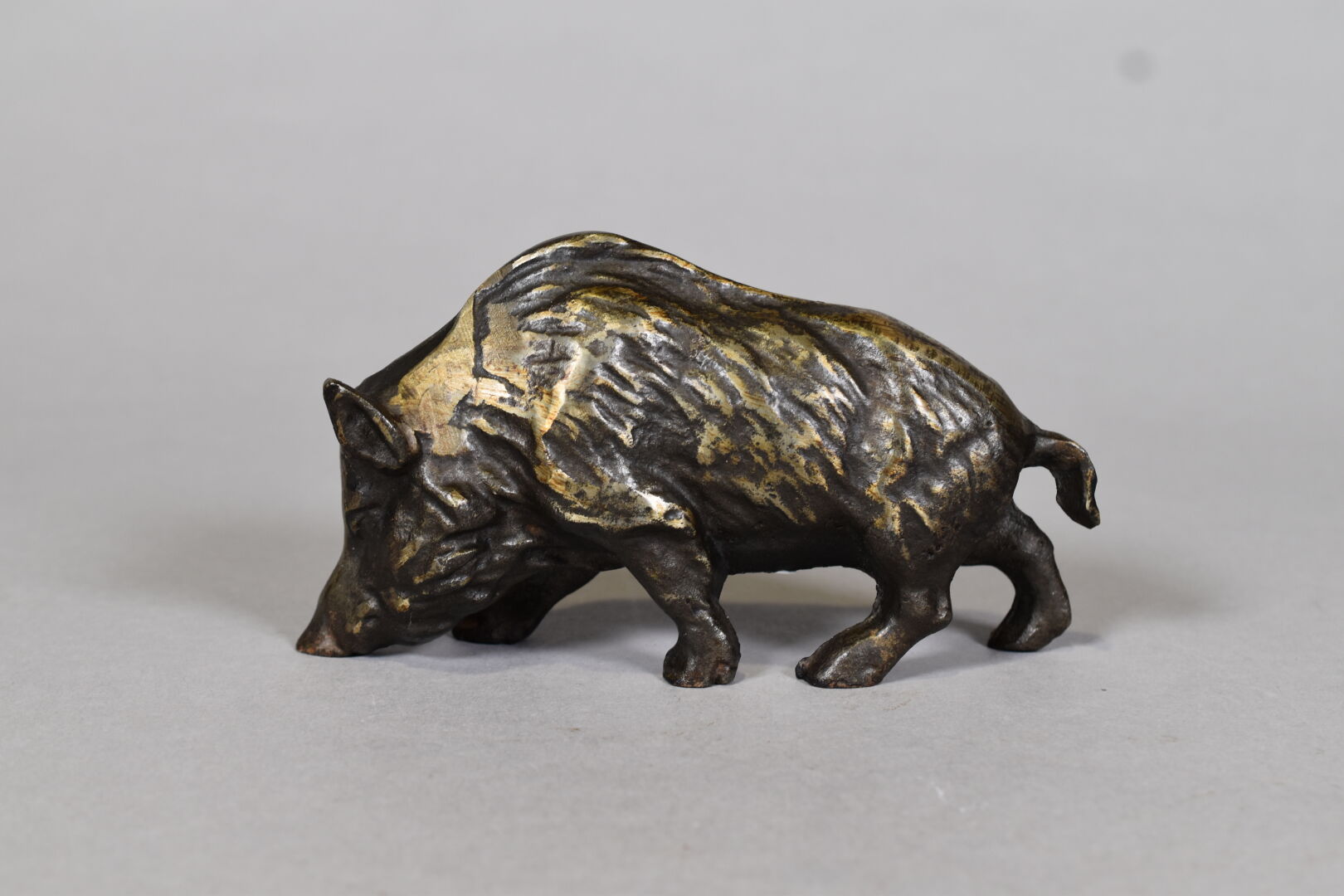 Sanglier en bronze moulé à patine brun. XXe siècle. Haut. : 10 cm.