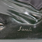 SANTI (XXe siècle). Archère en plâtre émaillé vert signé sur la terrasse. Haut. : 31 cm (sans l’arc).