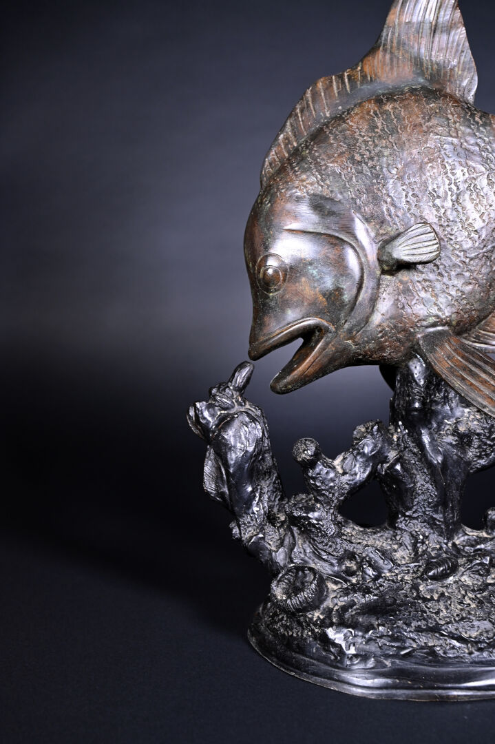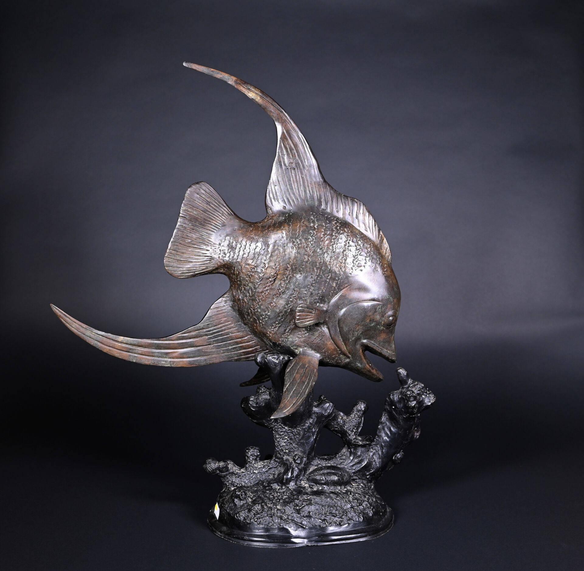 Scalaires et coraux en bronze patiné brun. XXe siècle. Haut. : 65,5 cm.