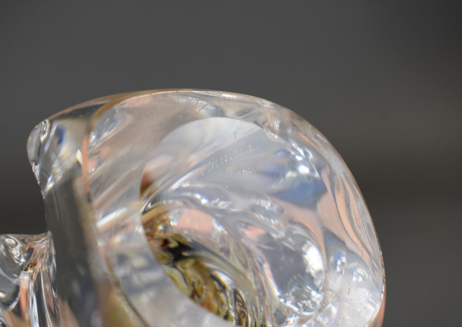 SCHNEIDER. Pied de lampe en cristal moulé. Signé sous la base. Haut. : 20,5 cm.
