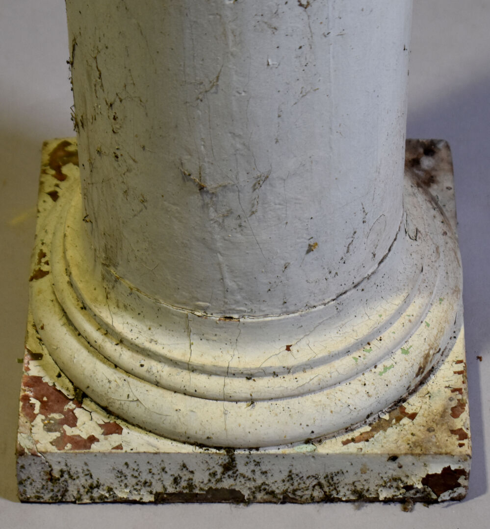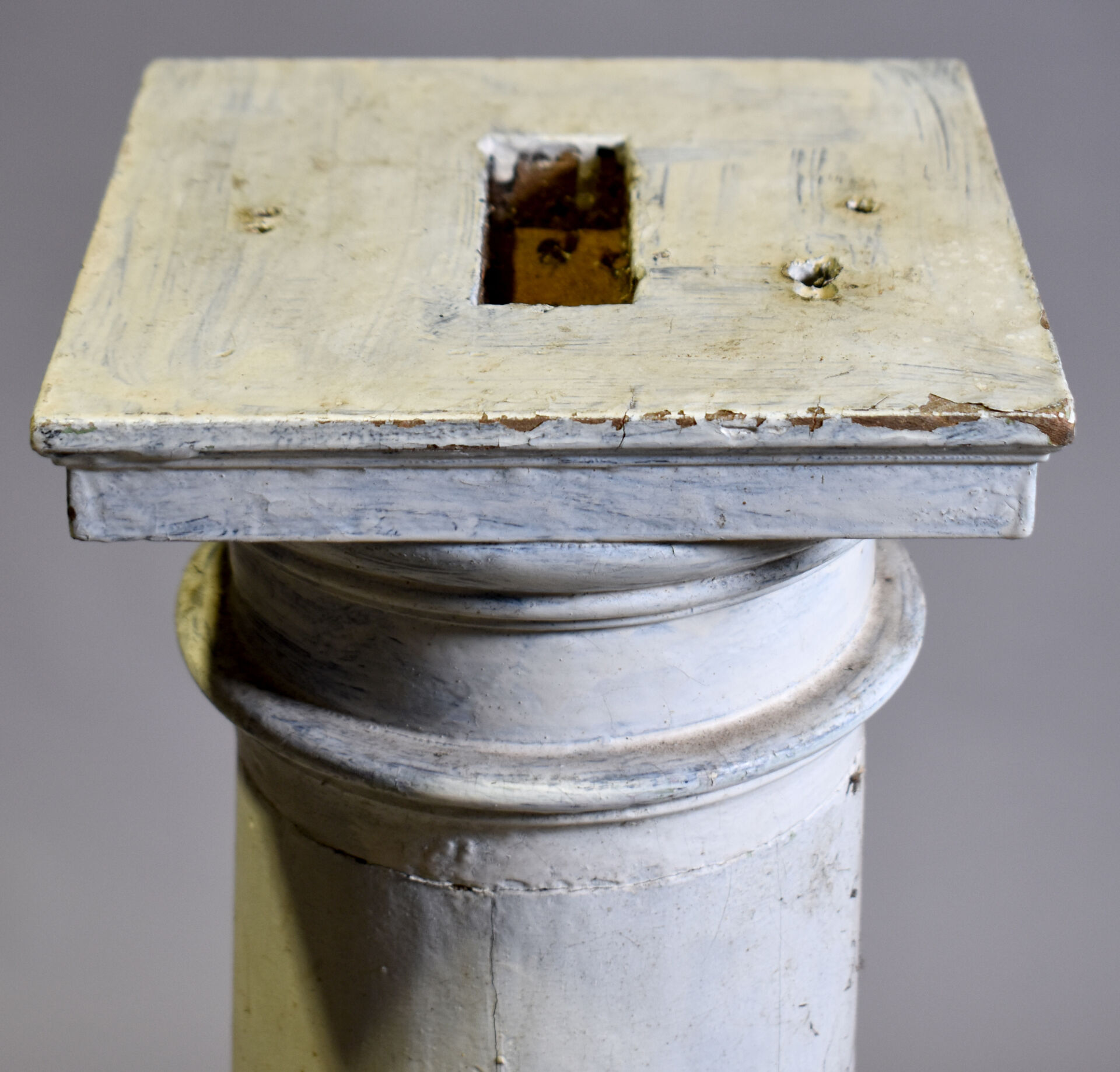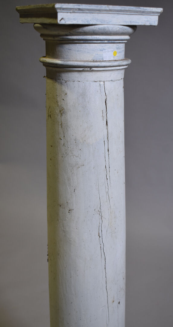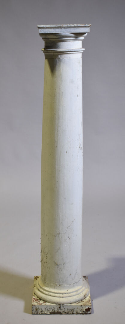 Selette colonne en bois sculpté laqué crème (usures, éclats). Haut. : 112,5 cm.