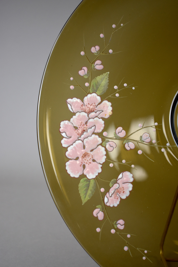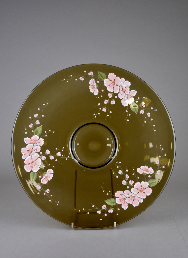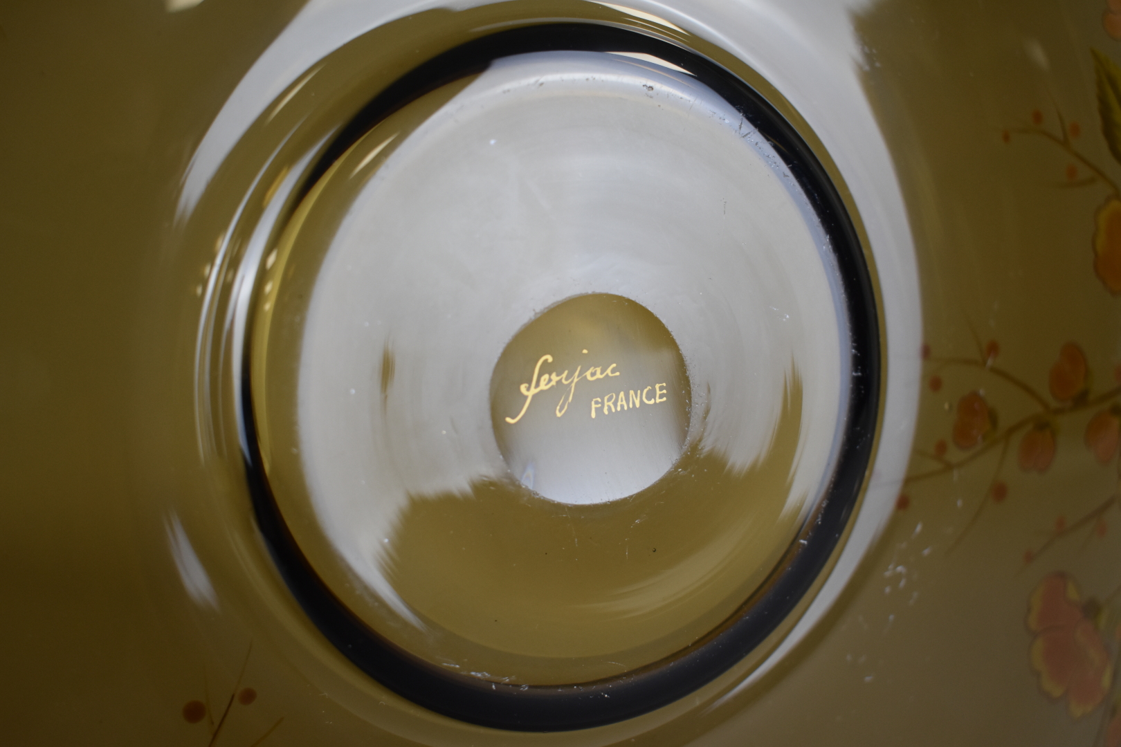SERJAC ? Coupe en verre fumé à décor émaillé (quelques usures à l’émail). Marquée au-dessous. Diam. : 37,5 cm.