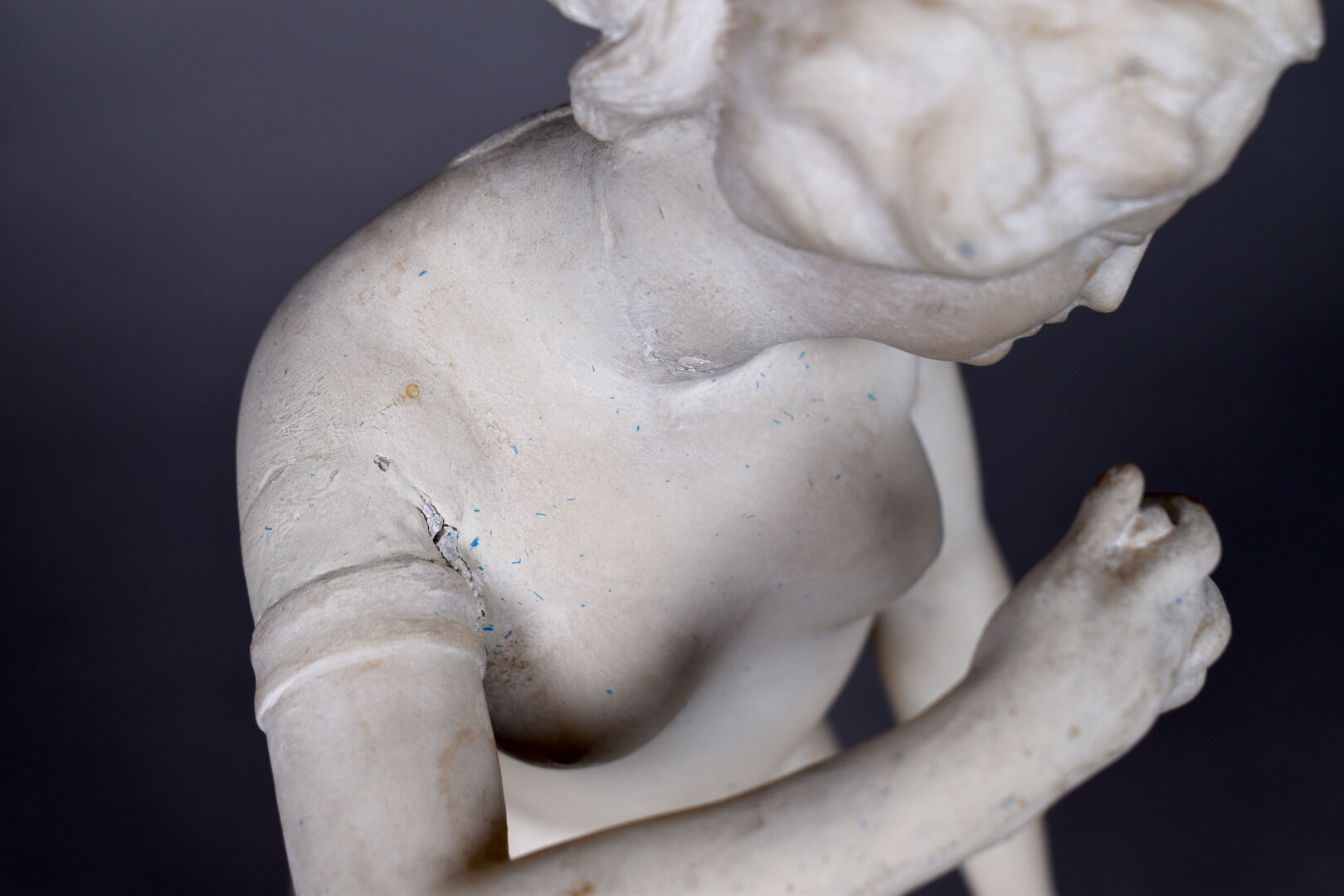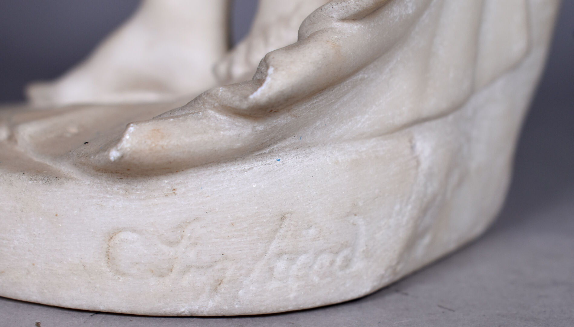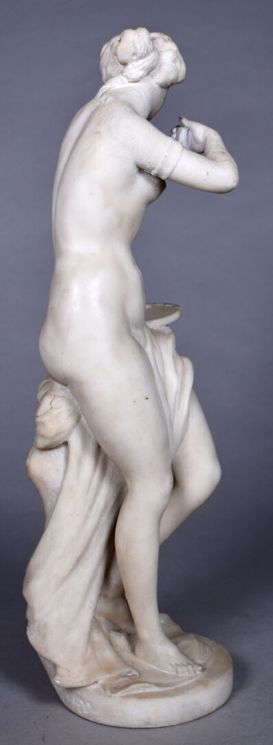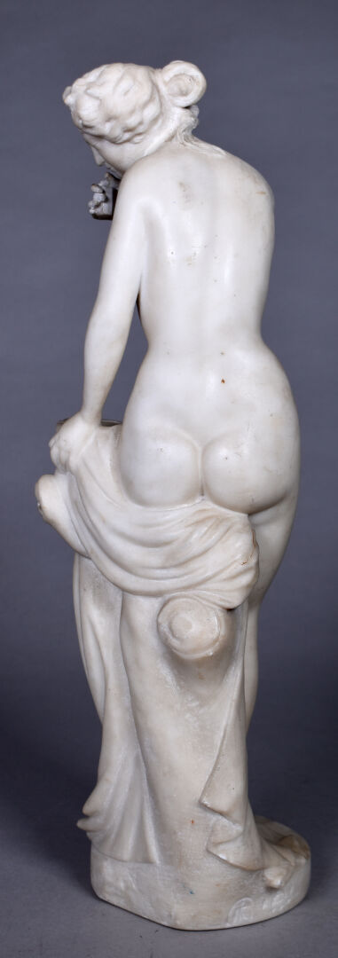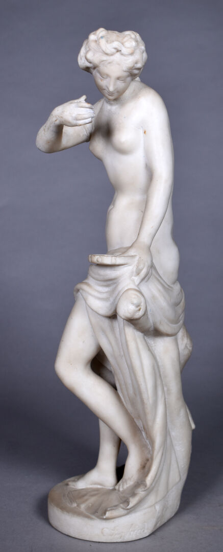 SIEGFRIED ? (XIXe-XXe siècle). Baigneuse en marbre blanc sculpté (accident restauré). Signée en bas à la pointe. Haut. : 45 cm.