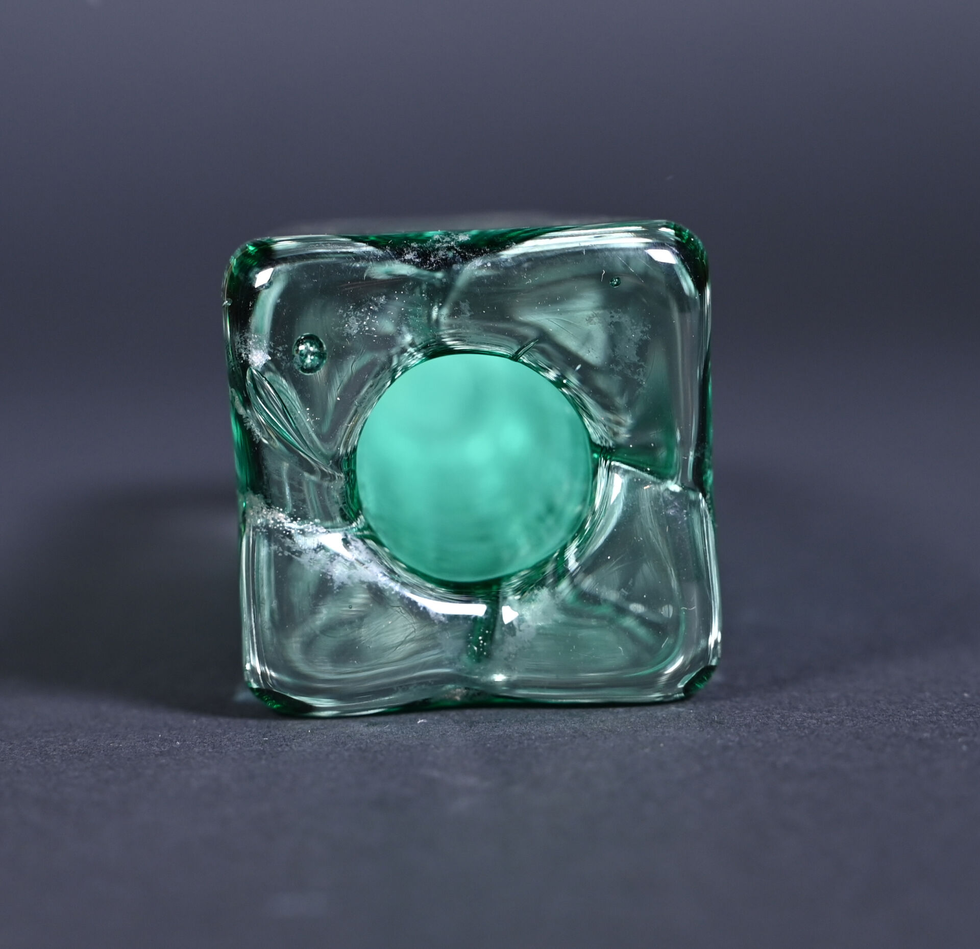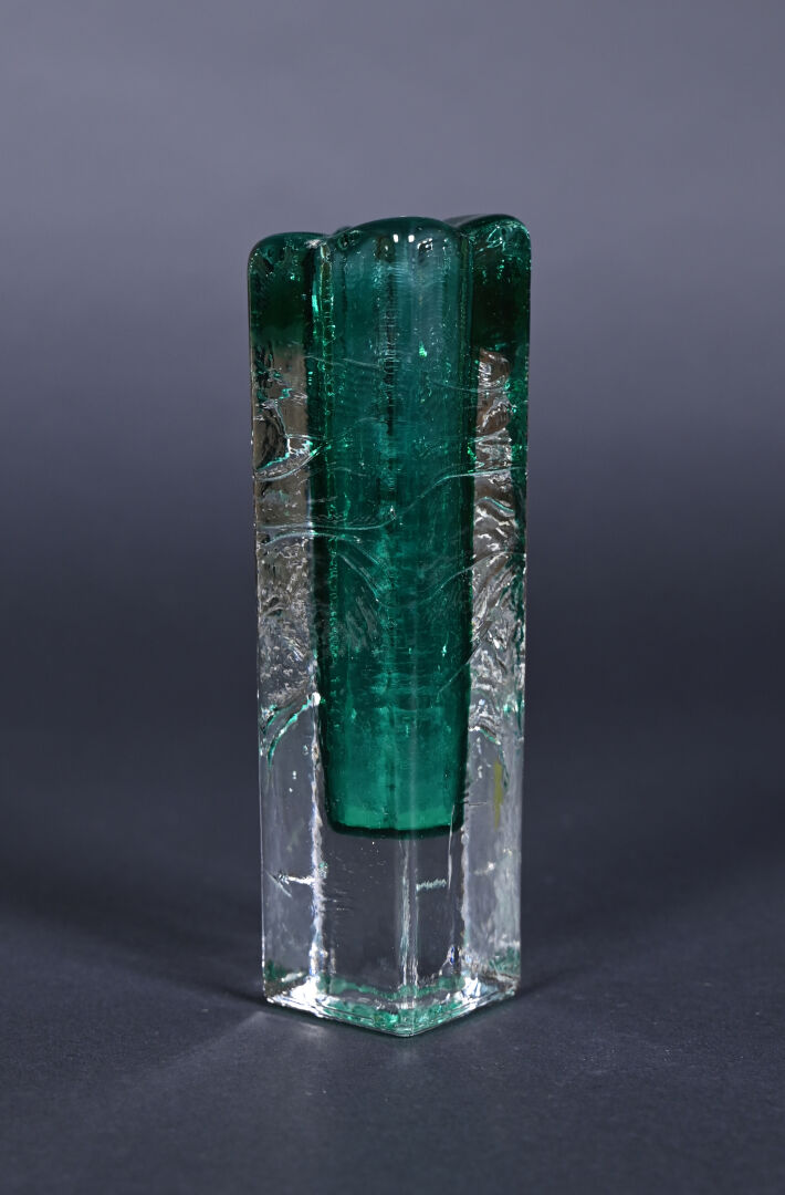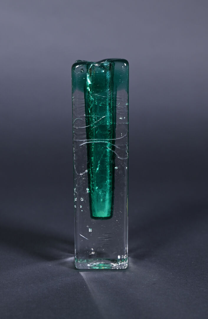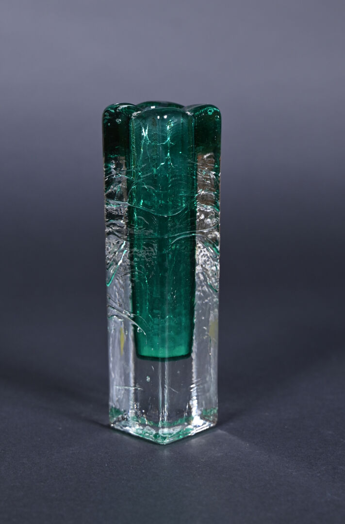 Soliflore en verre façon somerso, l’intérieur vert. XXe siècle. Haut. : 18 cm.