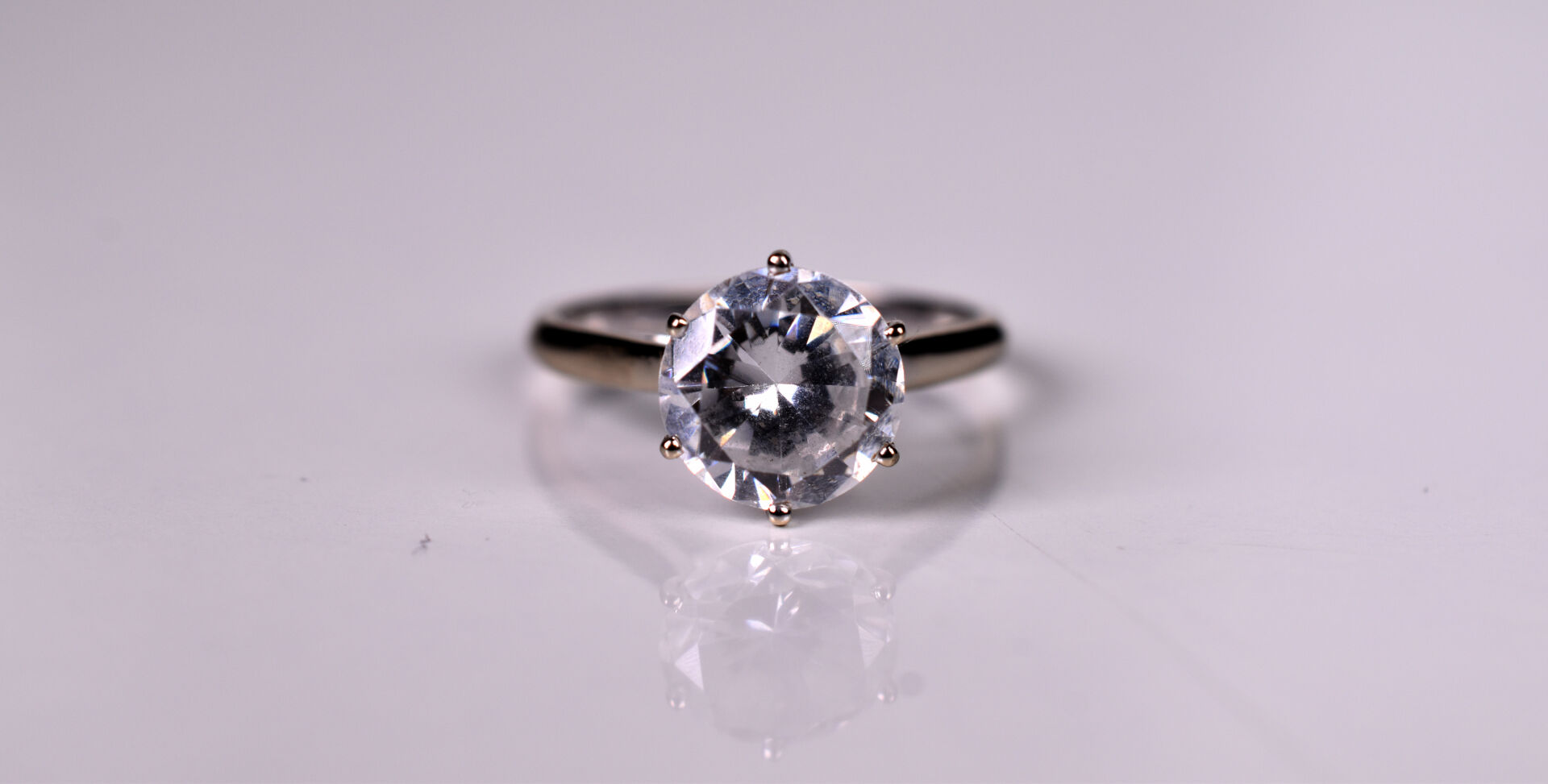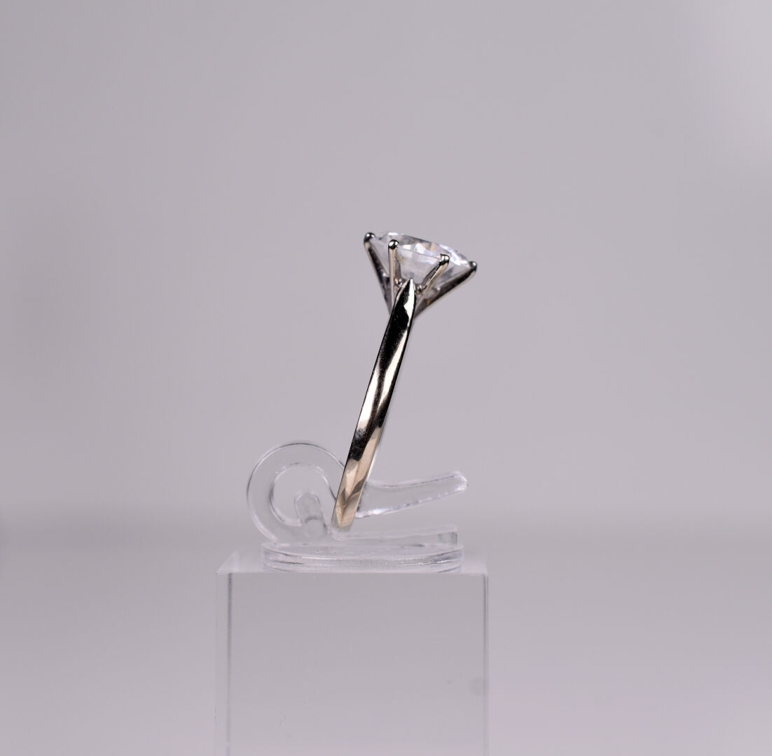 Solitaire en or gris 18K 750/1000e et oxyde de zirconium. TDD. : 48. Poids brut. : 2,6 g.