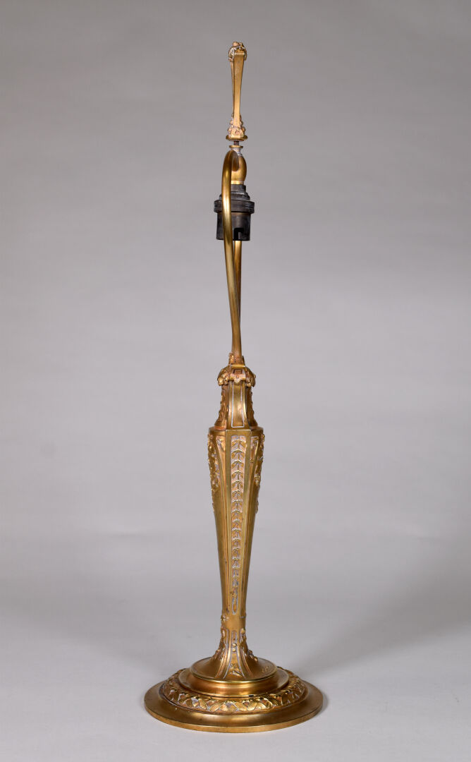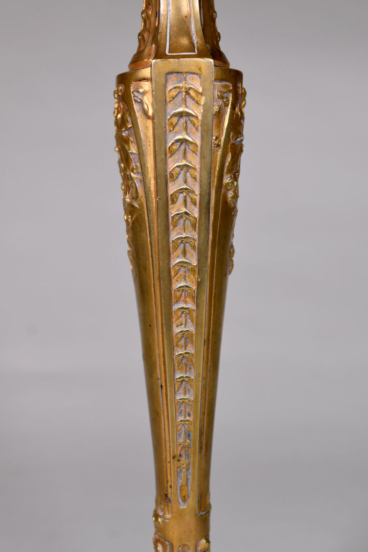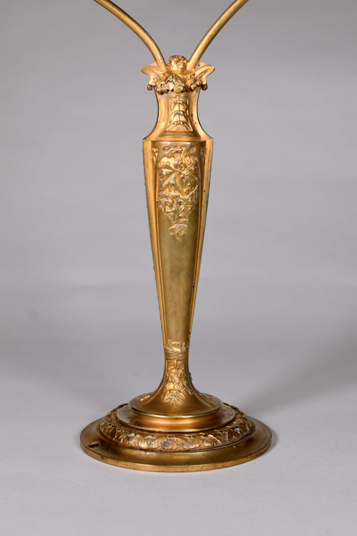 Som-Charles GUENARDEAU (1866-?) Susse Frères Editeur. Pied de lampe en bronze ciselé doré à décor de fleurs et végétaux. Signé. Haut. : 46,5 cm.