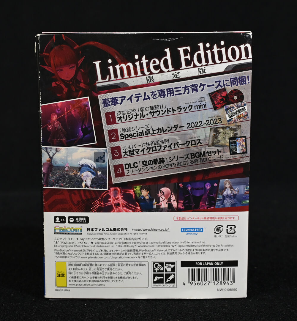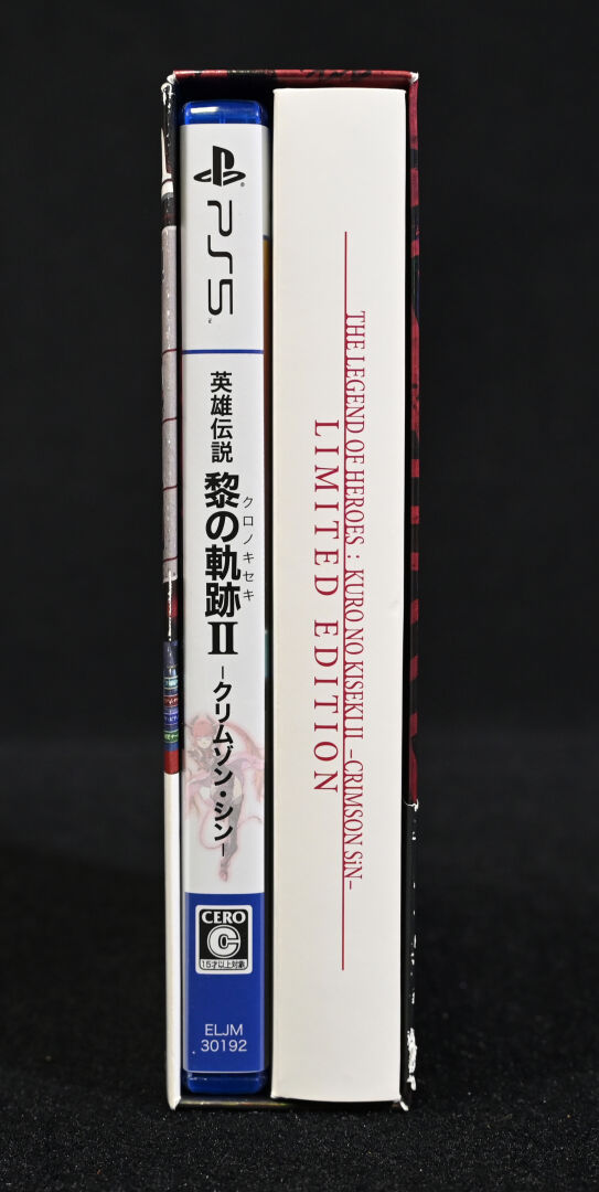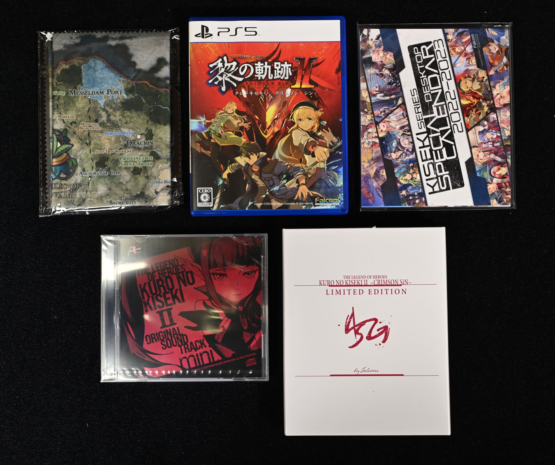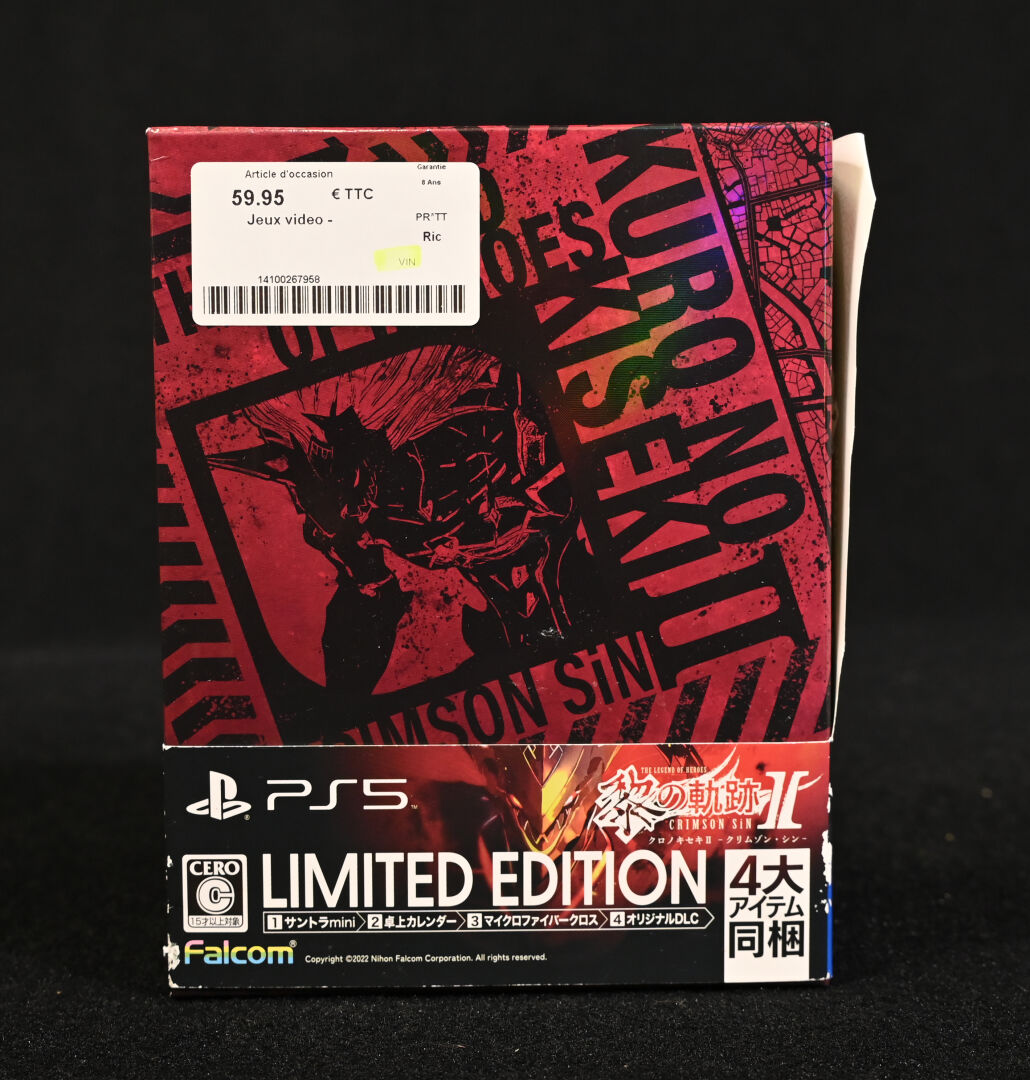 * SONY – FALCOM Jeu PS5 – THE LEGEND OF HEROES – JURO NO KISEKI II – CRIMSON SIN Édition Japonaise avec CD « ORIGINAL SOUNDTRACK sous blister, calendrier de bureau (2022-2023) sous blister et carte du jeu, sous blister. Encartonnage.