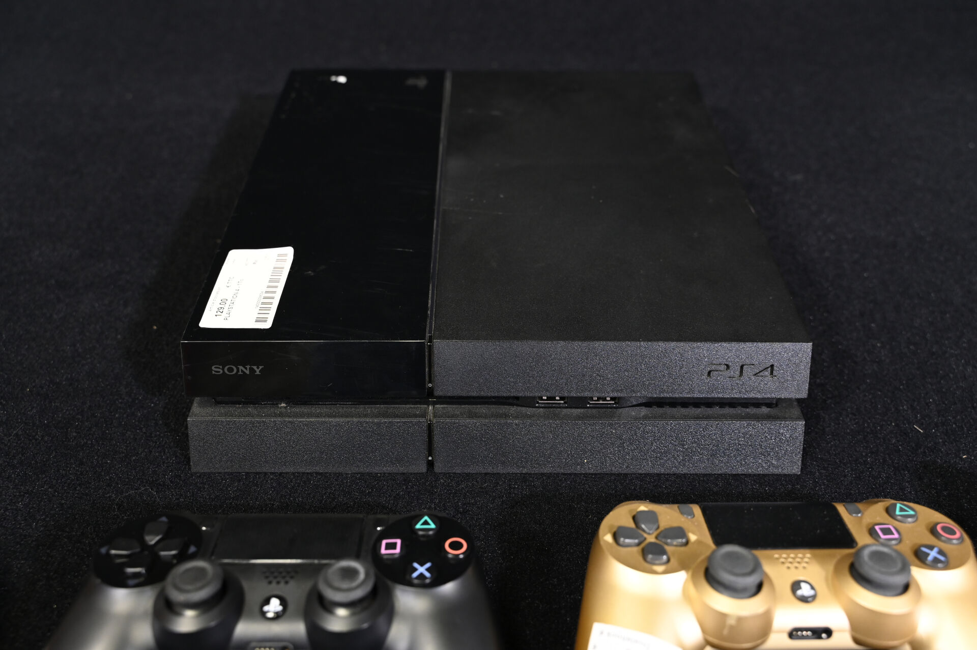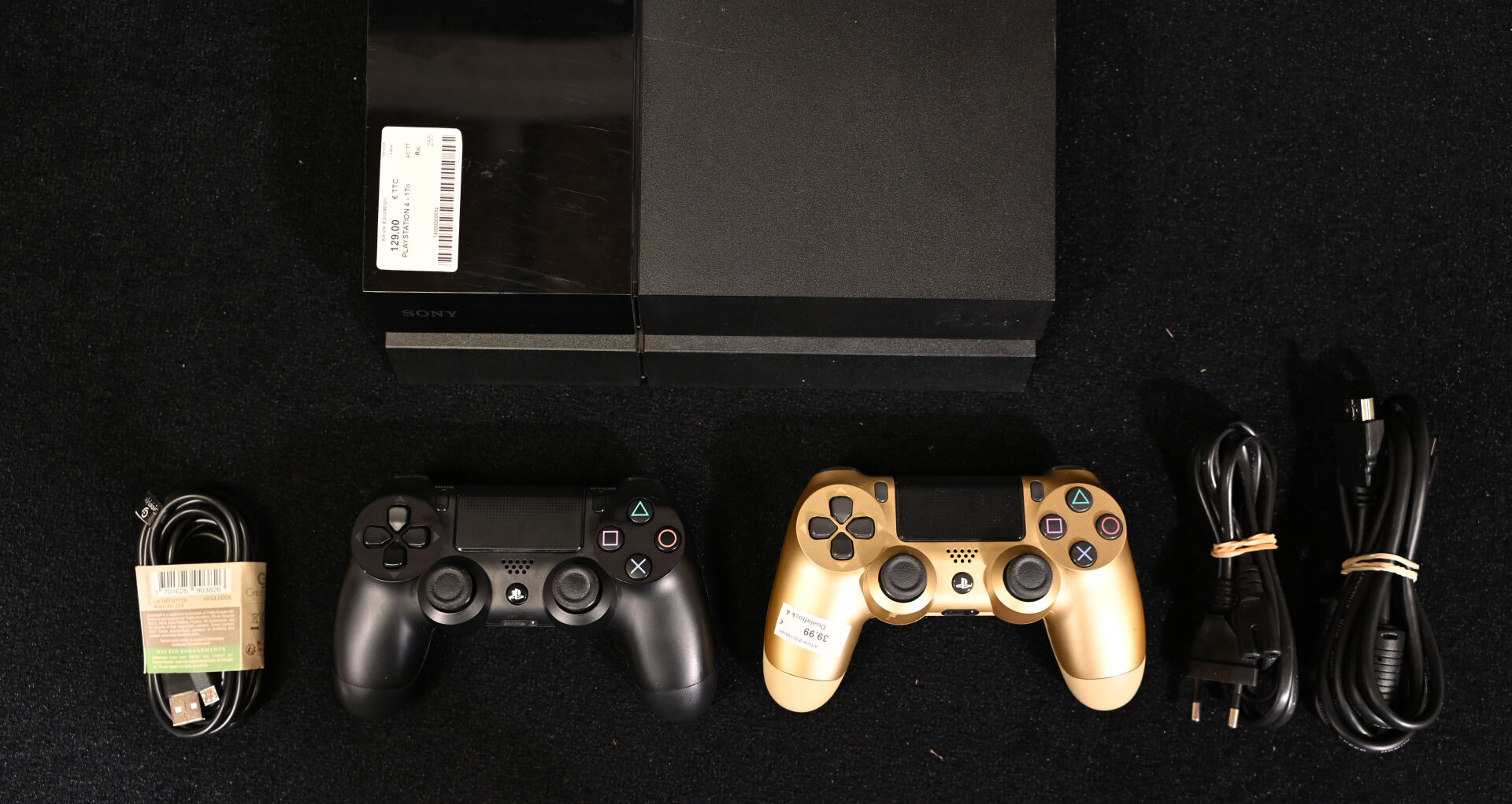 * SONY Console PS4 – CUH 1116A 02-27452252-2117611 Avec câbles et 2 manettes dont une CUH-ZCT2E (dorée) Sans boîte.