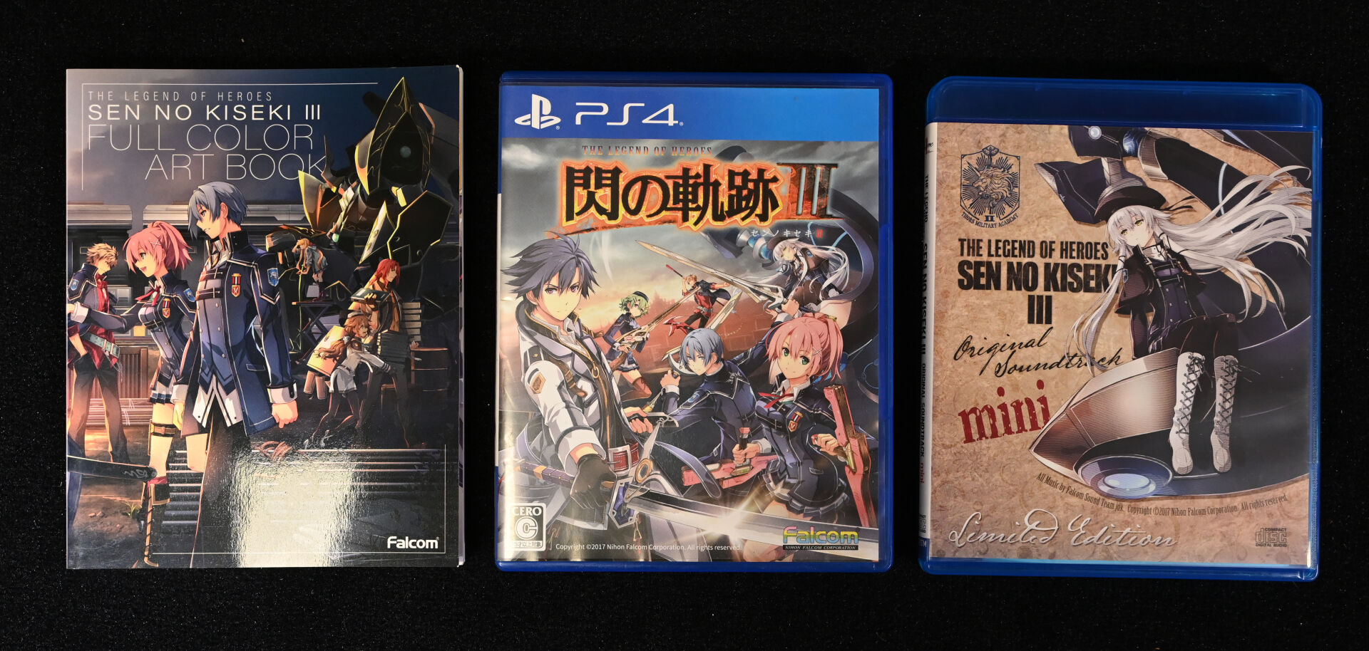 Avec câbles, 2 manettes dont une CUH-ZCT2E (militaire) et le jeu FALCOM – THE LEGEND OF HEROES : SEN NO KISEKI III, édition Japonaise avec soundtrack et livret.