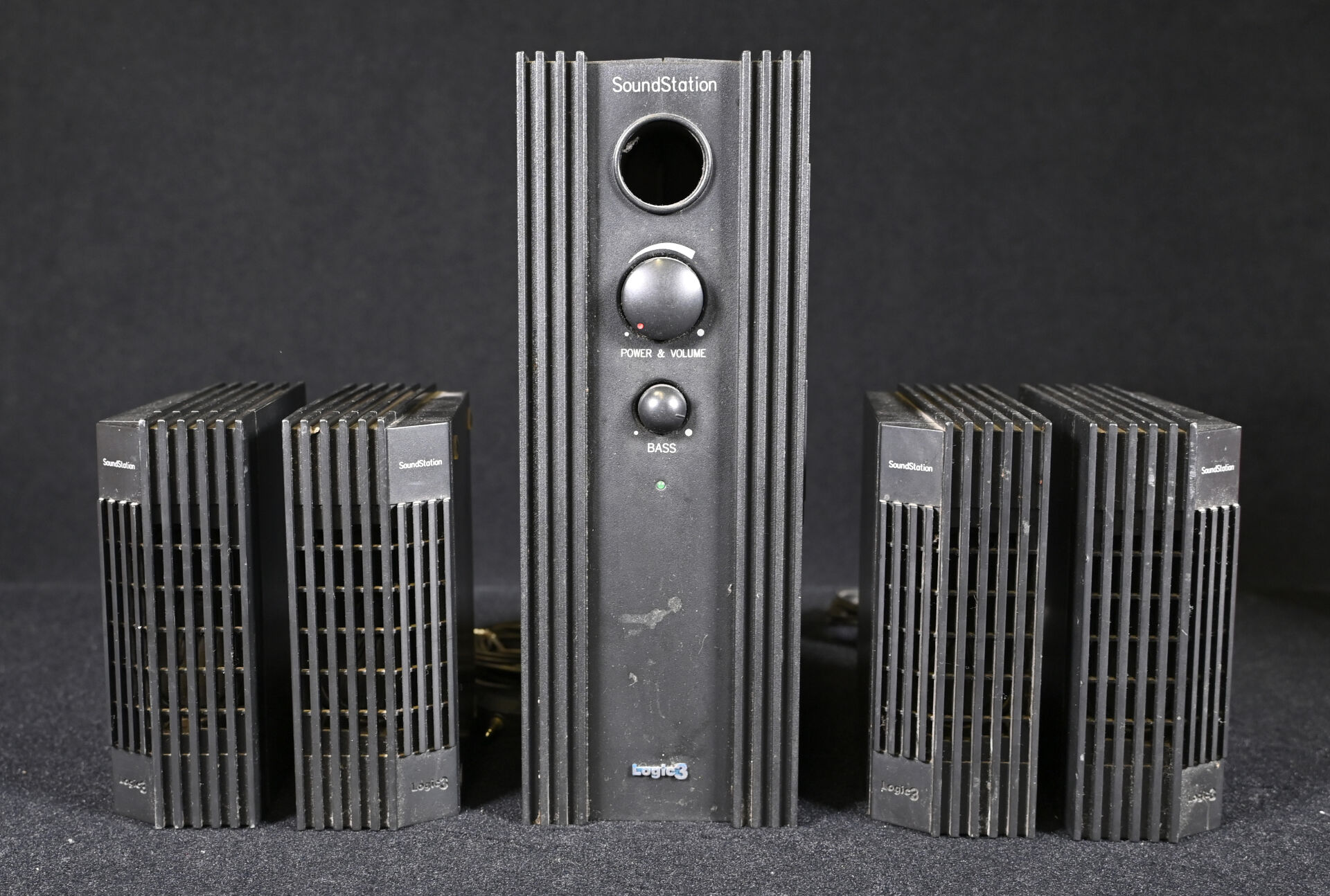 SOUND STATION LOGIC 3 pour PLAYSTATION 2. Home-cinéma avec 4 haut-parleurs (usures d’usage).