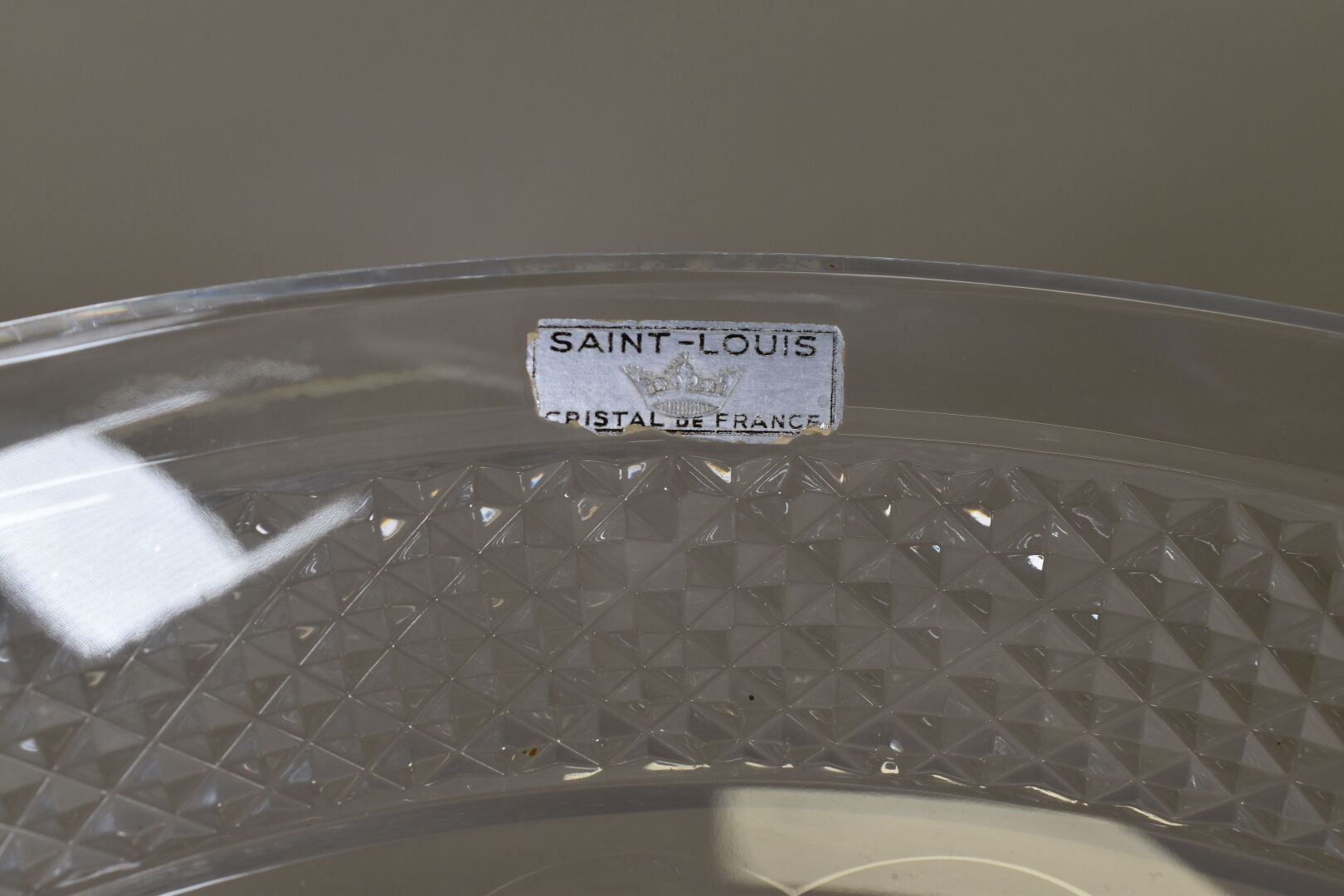 ST LOUIS. Grande coupe sur pied en cristal à décor de pointes de diamant. Marquée au dessous. Haut. : 18 cm – Diam. : 38,7 cm.