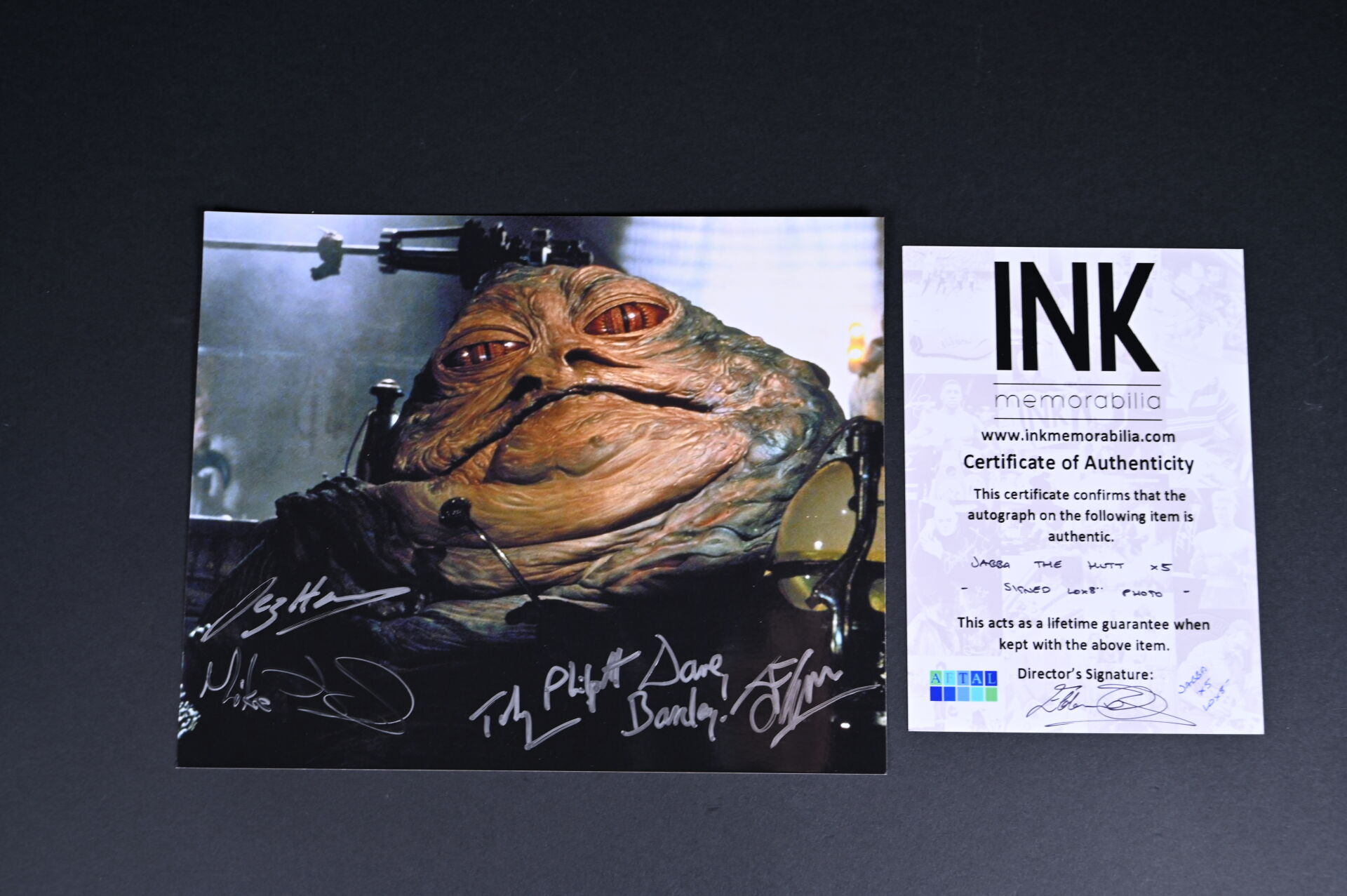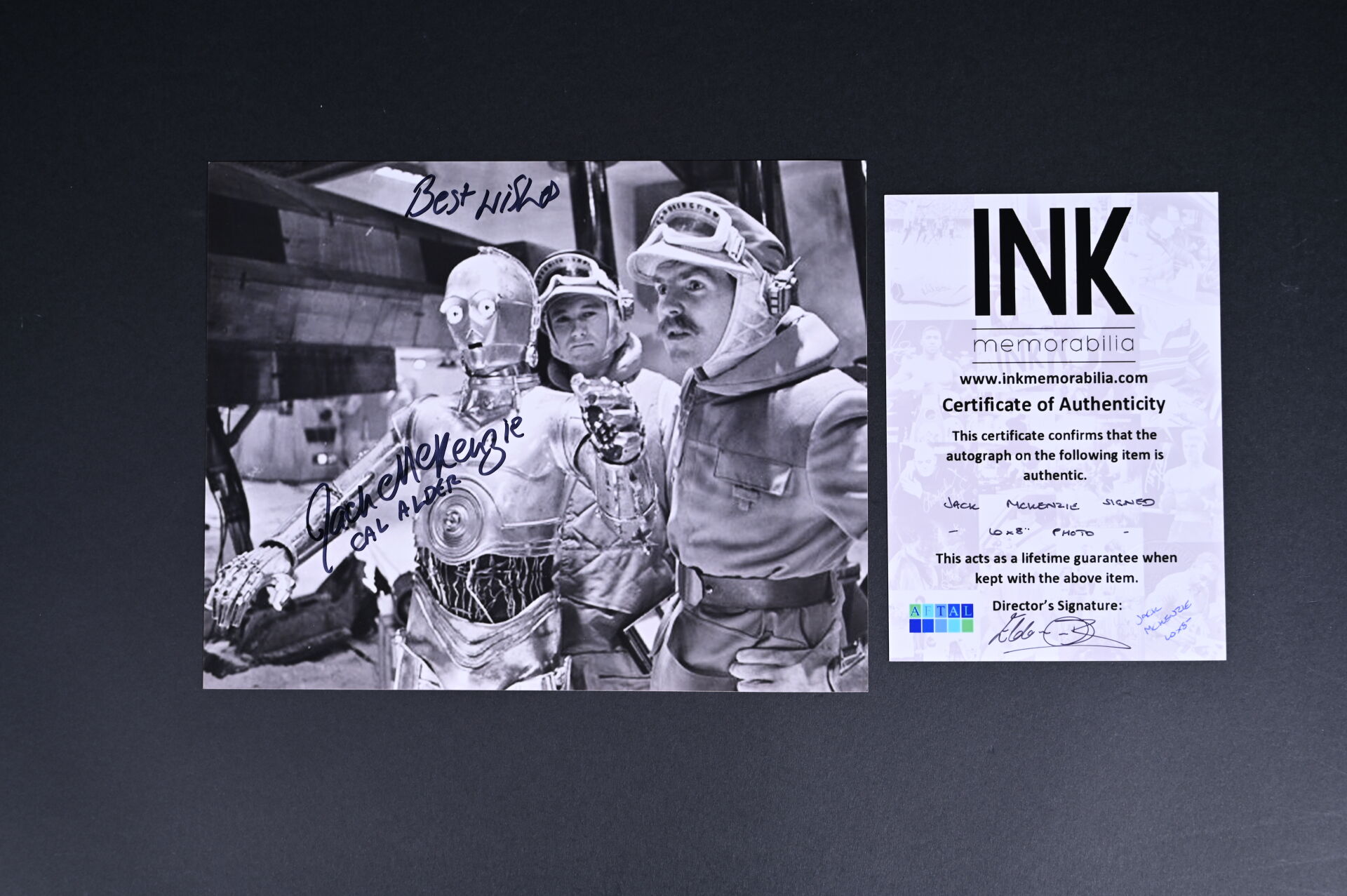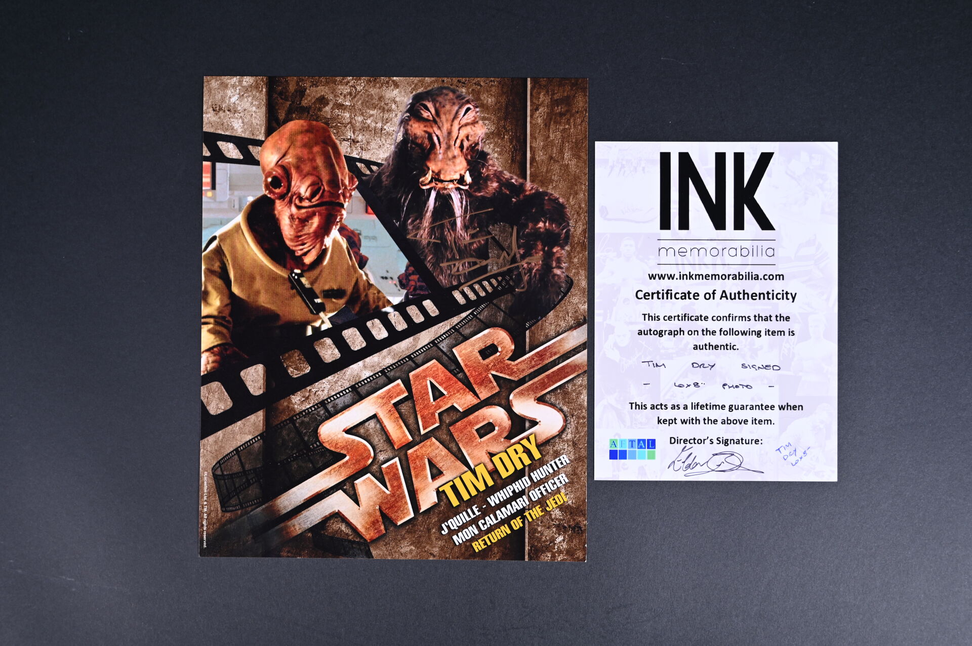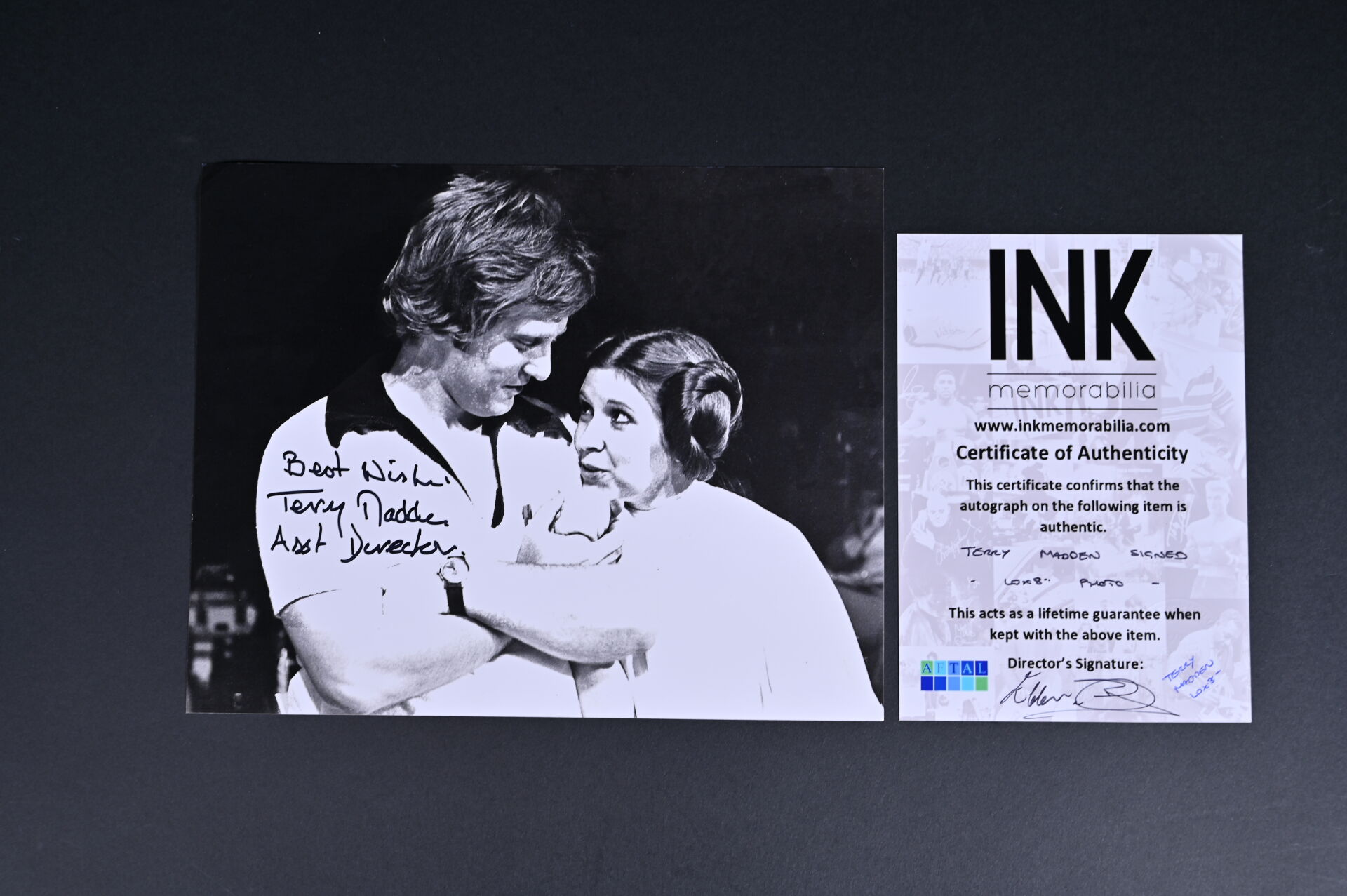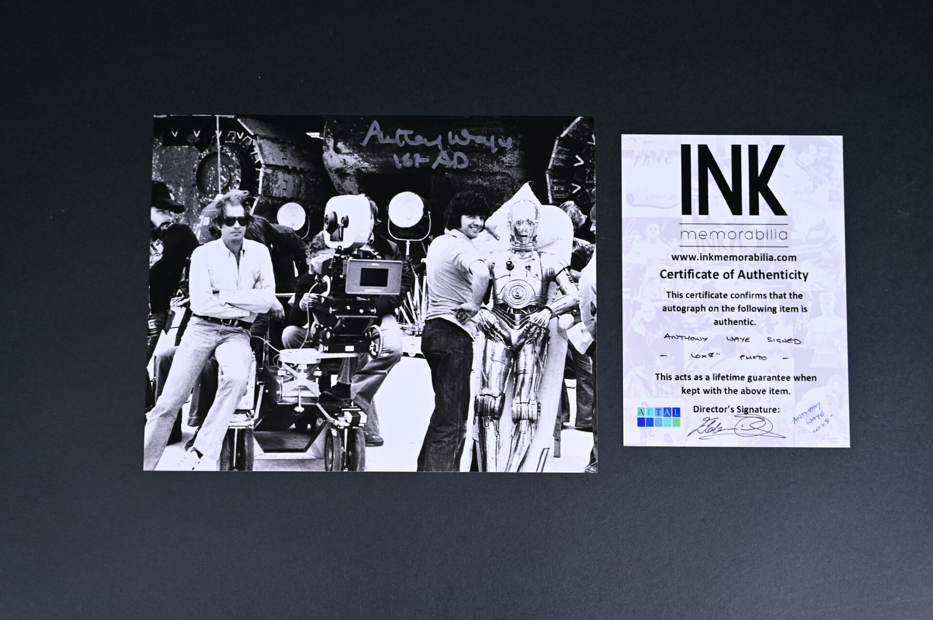 STAR WARS. Ensemble de photographie de tournage soit 4 du tournage, trois dérivées, toutes avec dédicaces, principalement de L’assistant directeur. 20,2 x 25,2 cm. On joint les certificats d’authenticité des autographes.