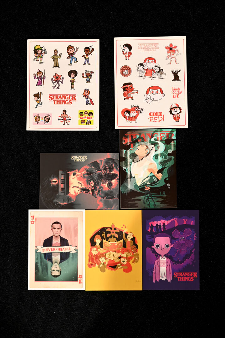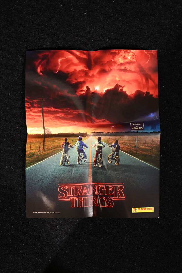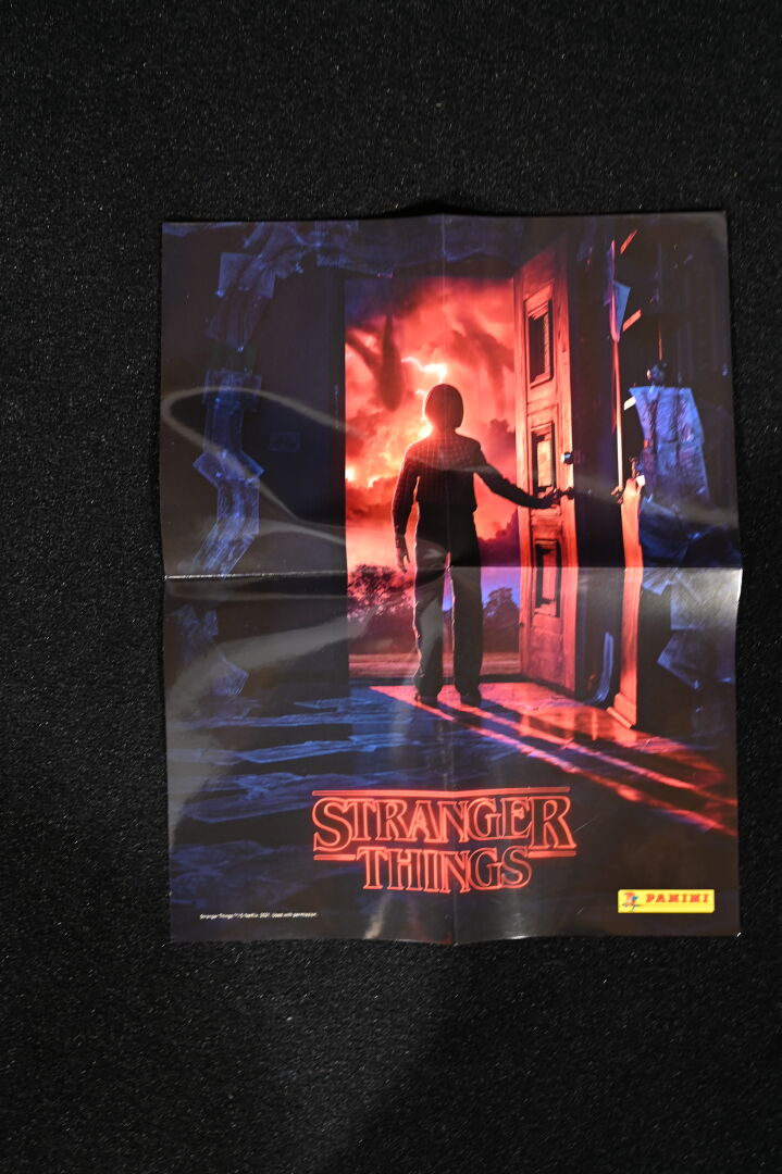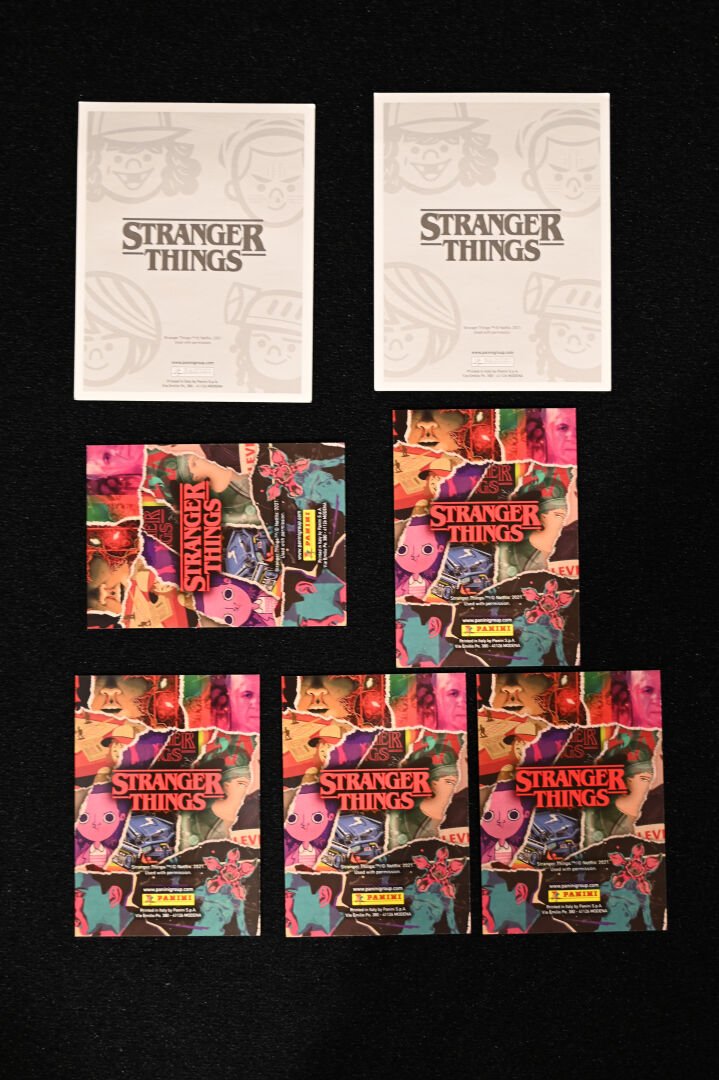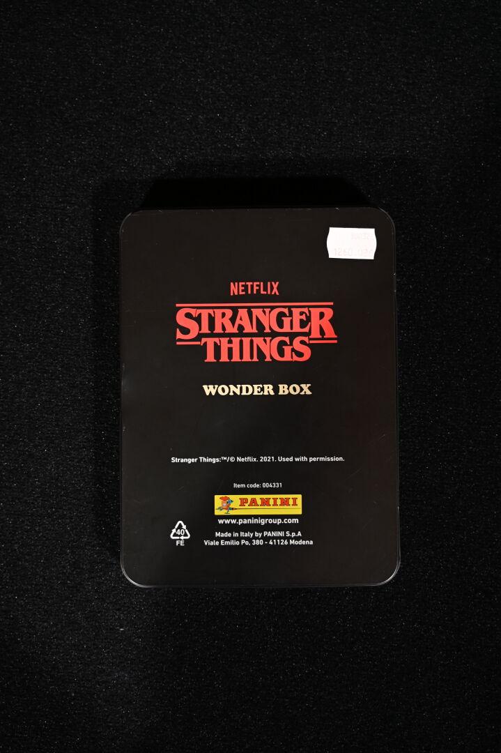 STRANGERS THINGS – DOCTOR COLLECTOR. Boîte « Hawkins Memories Vecna’s Curse Edition » comprenant des objets en lien avec la série (poster, vignettes etc). On joint une boîte PANINI « Wonder Box » avec cartes et stickers. 2021. Dim. de la boîte : 22 x 31 cm. Aucune information sur la complétude.