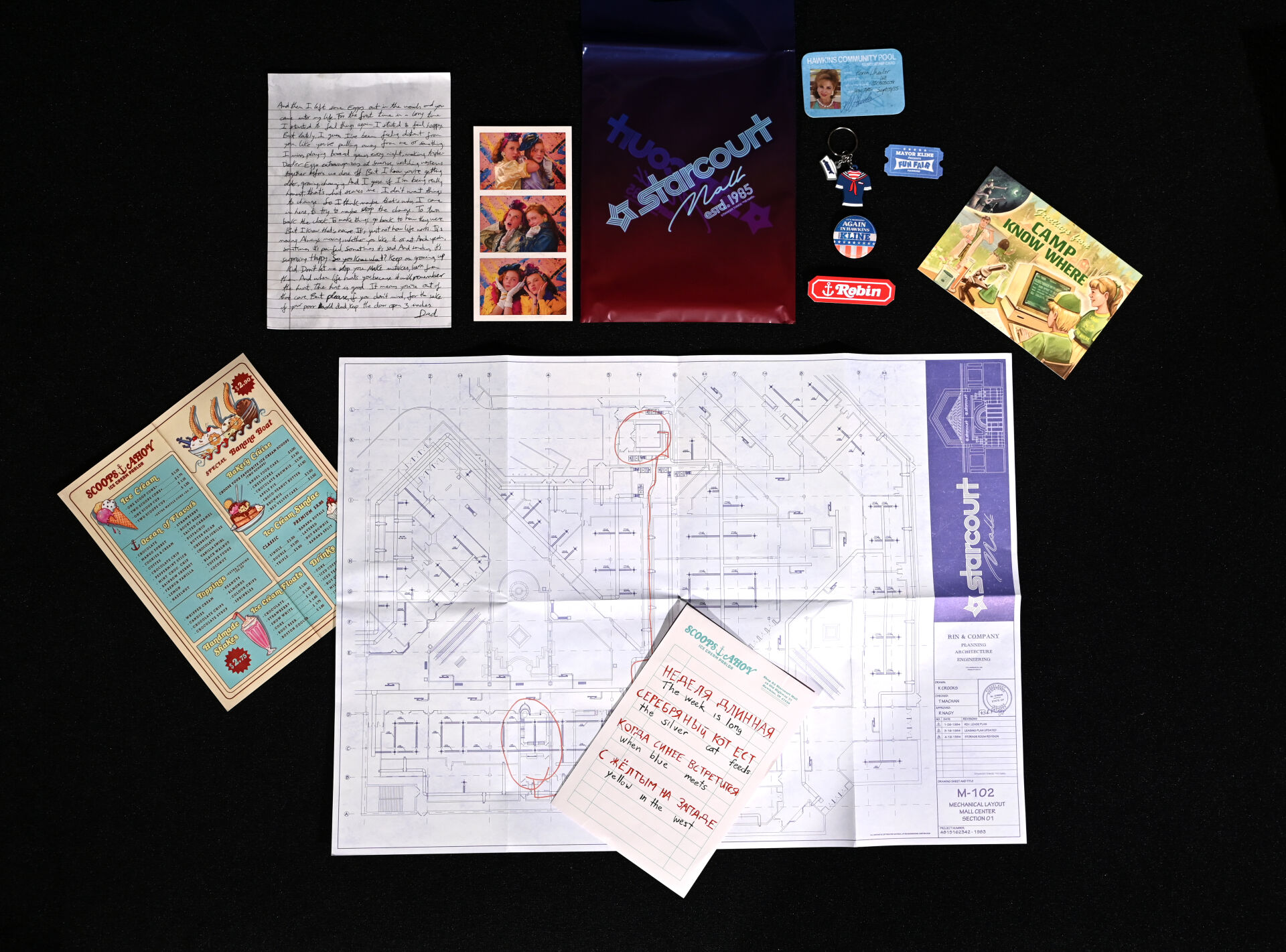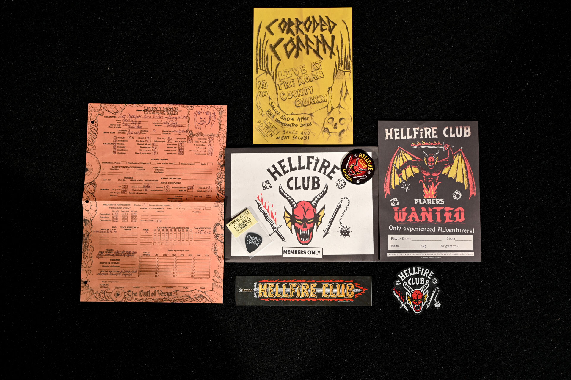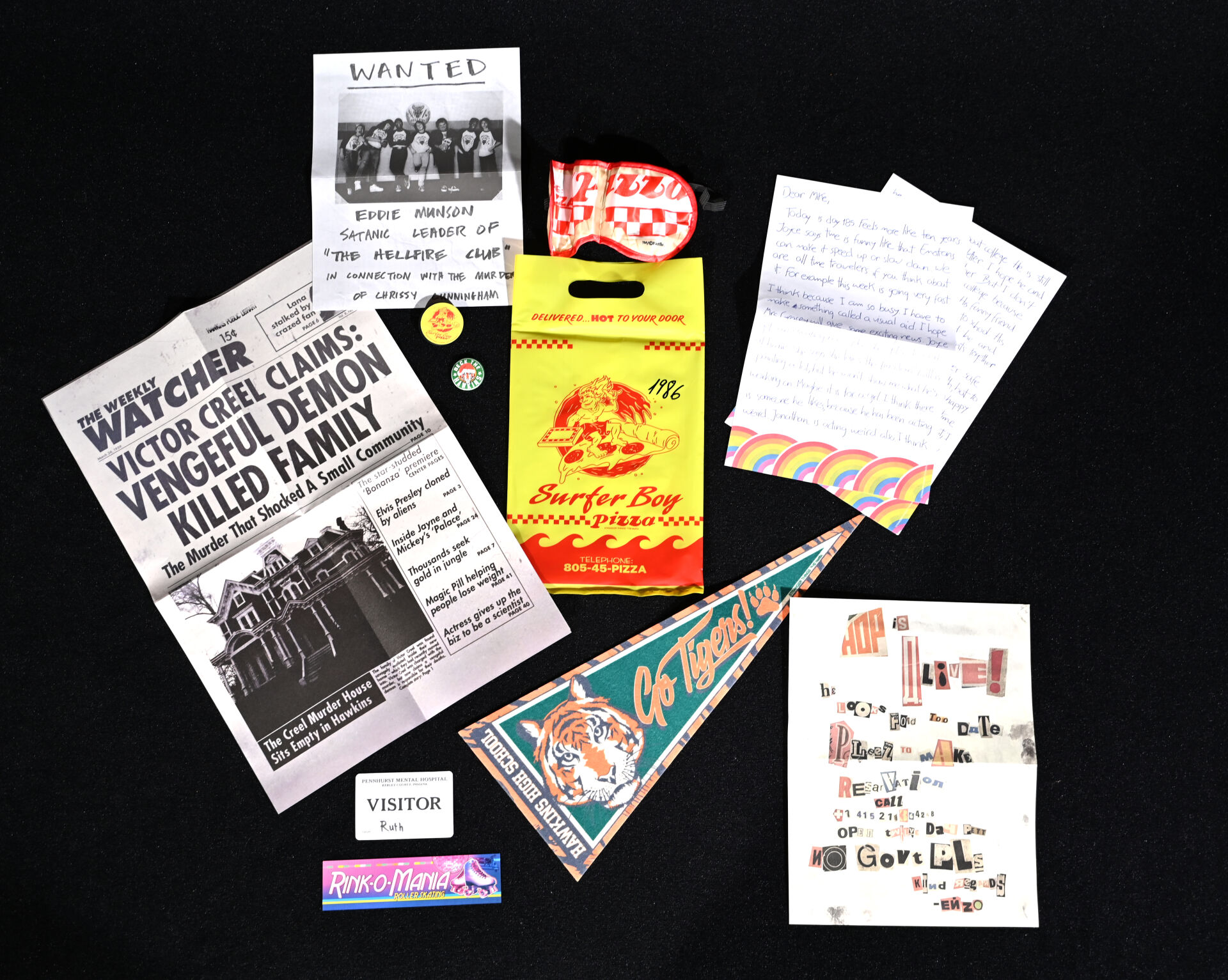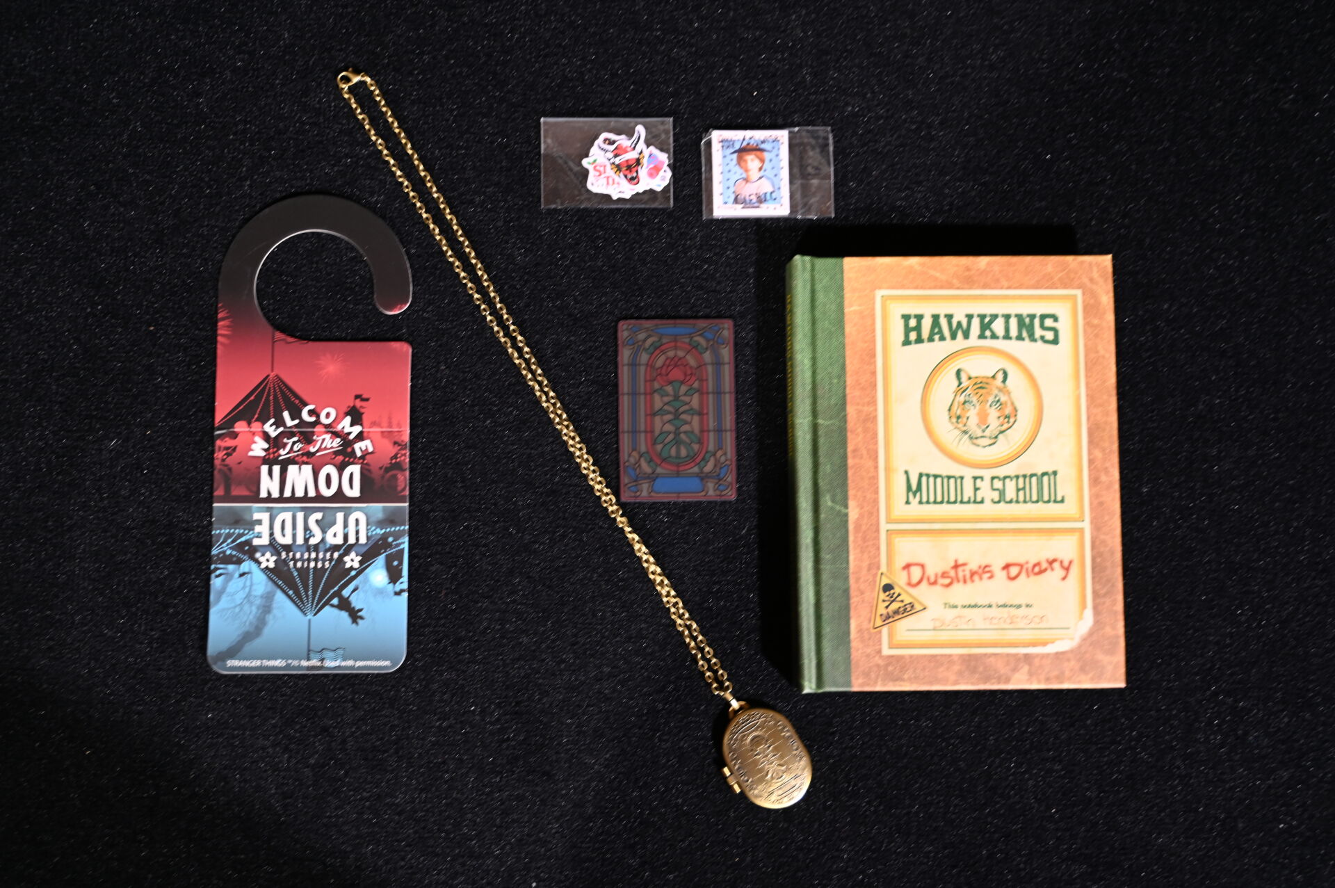 STRANGERS THINGS – DOCTOR COLLECTOR. Boîte « Hawkins Memories Vecna’s Curse Edition » comprenant des objets en lien avec la série (poster, vignettes etc). On joint une boîte PANINI « Wonder Box » avec cartes et stickers. 2021. Dim. de la boîte : 22 x 31 cm. Aucune information sur la complétude.