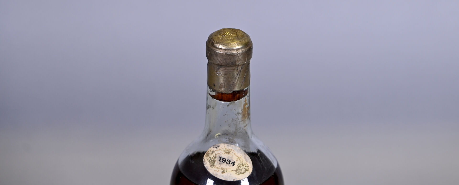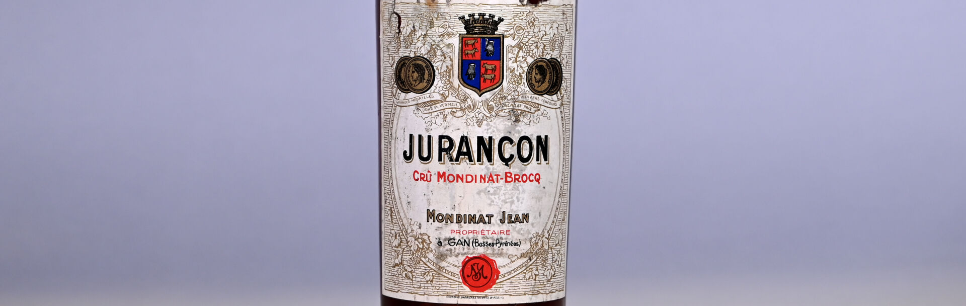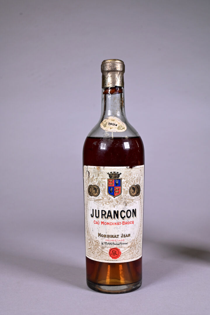 SUD-OUEST – 1 bouteille, Jurançon, Jean Mondinat, Crû Mondinat-Brocq, 1934. Bouchon légèrement engagé. ME (-). Capsule légèrement sale. Pastille sale. Etiquette légèrement sale à sale et abimée.