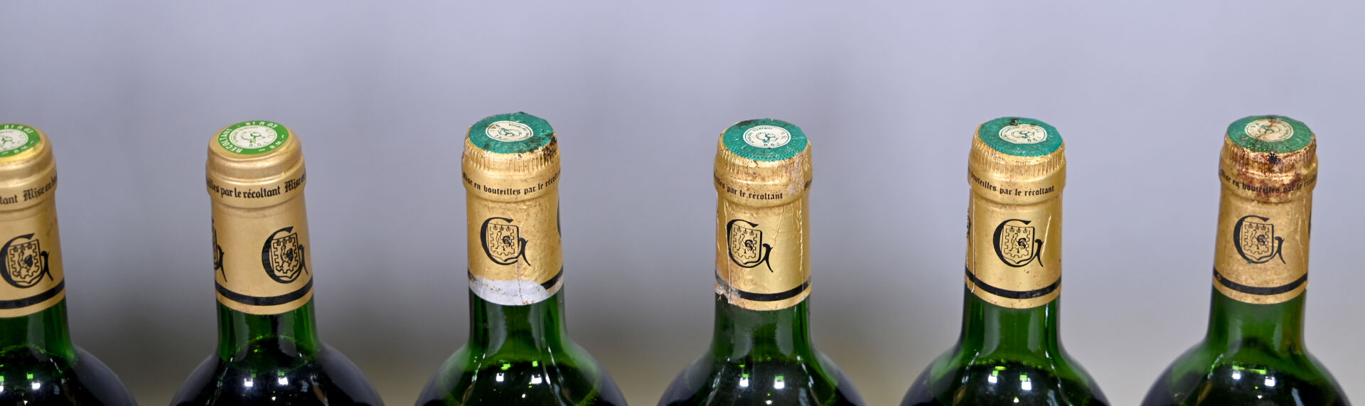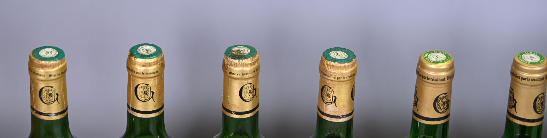 SUD-OUEST – 10 bouteilles, Gaillac, Le Duras de Robert Plageoles et fils; 1985. 1 BG, 2 TLB, 2 HE, 4 ME (+) et 1 ME. Capsules légèrement sales à sales dont trois sont légèrement abimées. Etiquettes sales avec des traces d’humidité et dont quatre sont abimées.