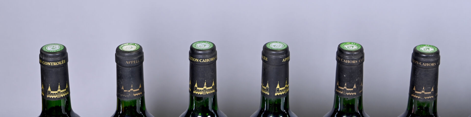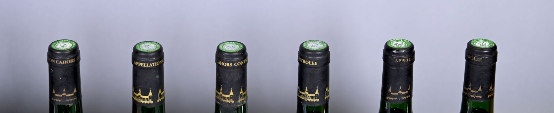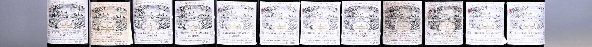 SUD-OUEST – 12 bouteilles, Cahors, Château de Chambert, 1989. TLB (+) ou mieux. Capsules légèrement sales. Etiquettes légèrement sales à sales avec des points de décollement.