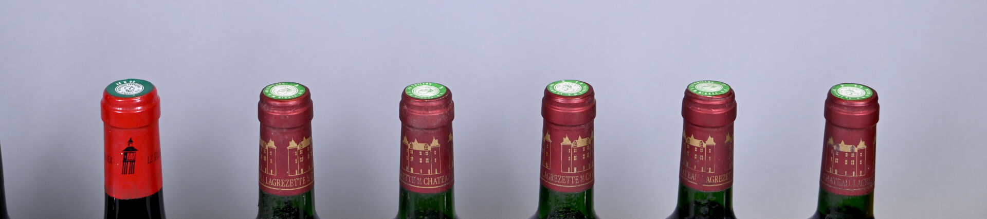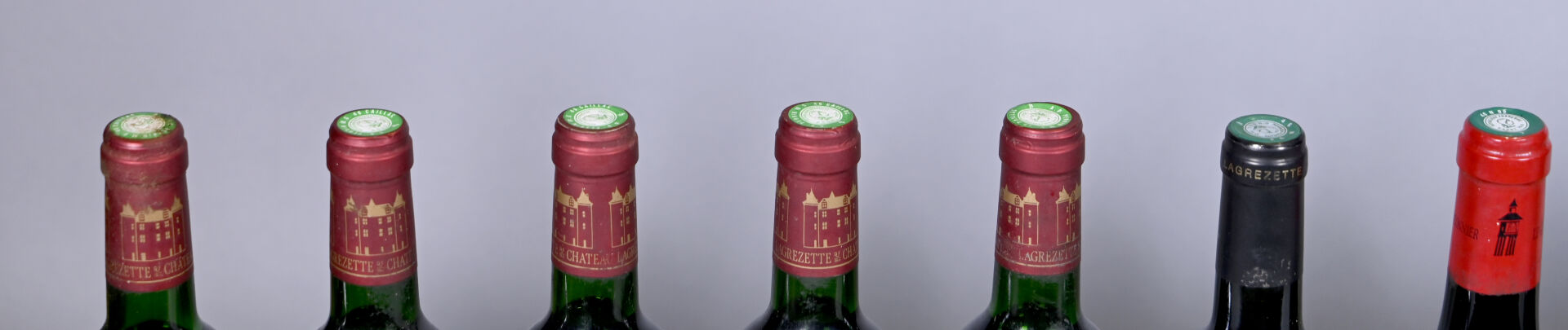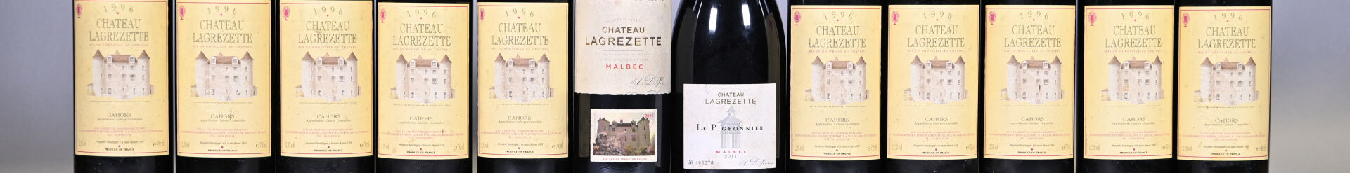 10 bouteilles, Cahors, Château Lagrezette, 1996. 5 BG, 2 BG (-) et 1 TLB. Capsules et étiquettes légèrement sales.