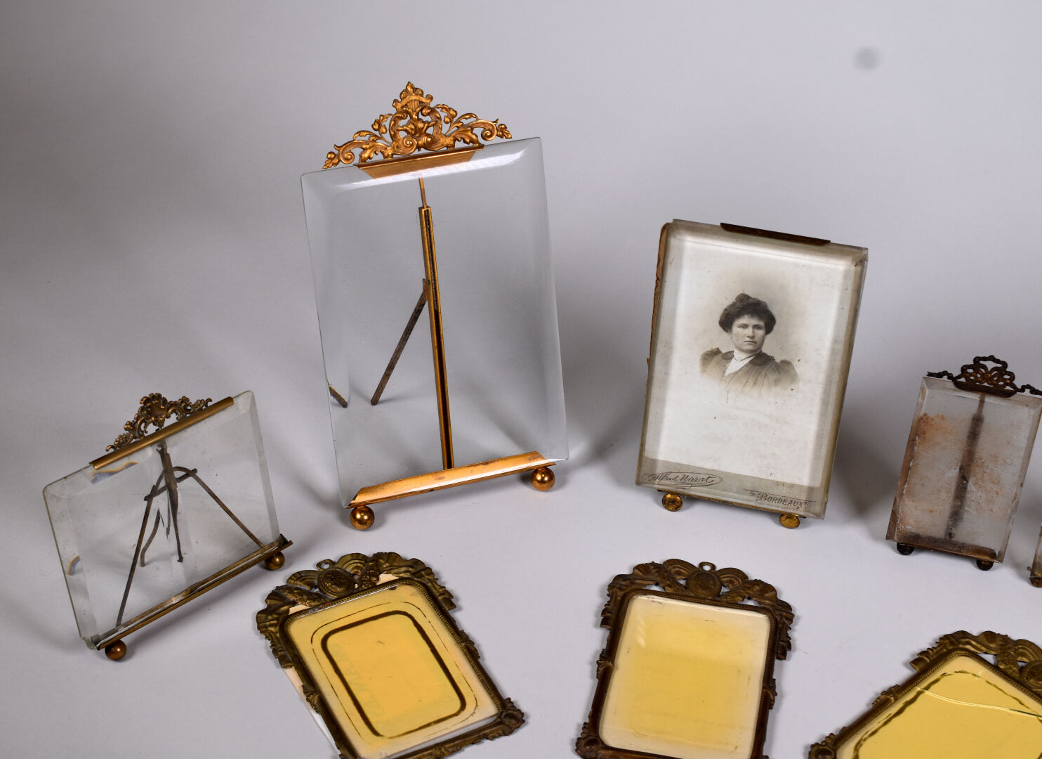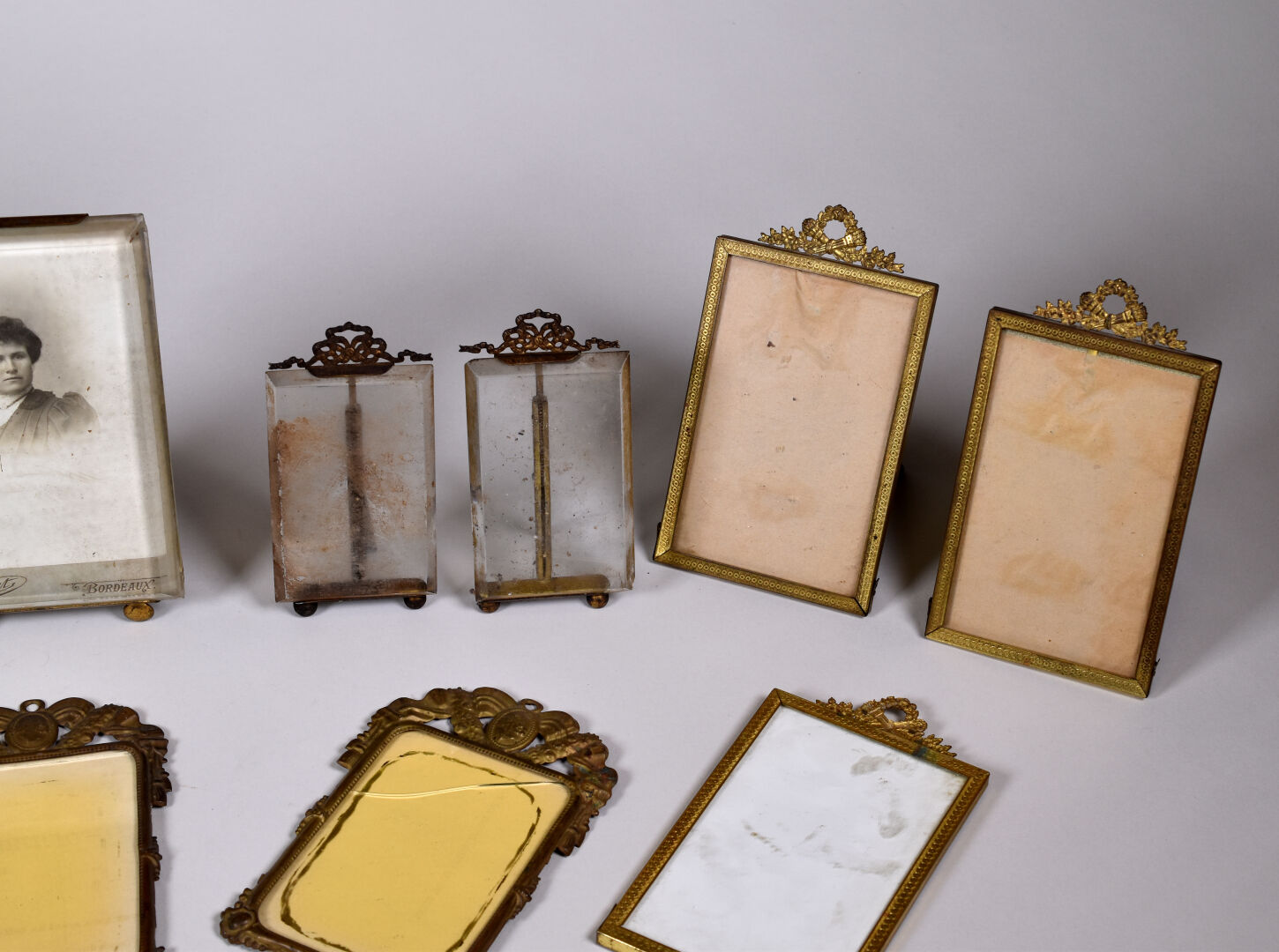 Suite de 12 cadres en laiton, cuivre et métal doré. Style Louis XVI pour la majorité.