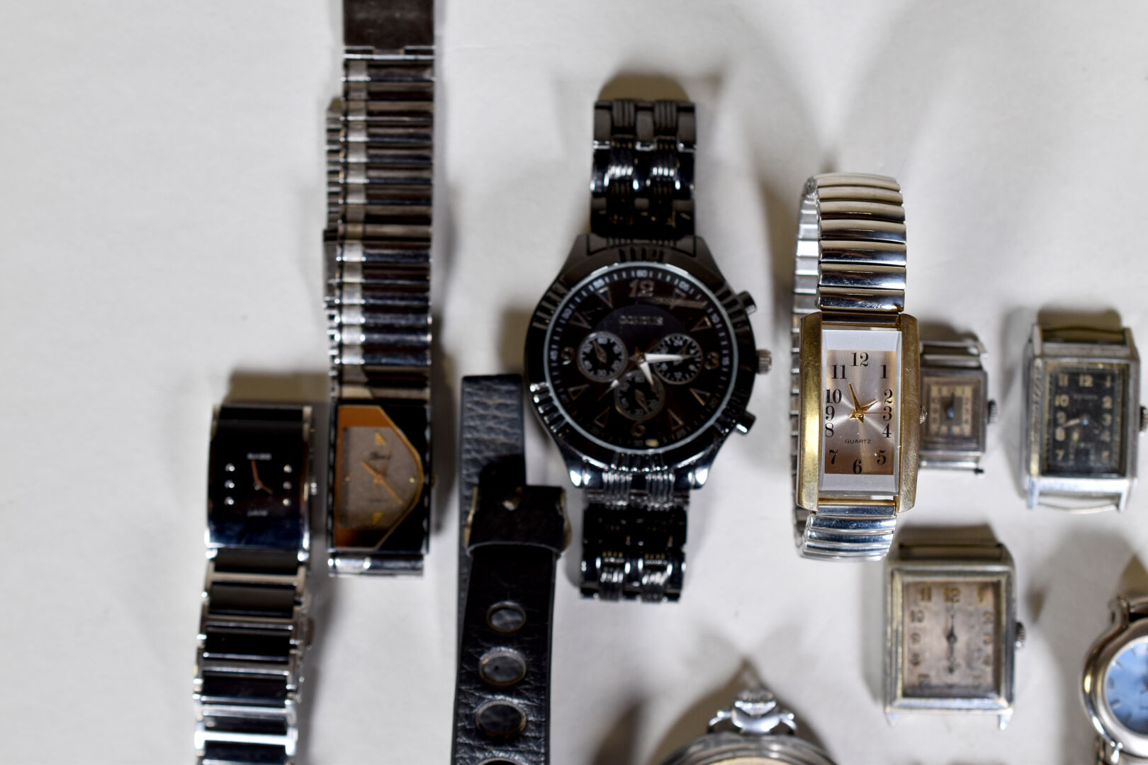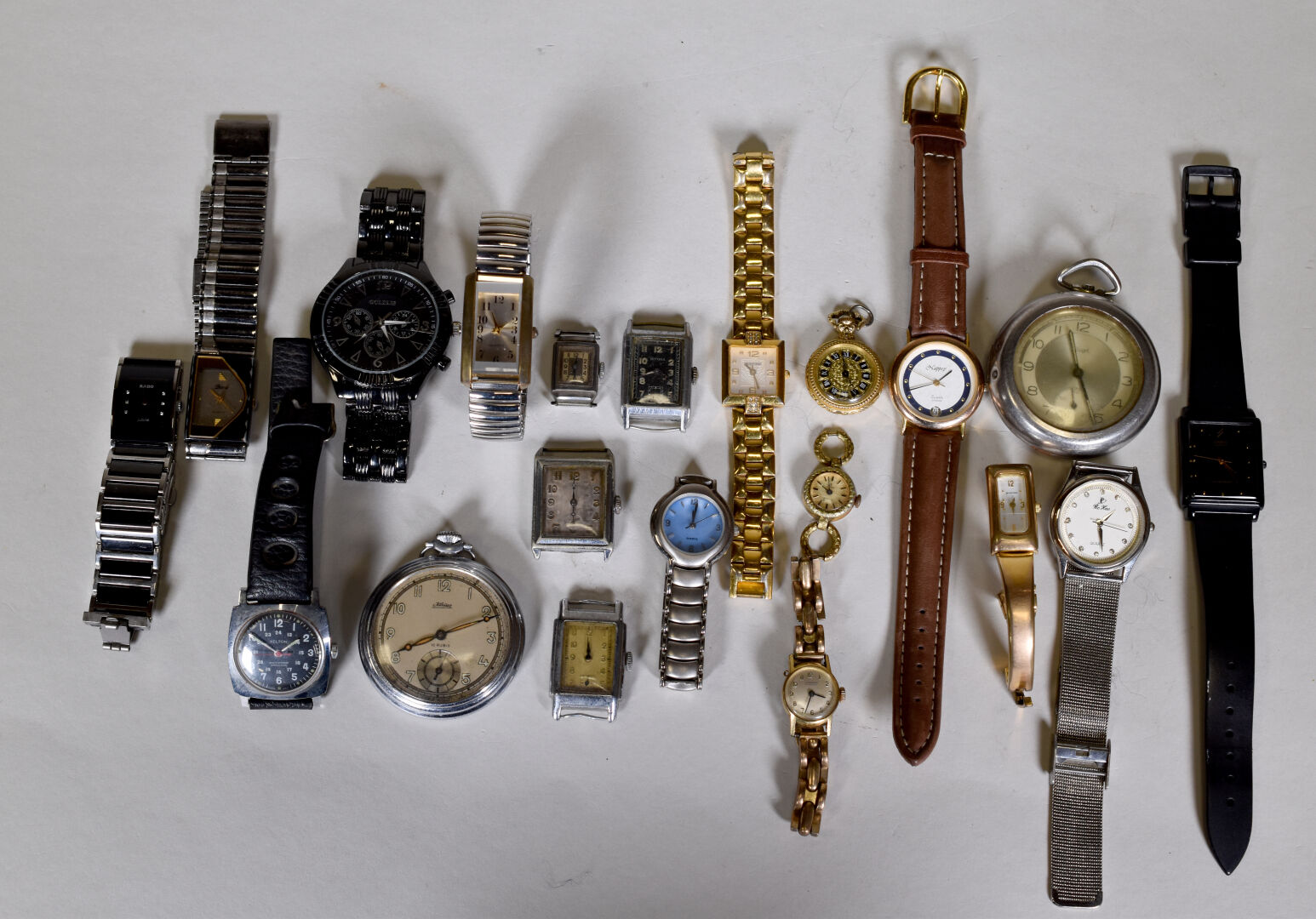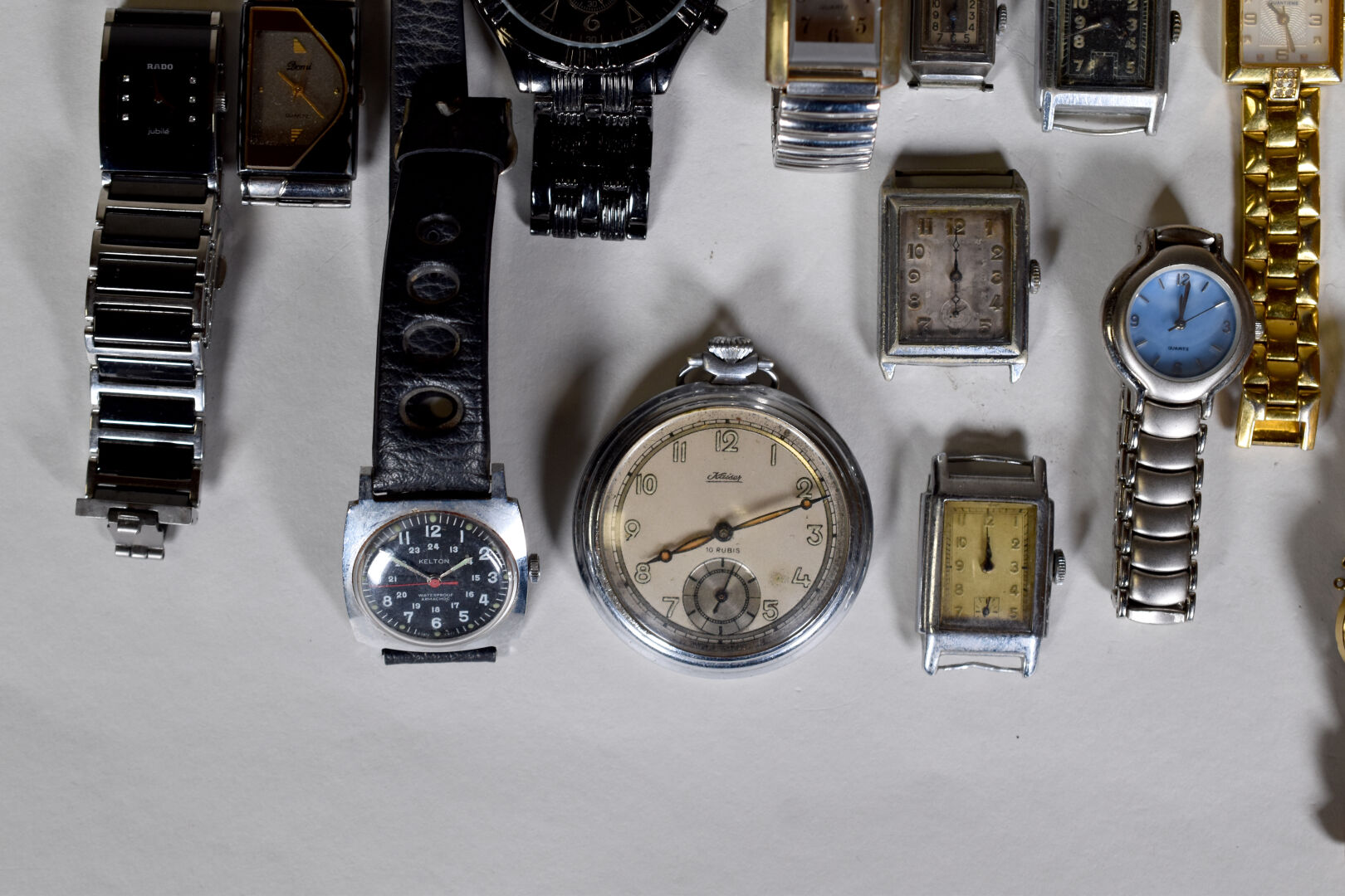 Suite de 12 montres bracelet, homme et dame dont CASIO, KELTON, GOLDLISS, 5 boitiers de montre bracelet. Et 3 montres de gousset en métal.