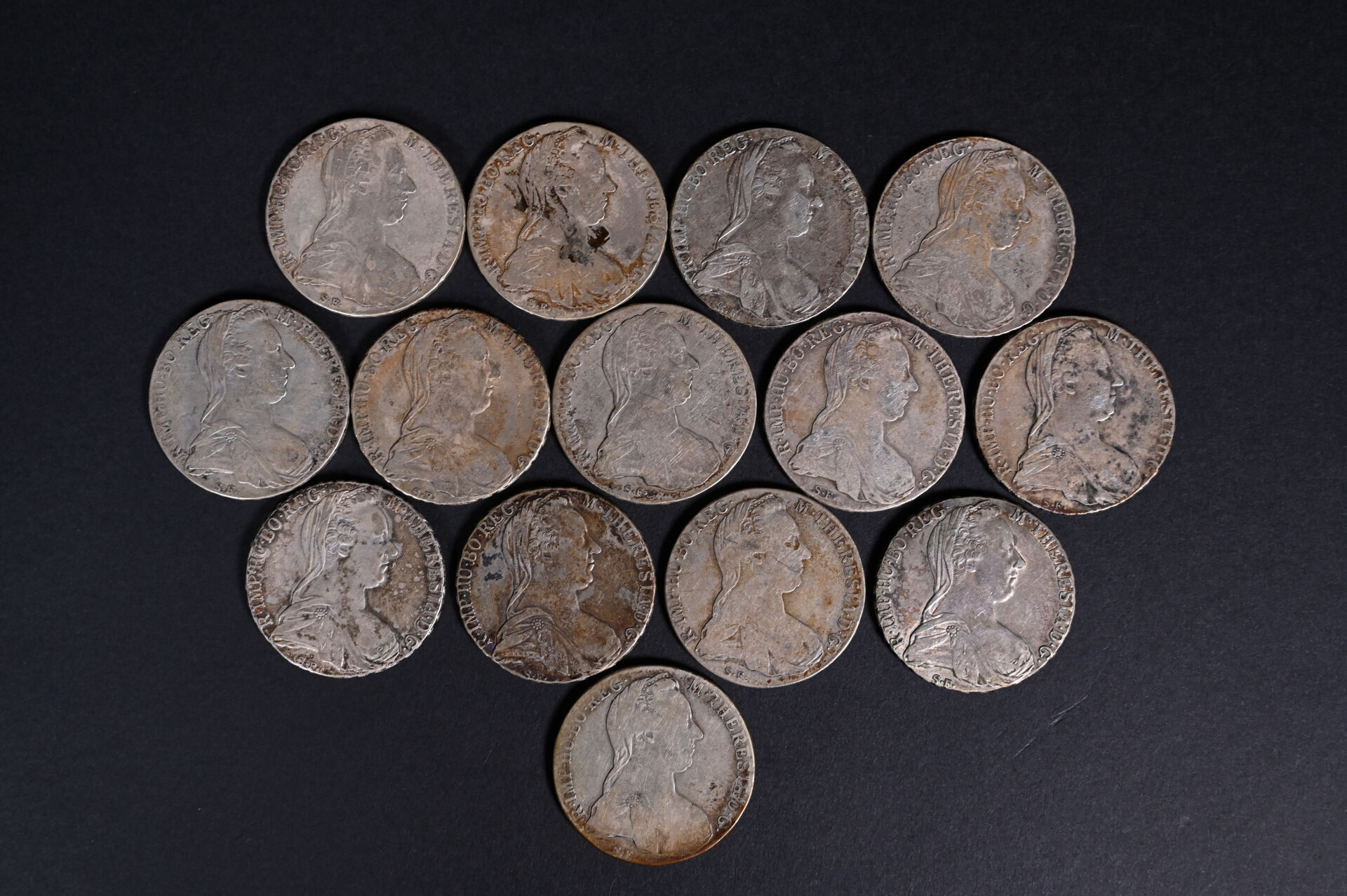 Suite de 14 pièces en argent 1 thaler Marie-Thérèse d’Autriche 1780 (usures). Poids total. : 387 g.