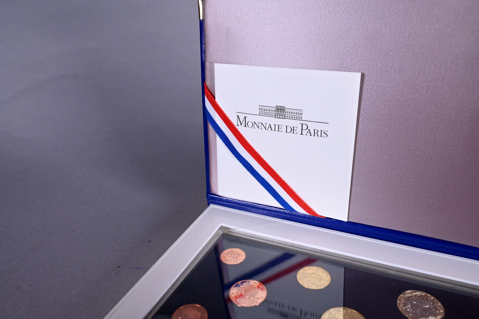 Suite de 20 coffrets MONNAIE DE PARIS euros des années 99 (2), 2000 (2), 2001 (2), 2002 (2), 2003 (3), 2004 (4), 2005 (3), 2006 (2), A partir de 2004 une pièce de 5 euros en argent. Qualité épreuve. Avec les certificats.