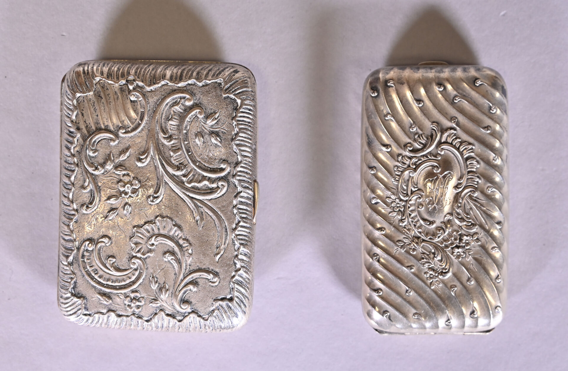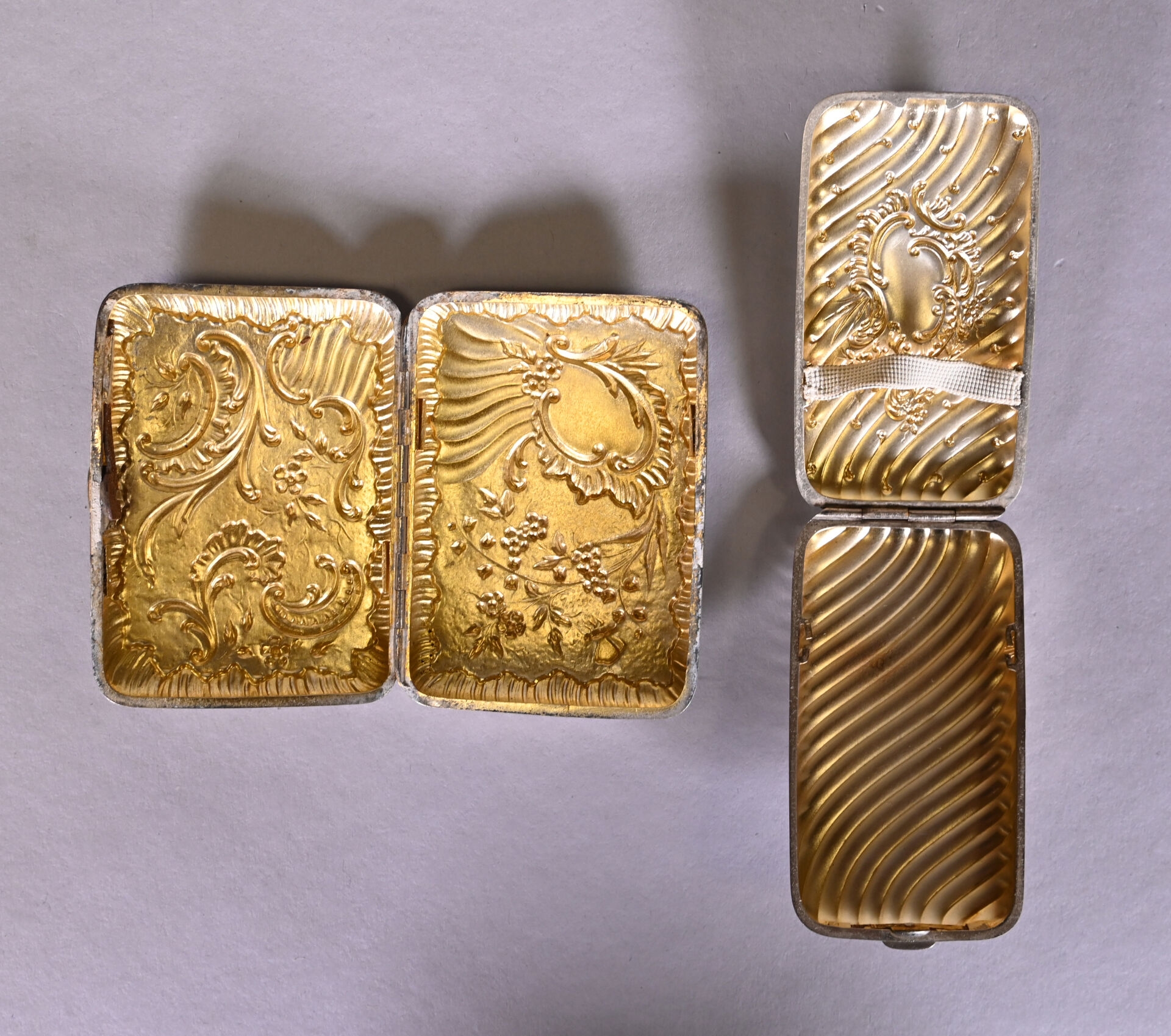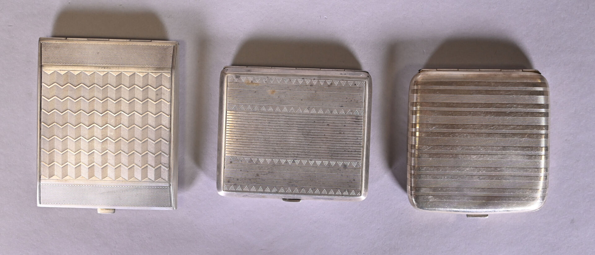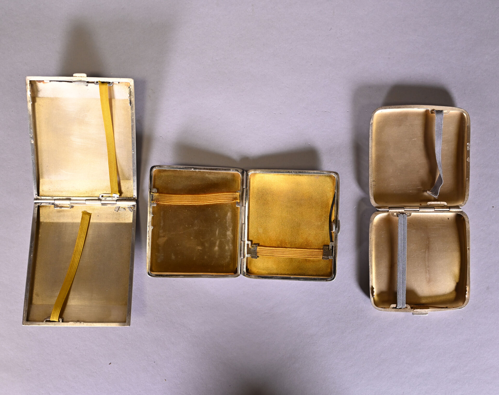 Suite de 6 étuis à cigarettes en argent 925 et 800/1000e. Travail étranger en grande partie. Poids total : 459 g.