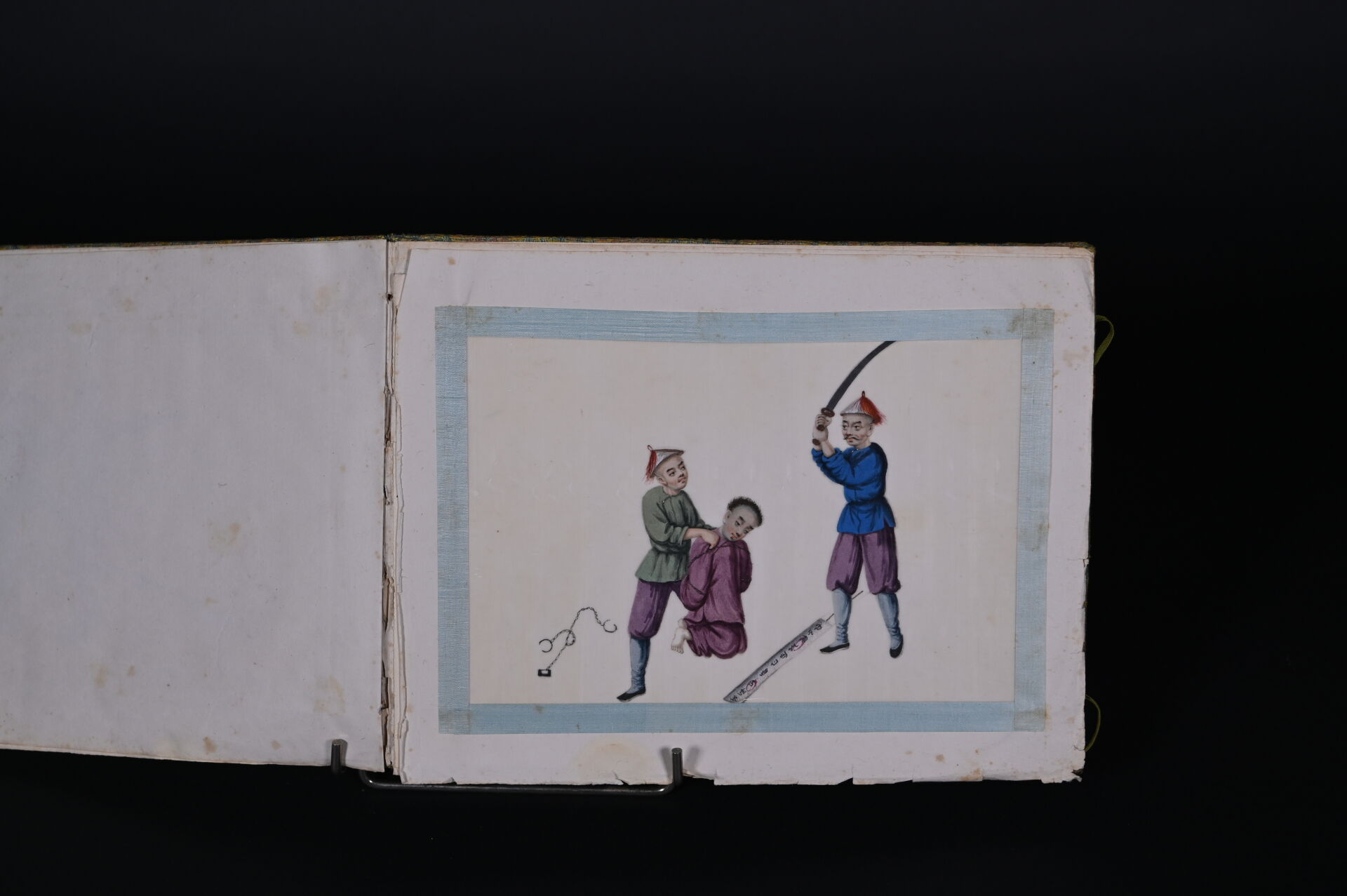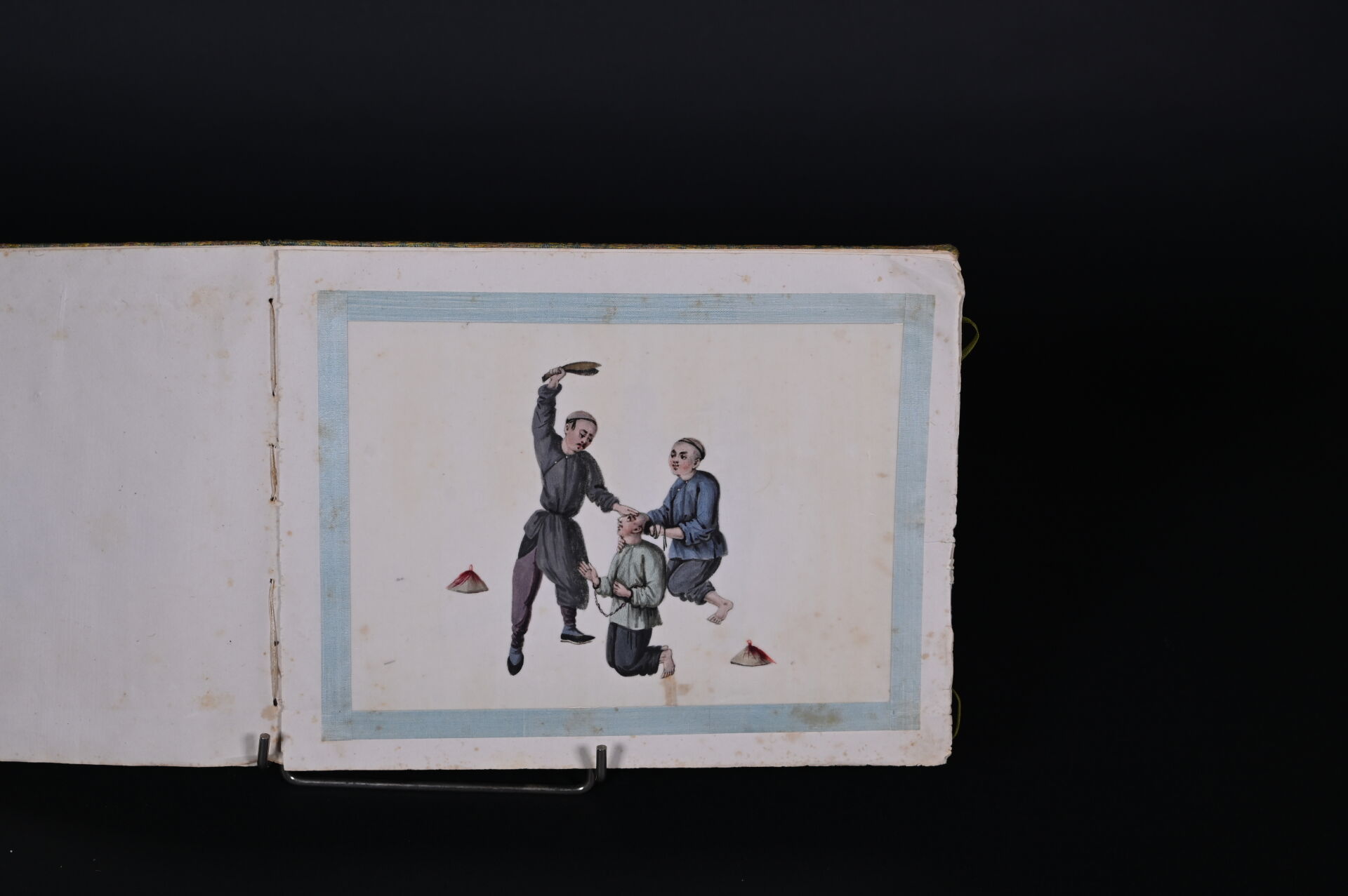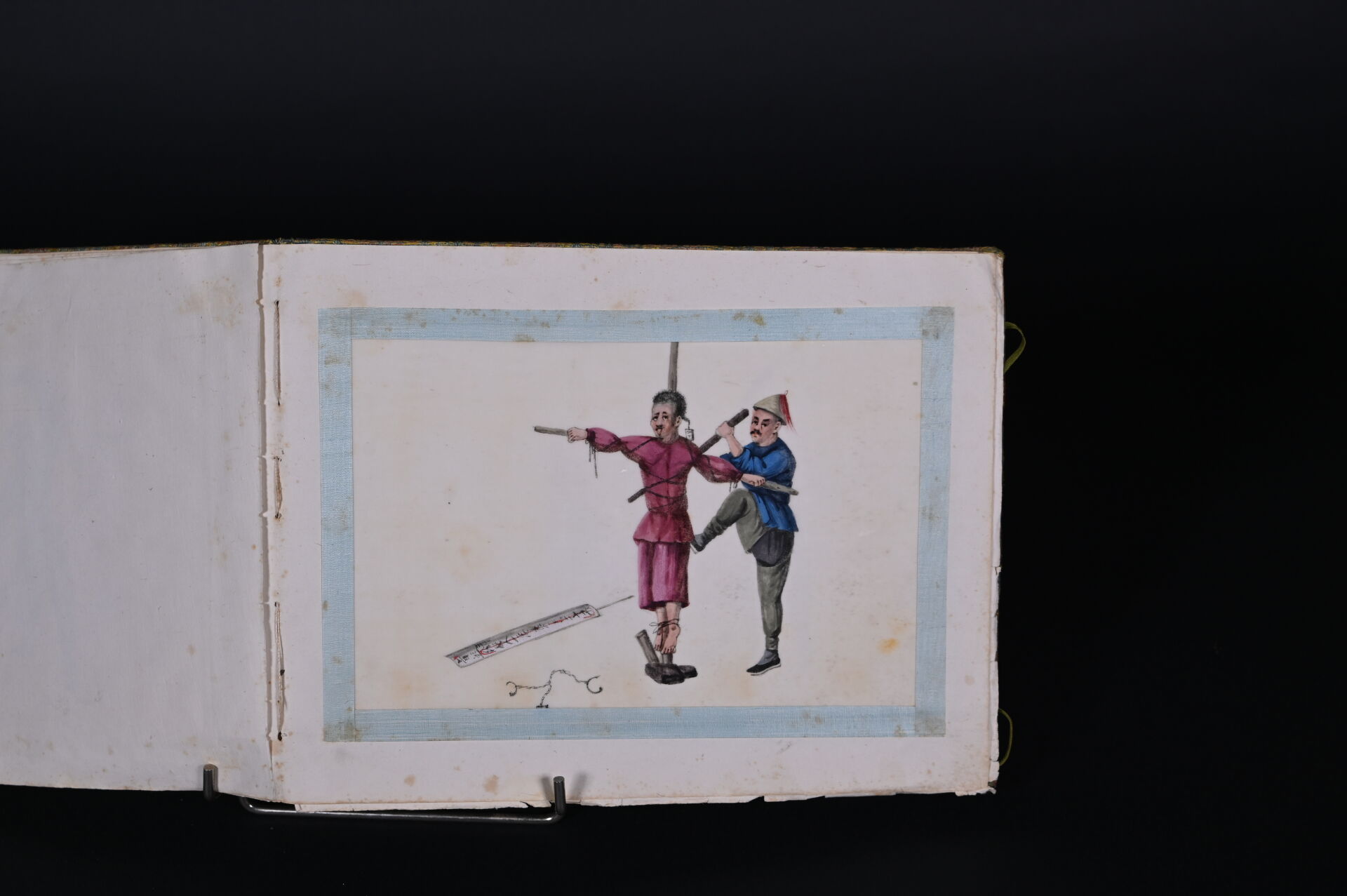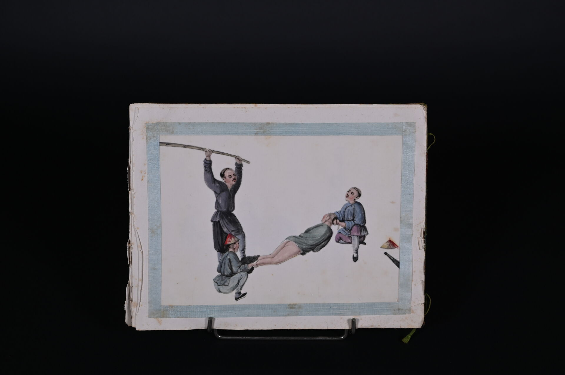 Suite de cinq dessins sur papier de riz représentant des châtiments corporels (quelques rousseurs). Indochine, début du XXe siècle. Dim. moyennes : 18,5 x 26 cm.