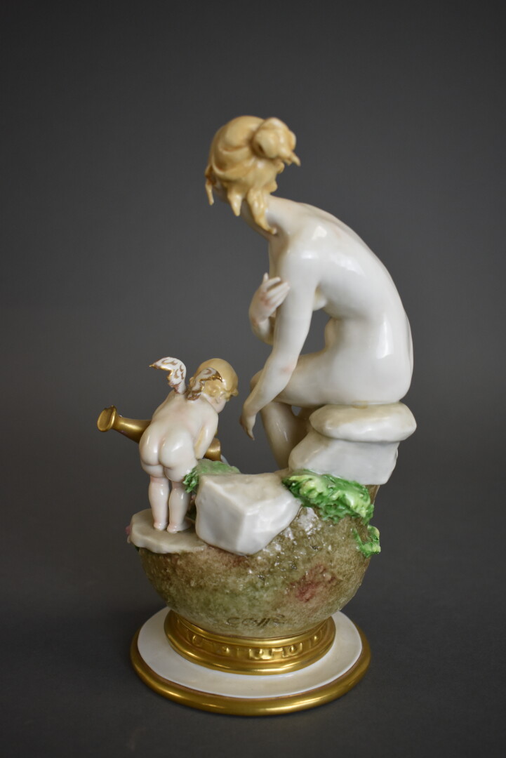 Suite de quatre figurines en porcelaine soit MEISSEN, CAPODIMONTE et Saxe (accidents, manques). XIXe et XXe siècle.