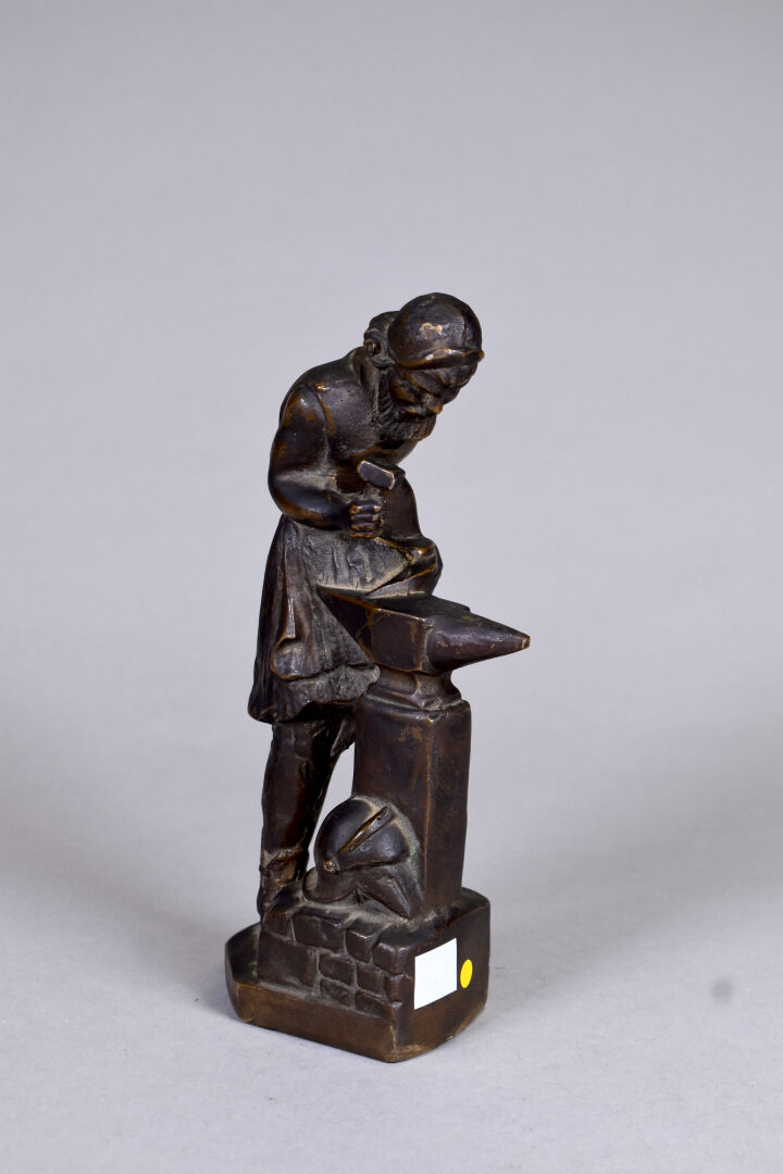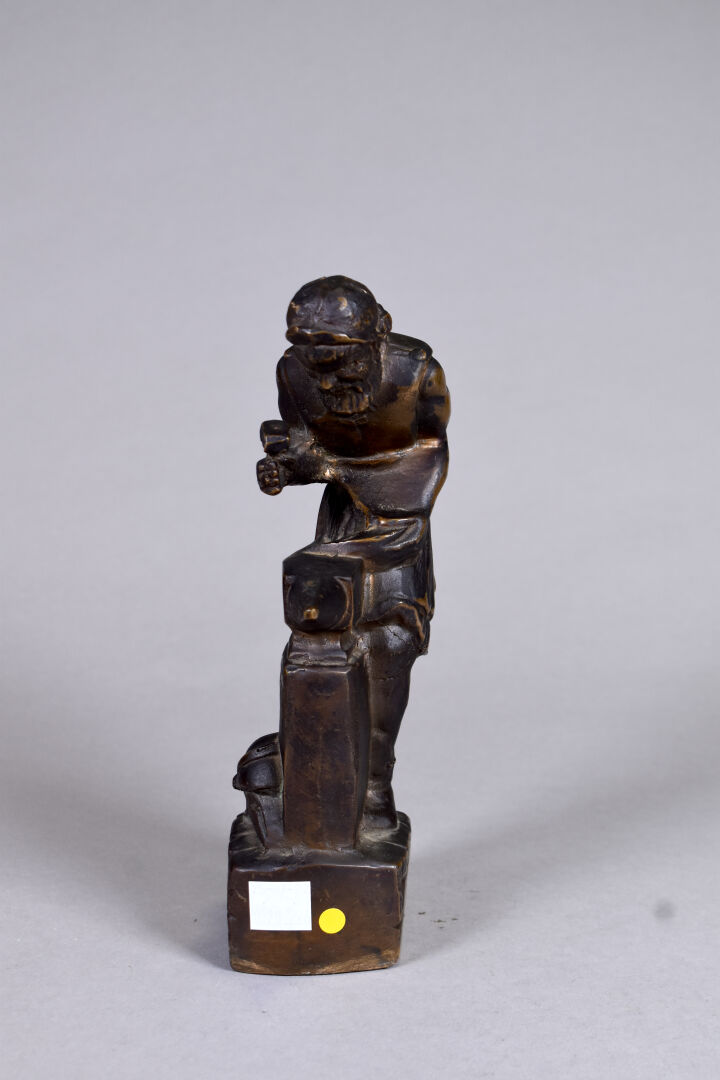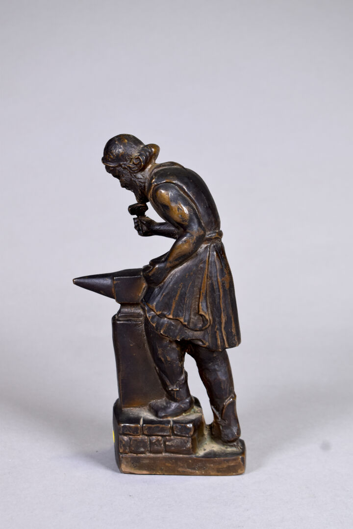 Sujet en bronze patiné brun représentant un forgeron. XXe siècle. Haut. : 22,5 cm.